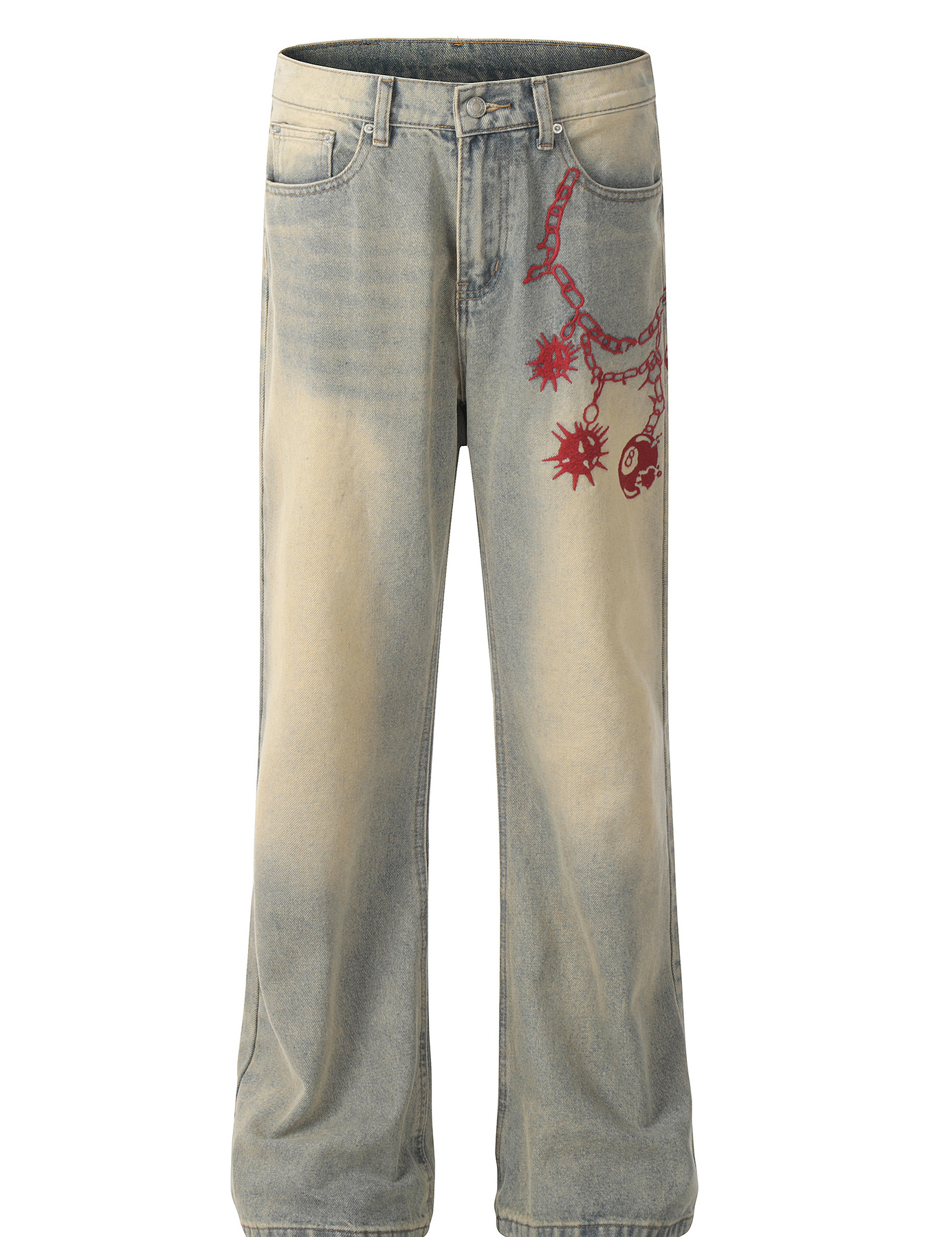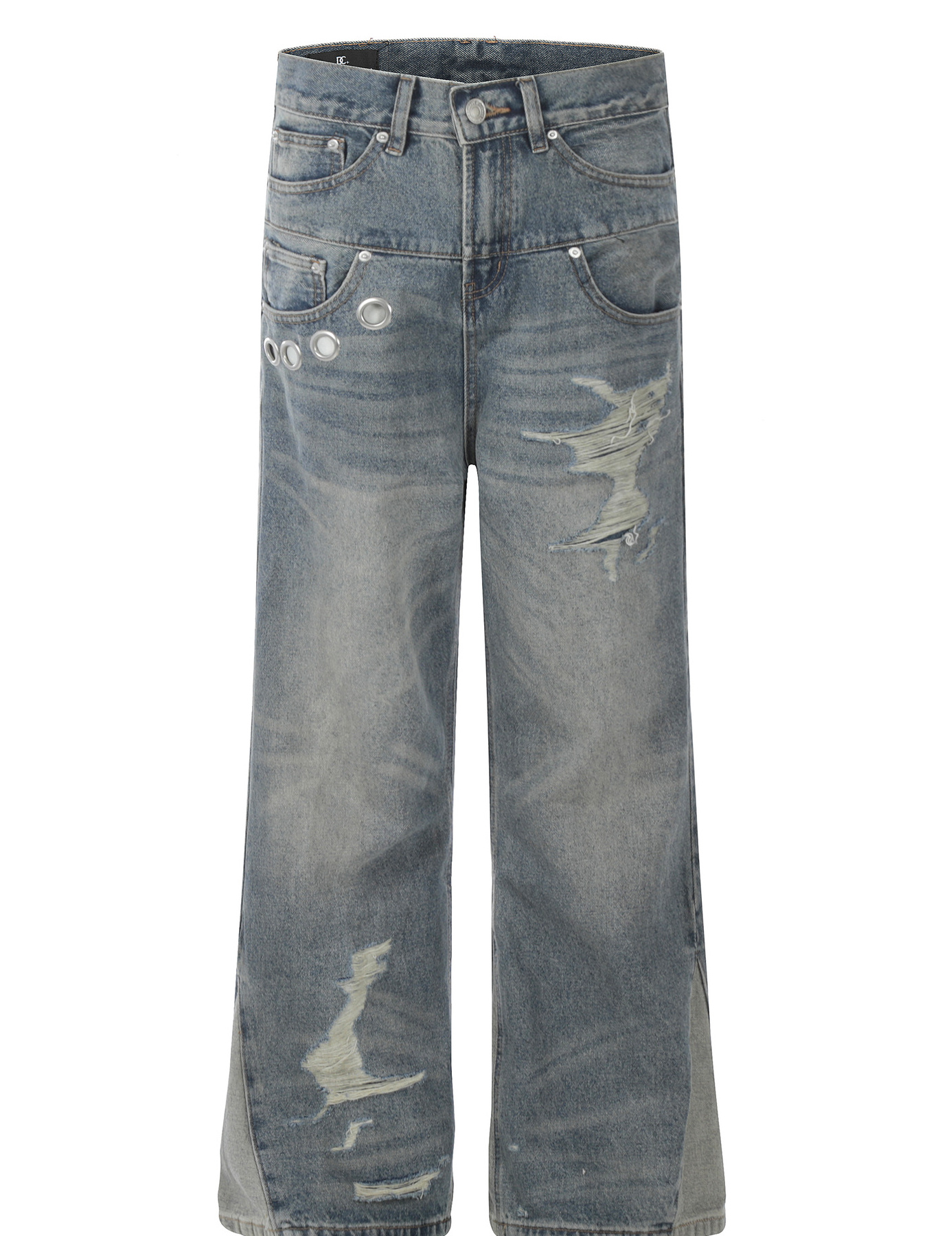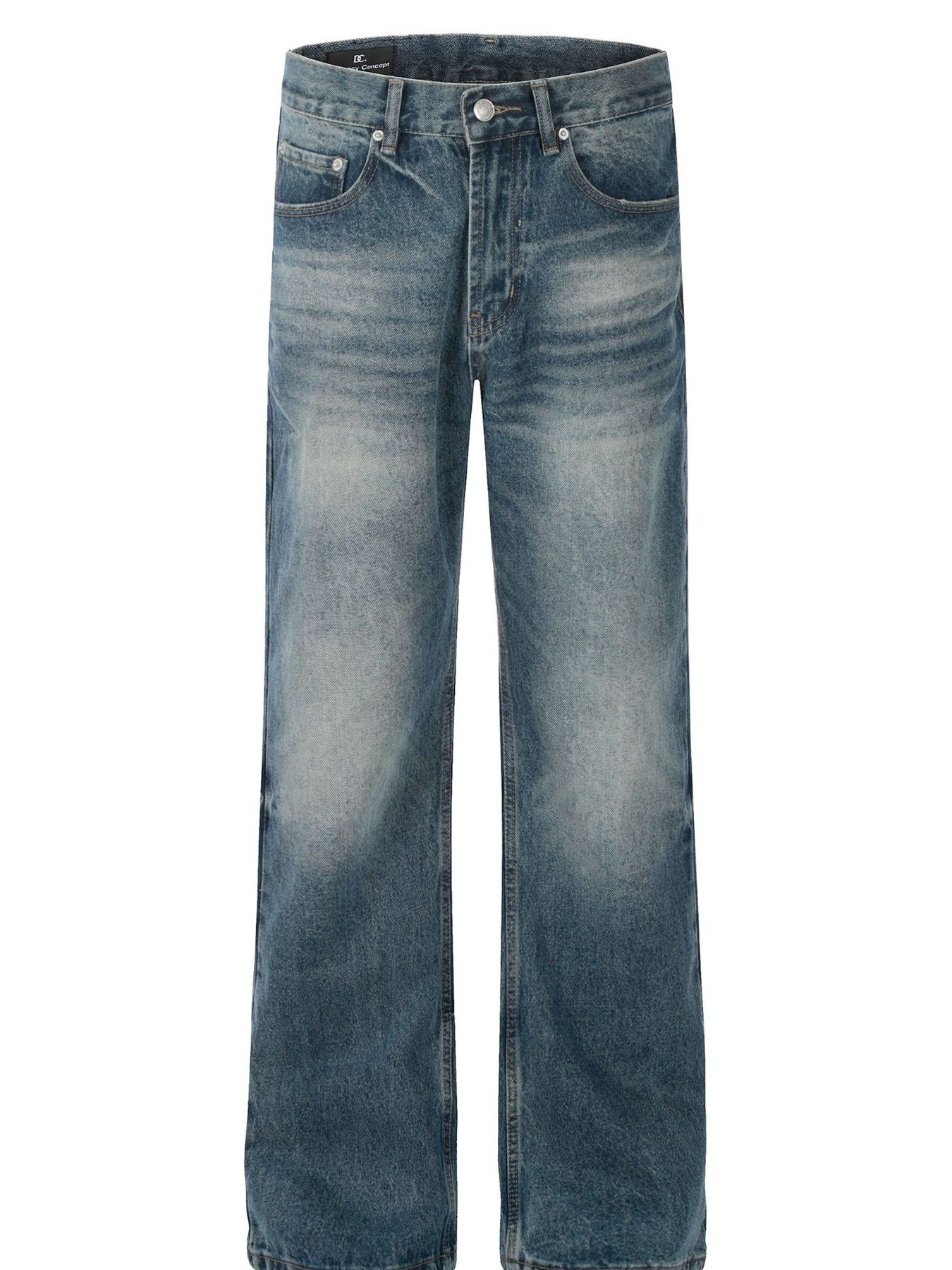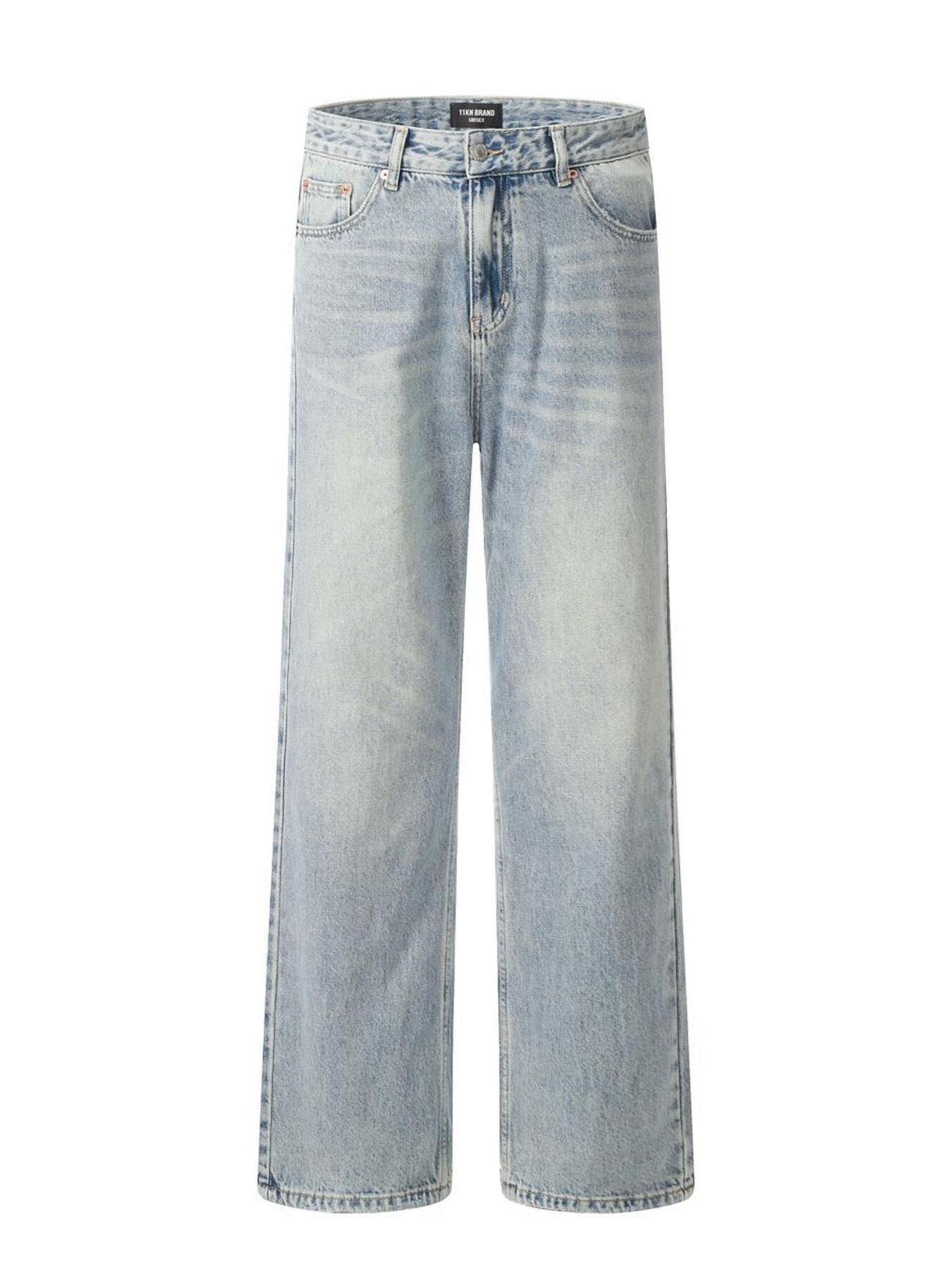 Men's Vintage Washed Distressed Wide Leg Jeans