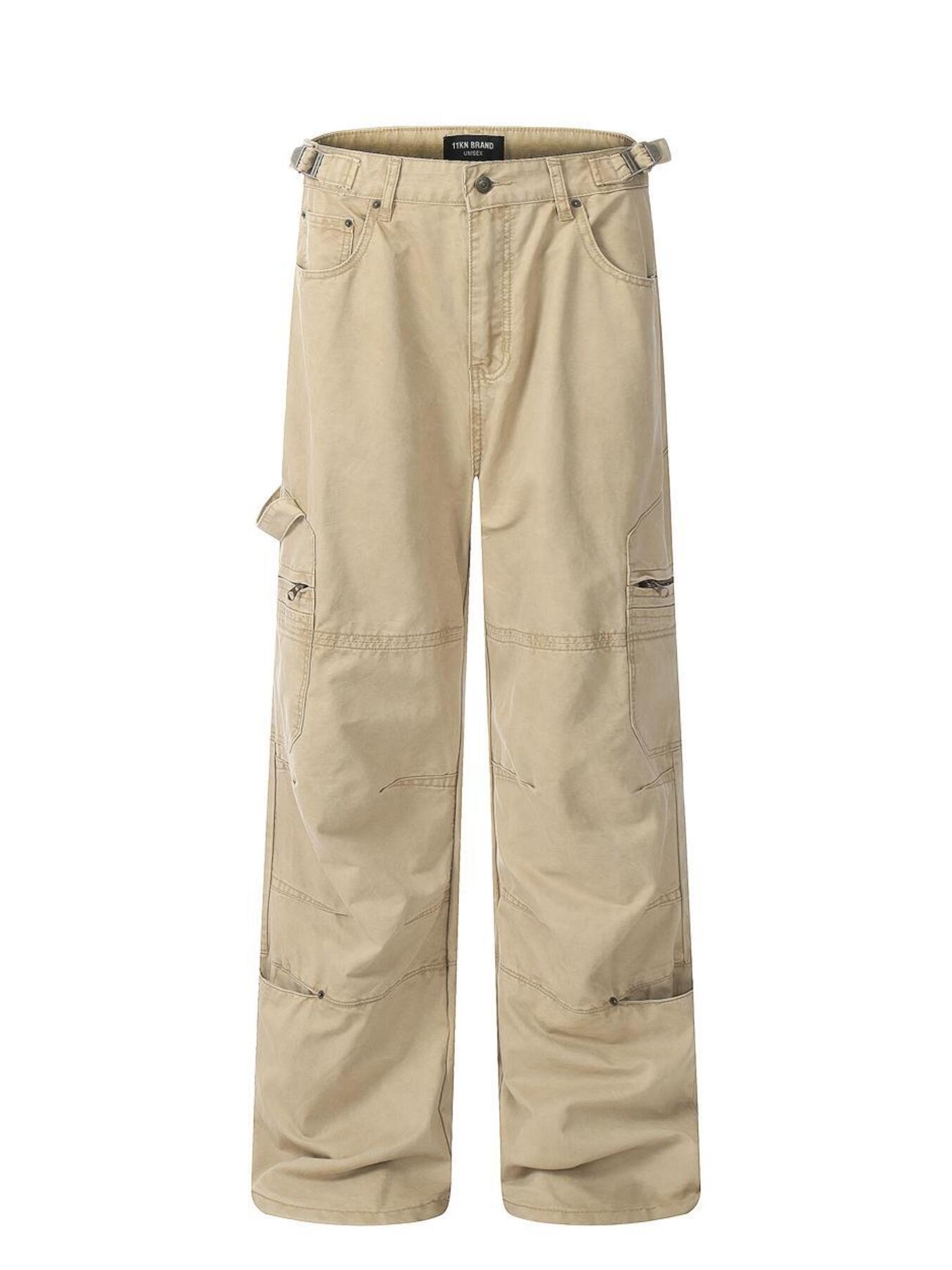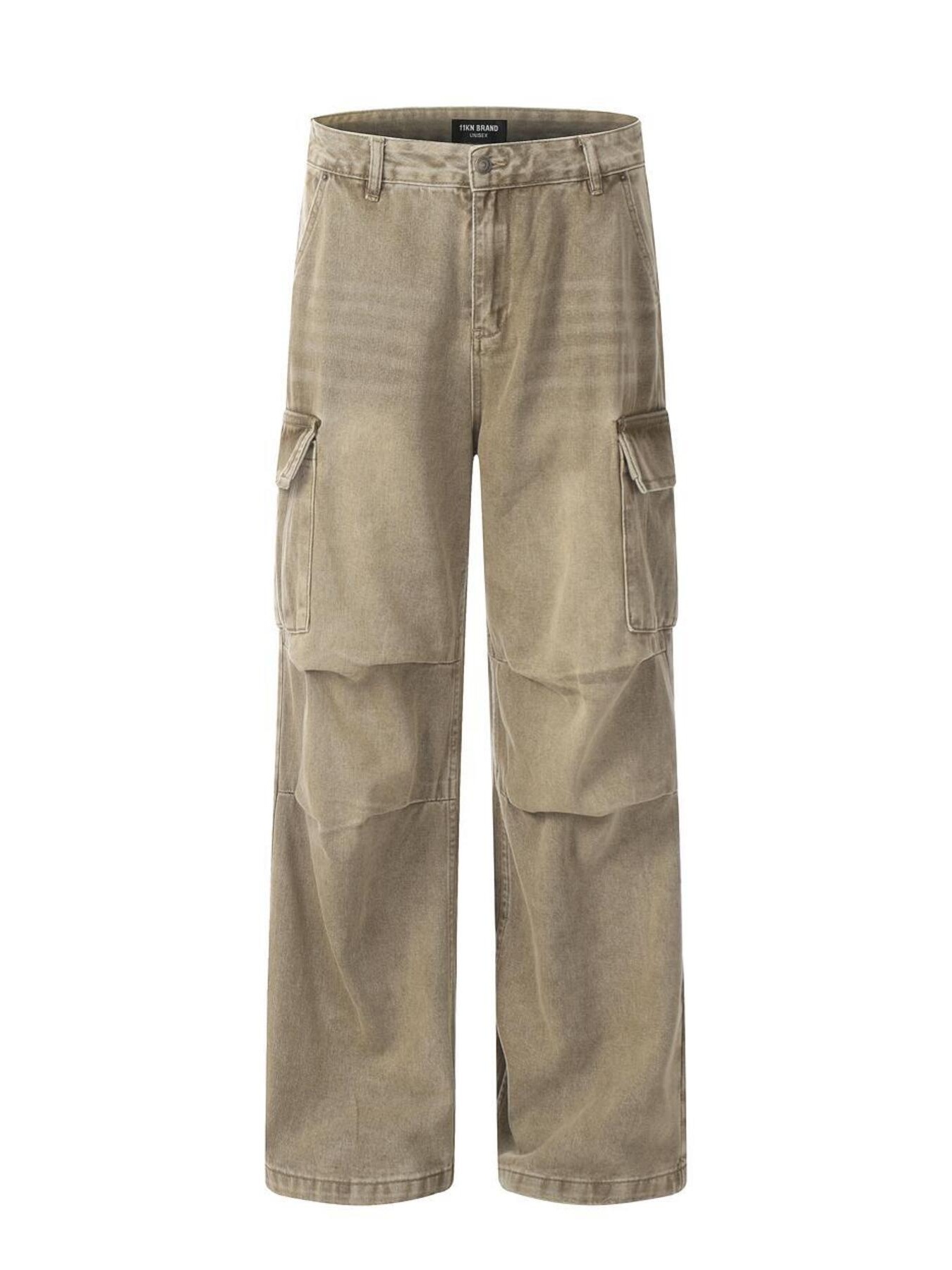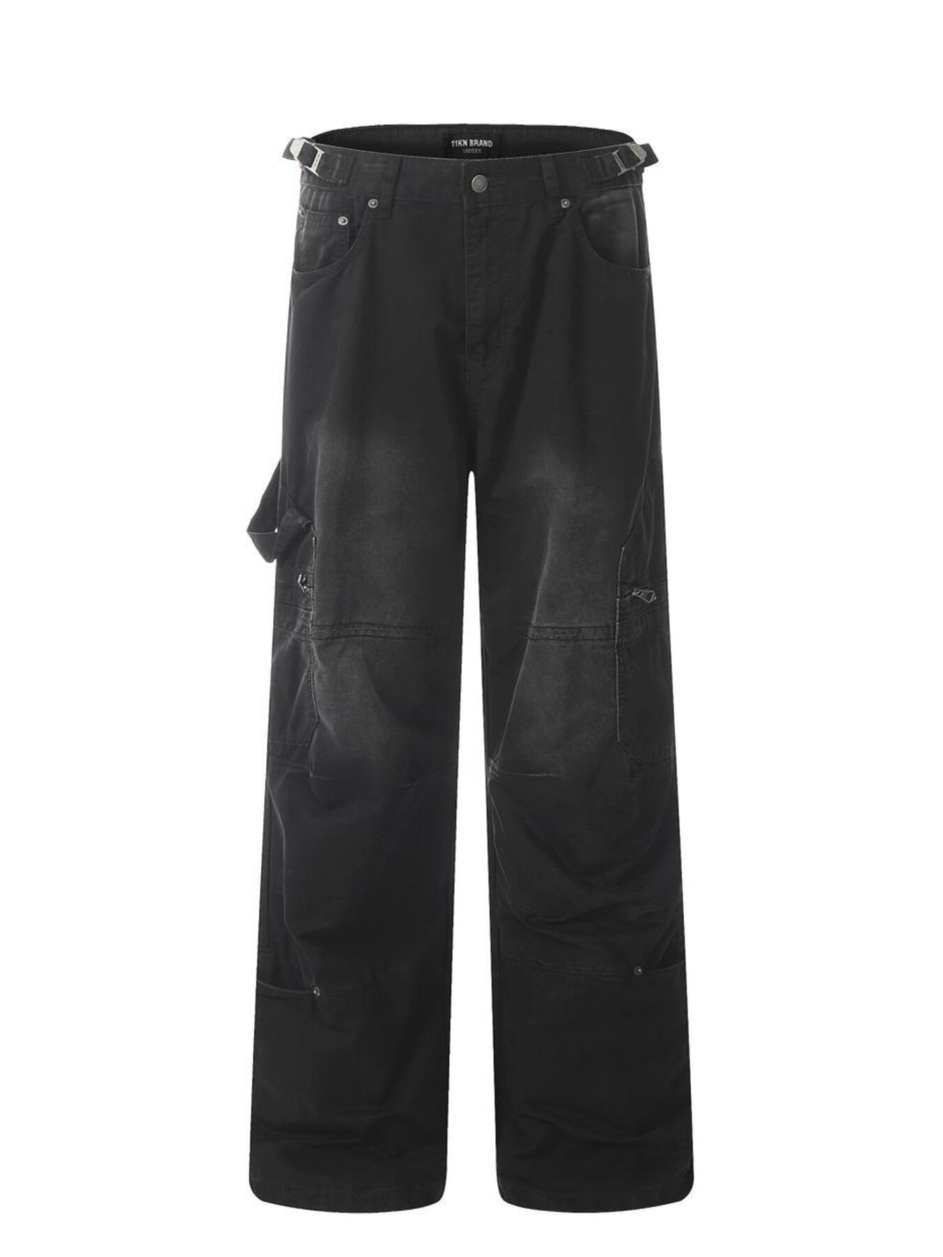 Men's Washed Wide Leg Cargo Jeans with Multiple Pockets