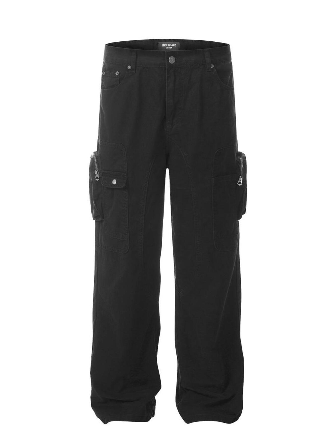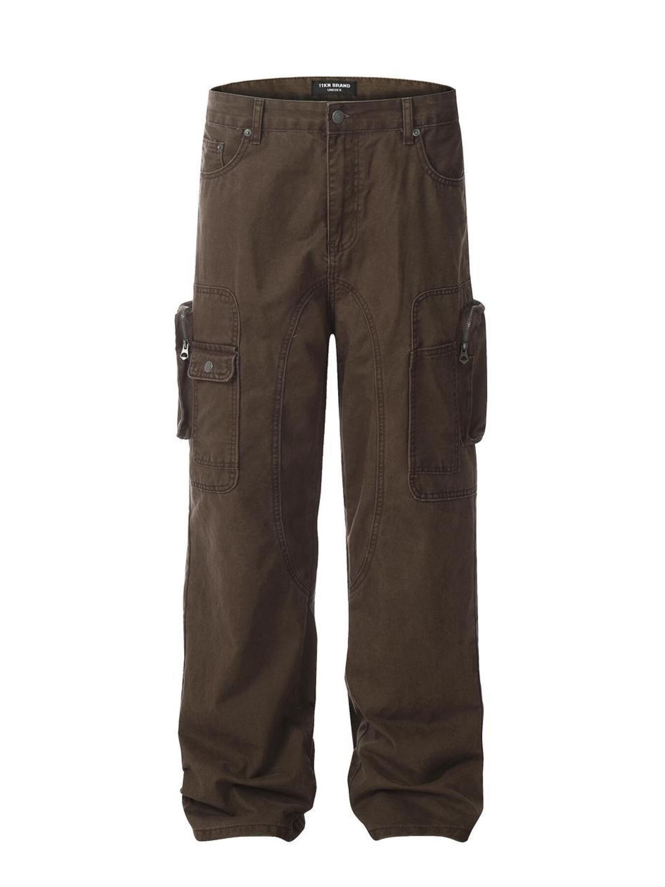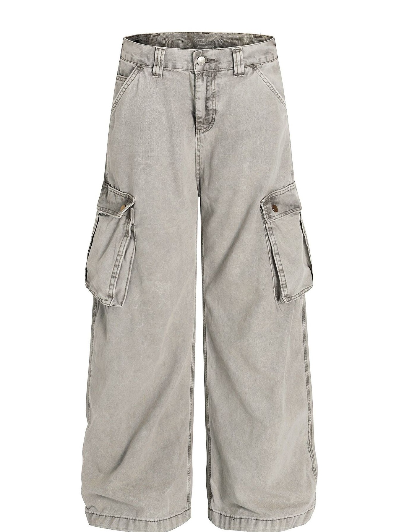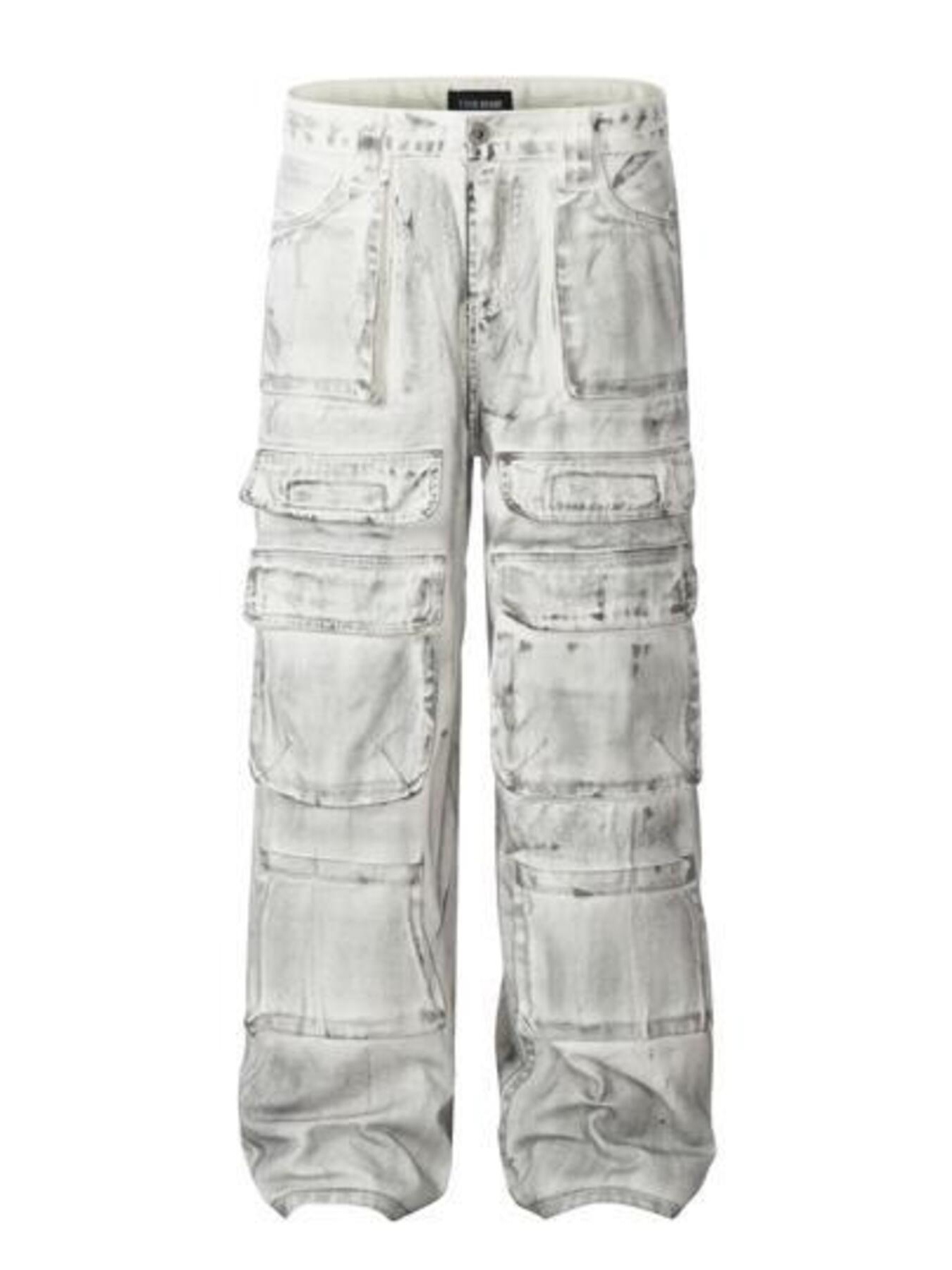 Men's Washed Wide Leg Cargo Jeans with Multiple Pockets