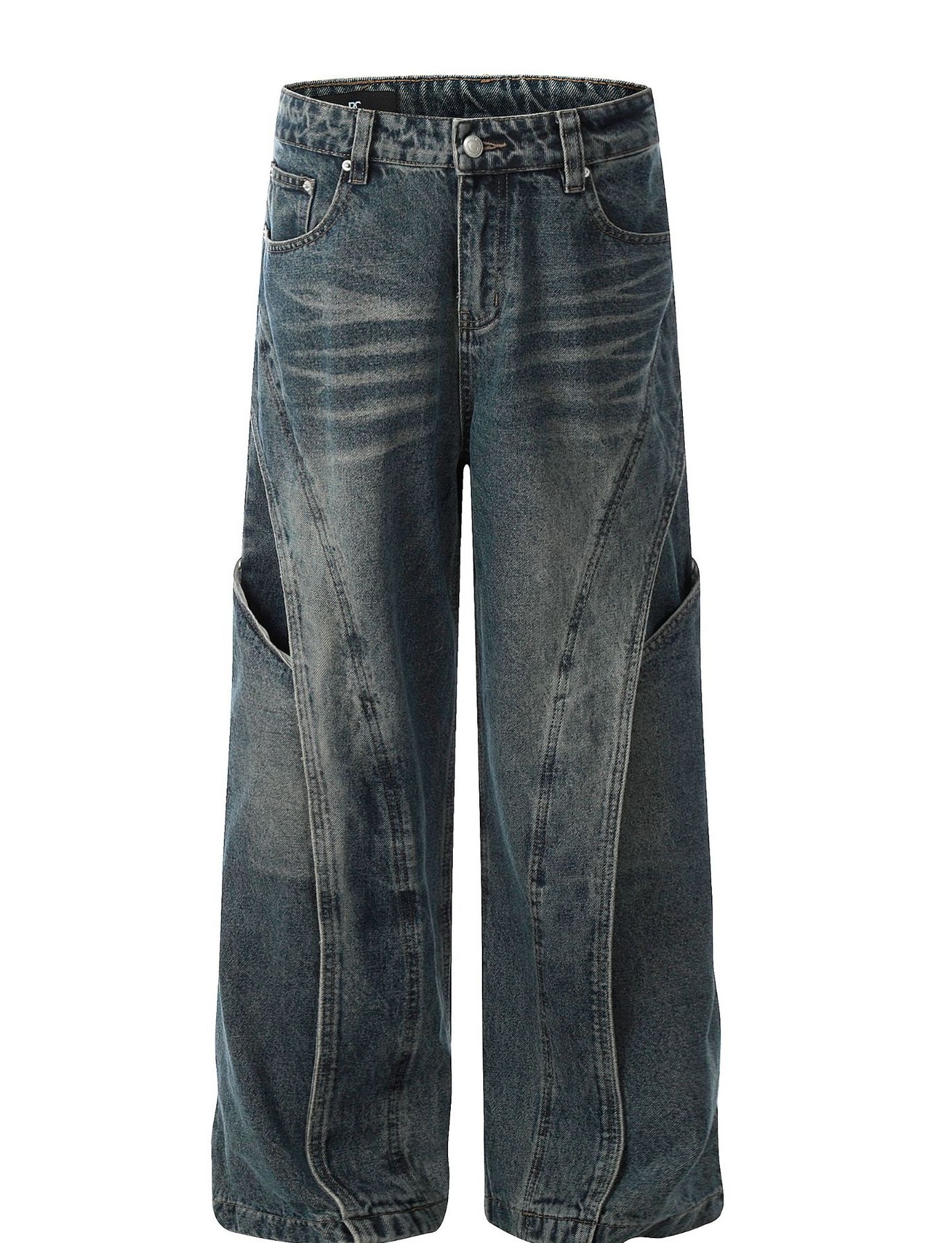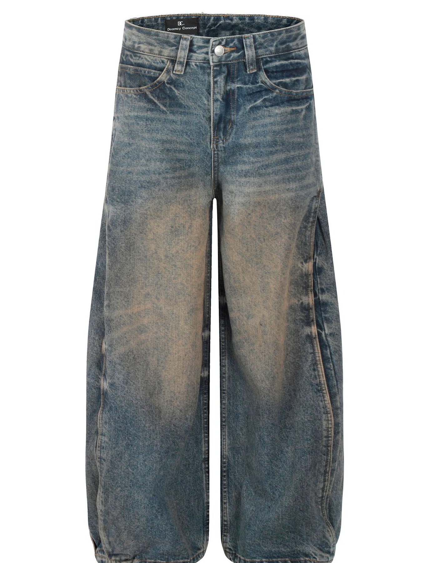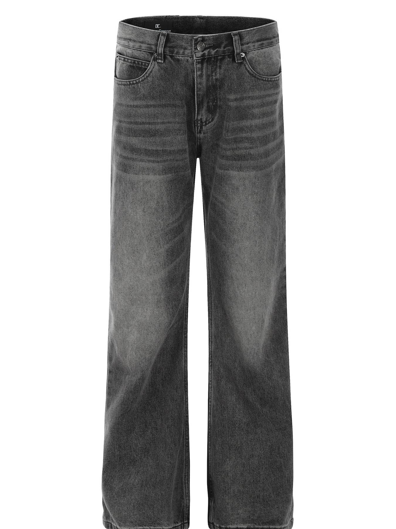 Men's Washed Wide Leg Jeans with Artistic Fade Details