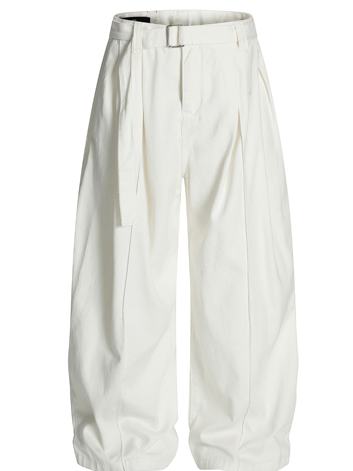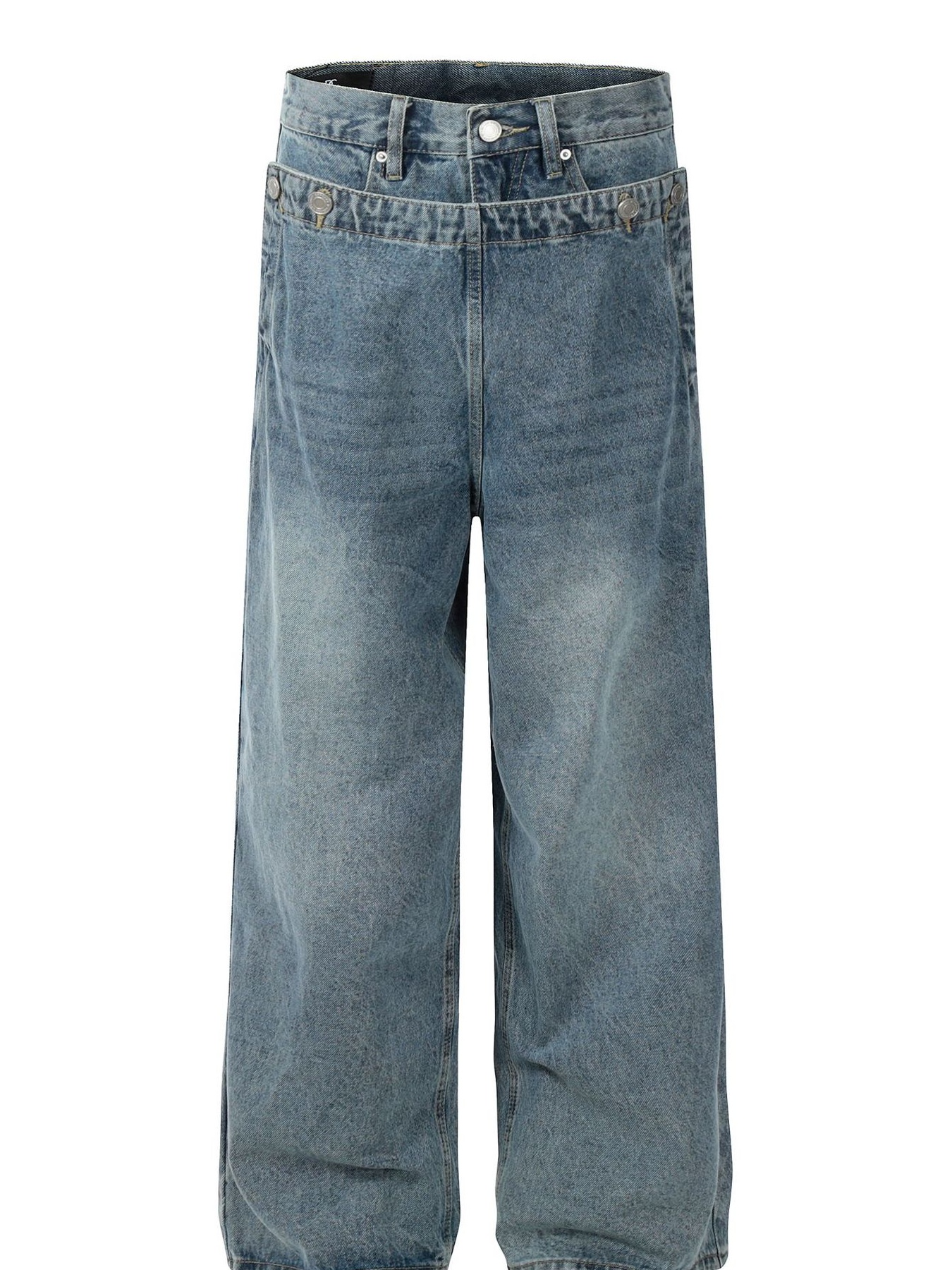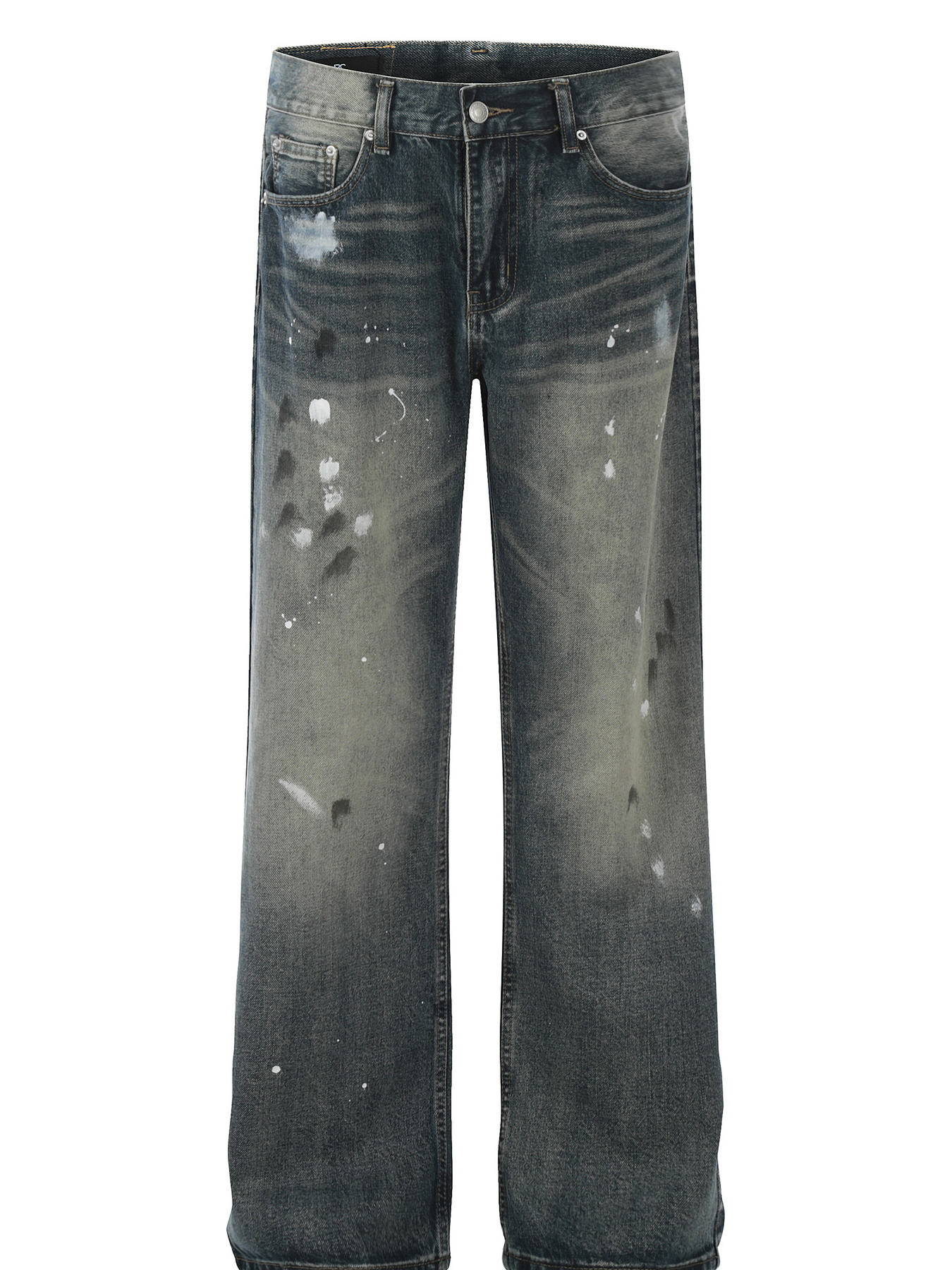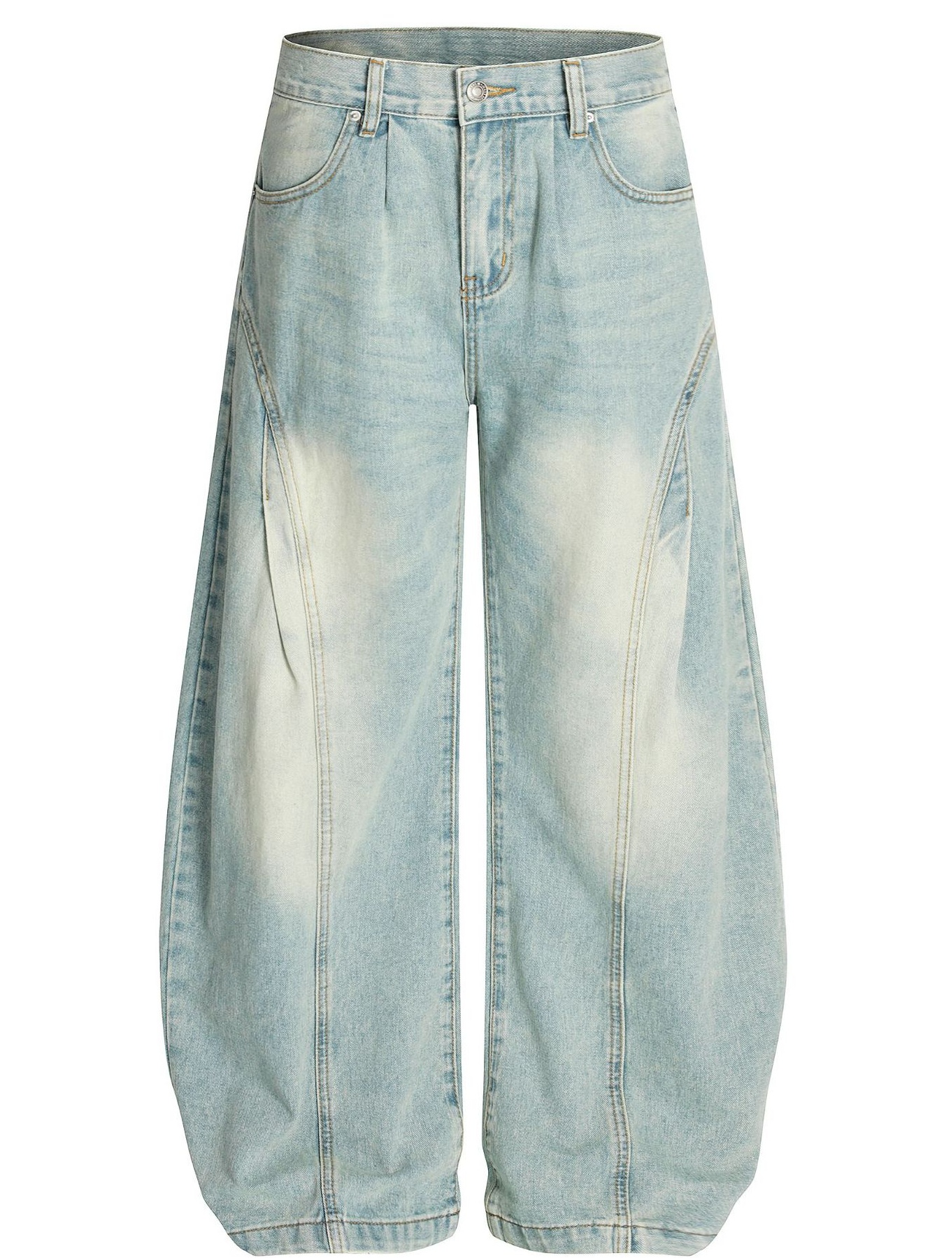 Men's Washed Wide Leg Jeans with Artistic Fade Details