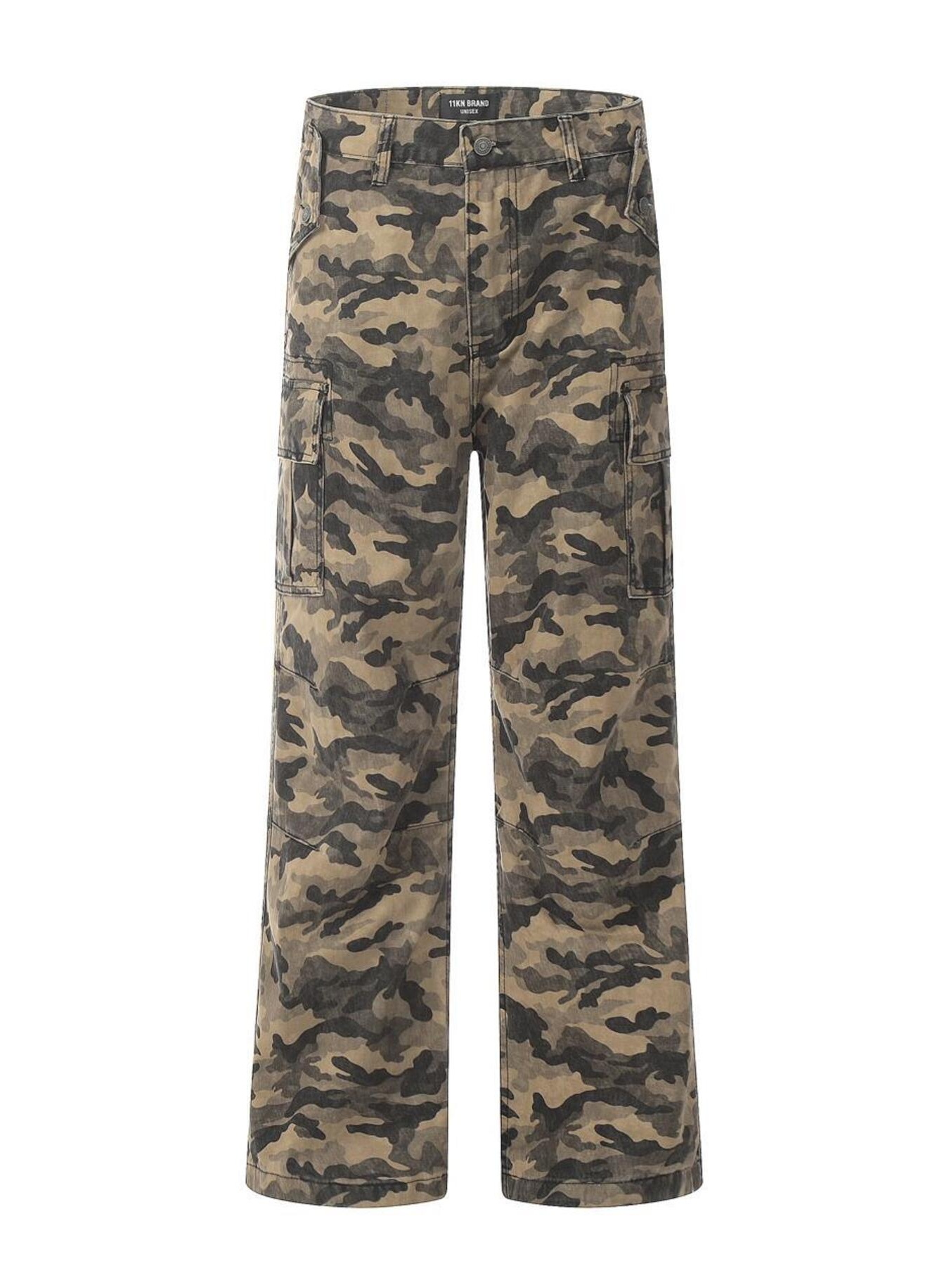 Men's Camouflage Cargo Jeans with Multiple Pockets
