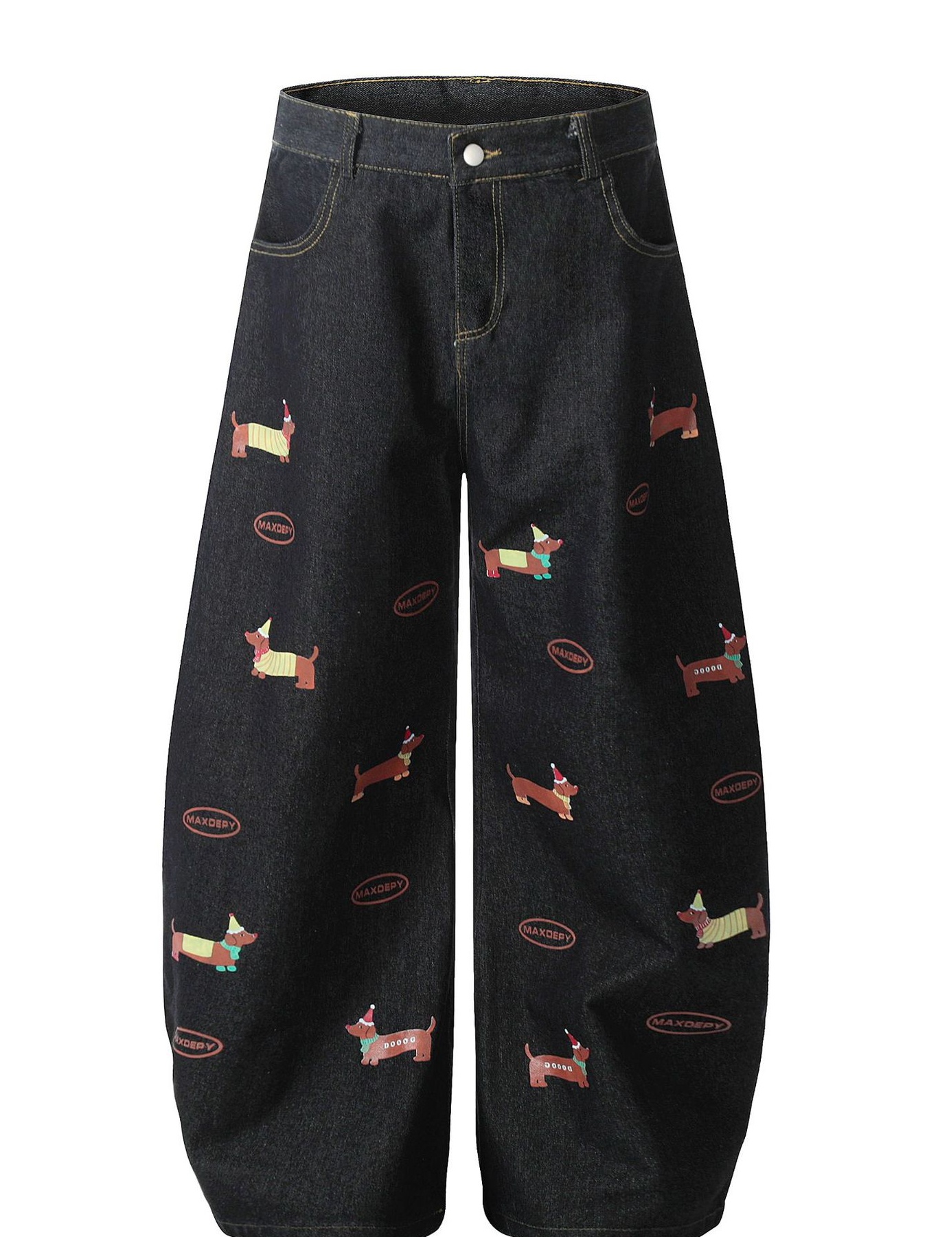 Men's Vintage Newspaper Print Wide Leg Baggy Jeans