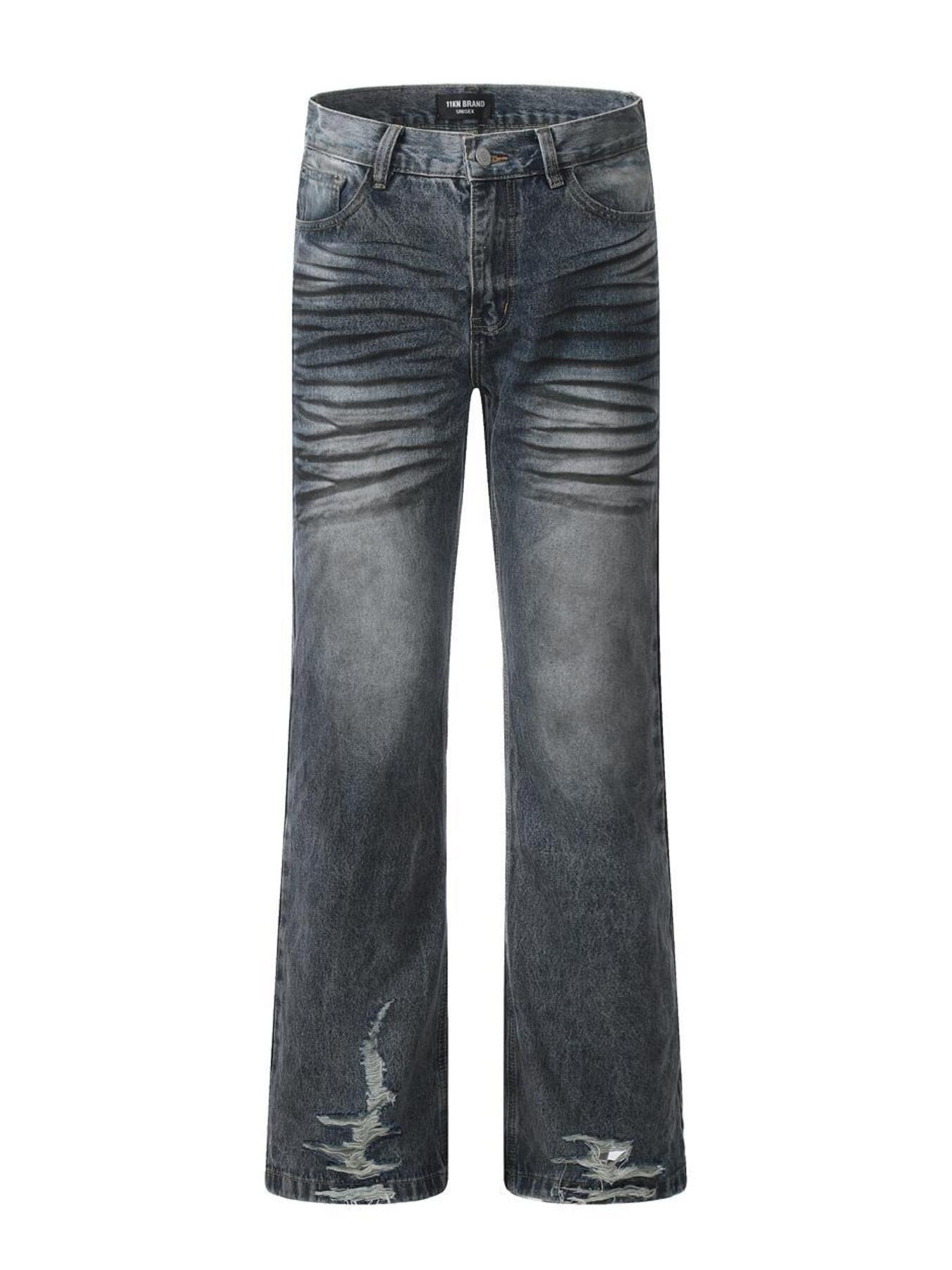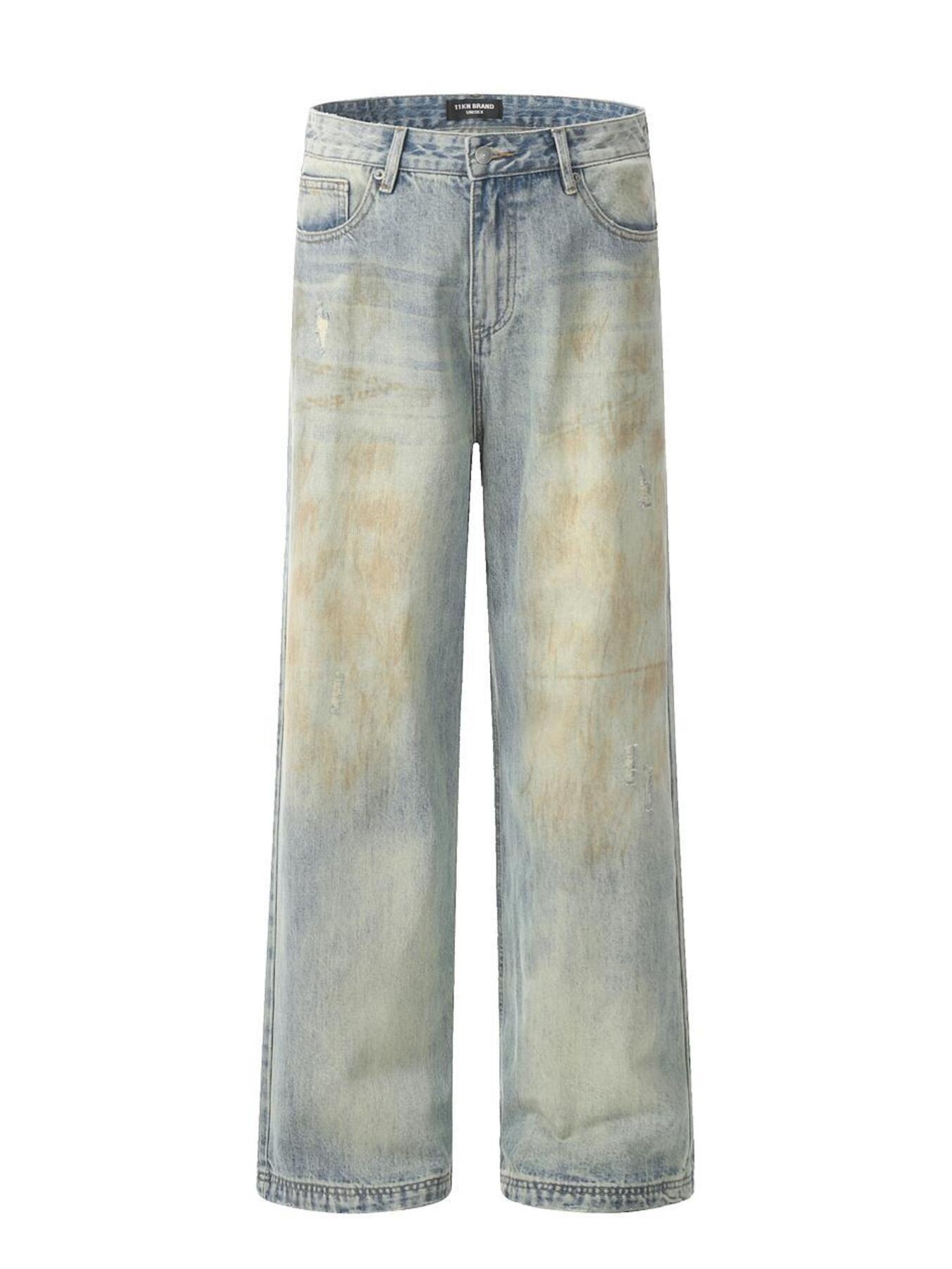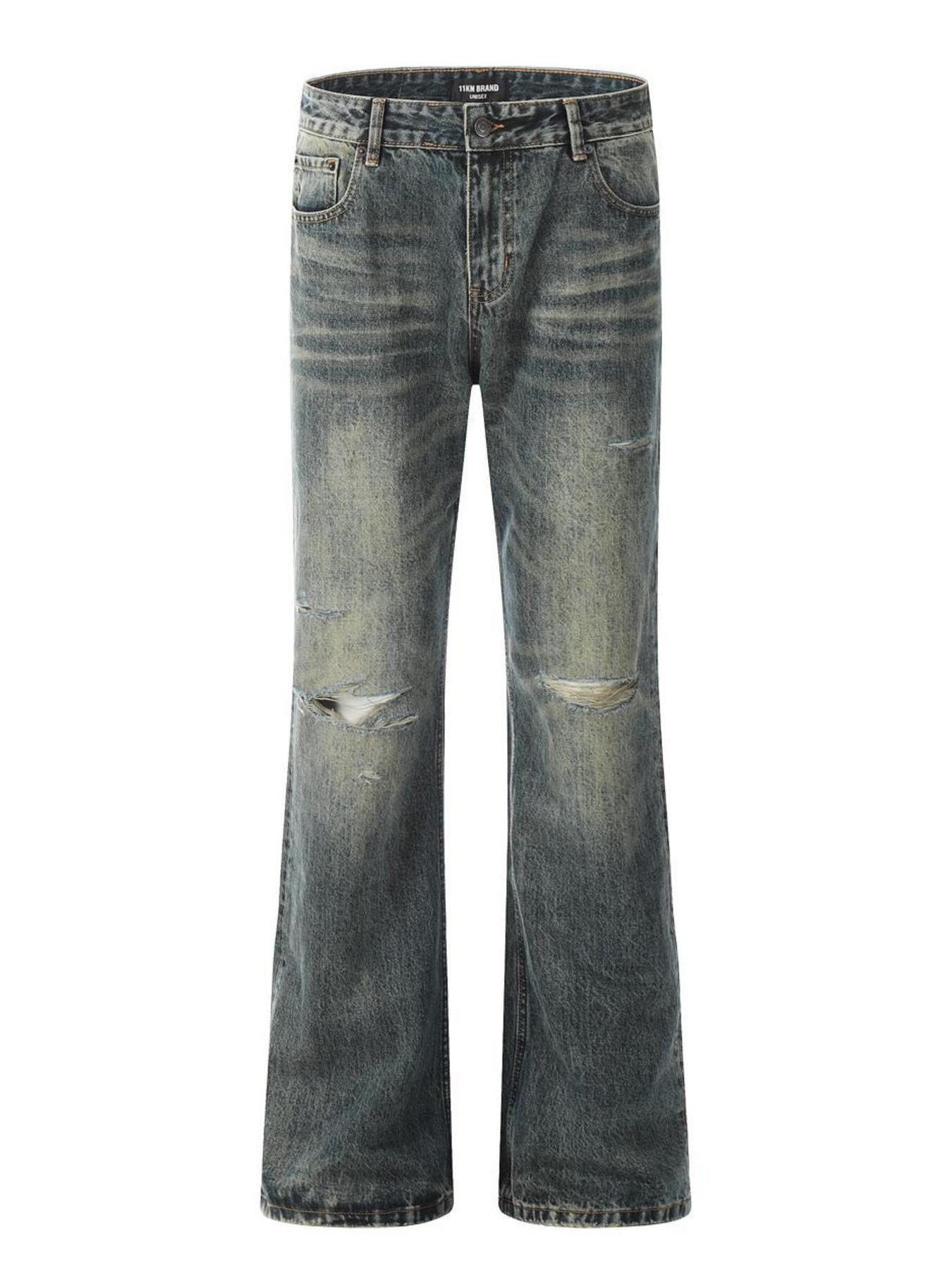 Men's Vintage Washed Distressed Wide-Leg Jeans