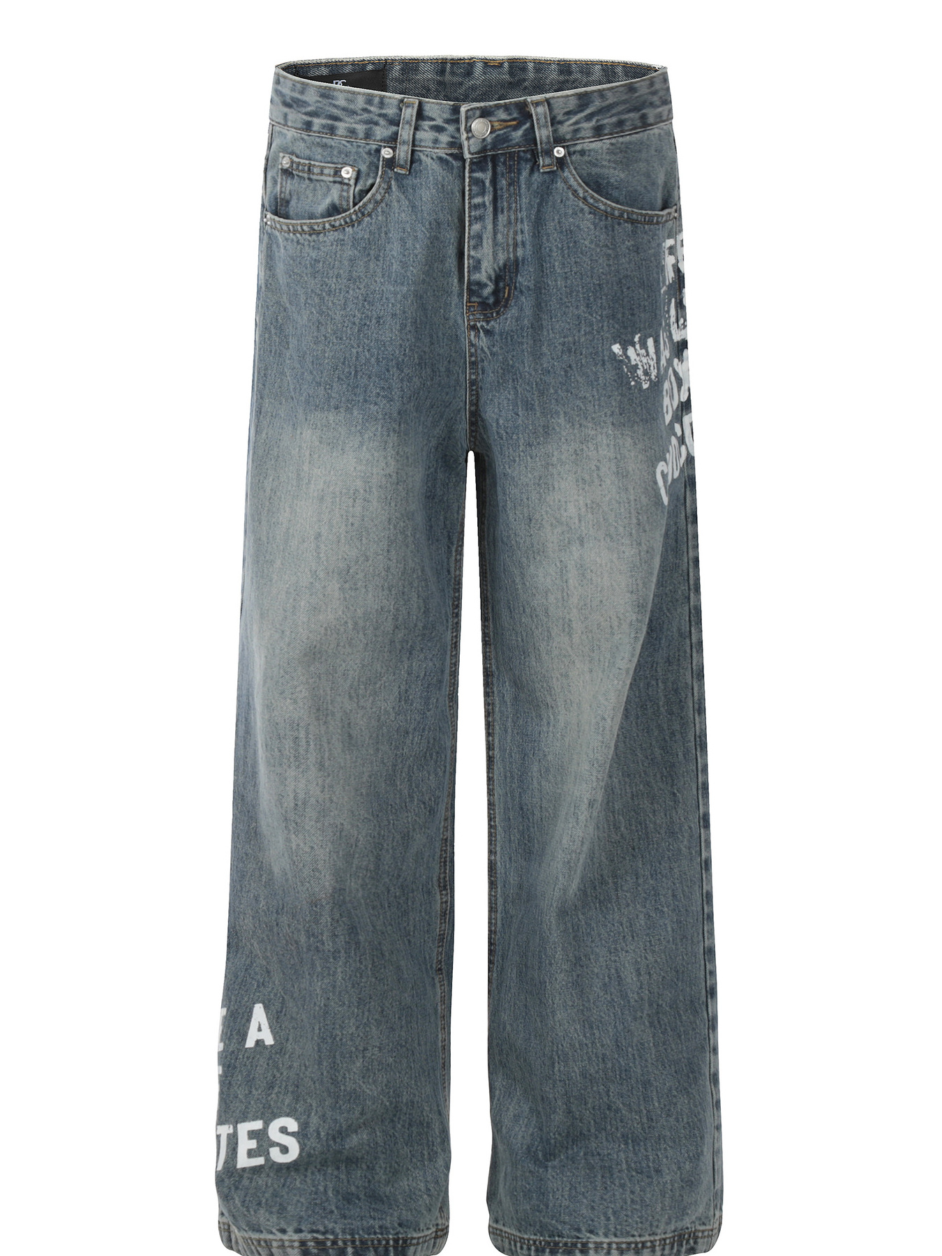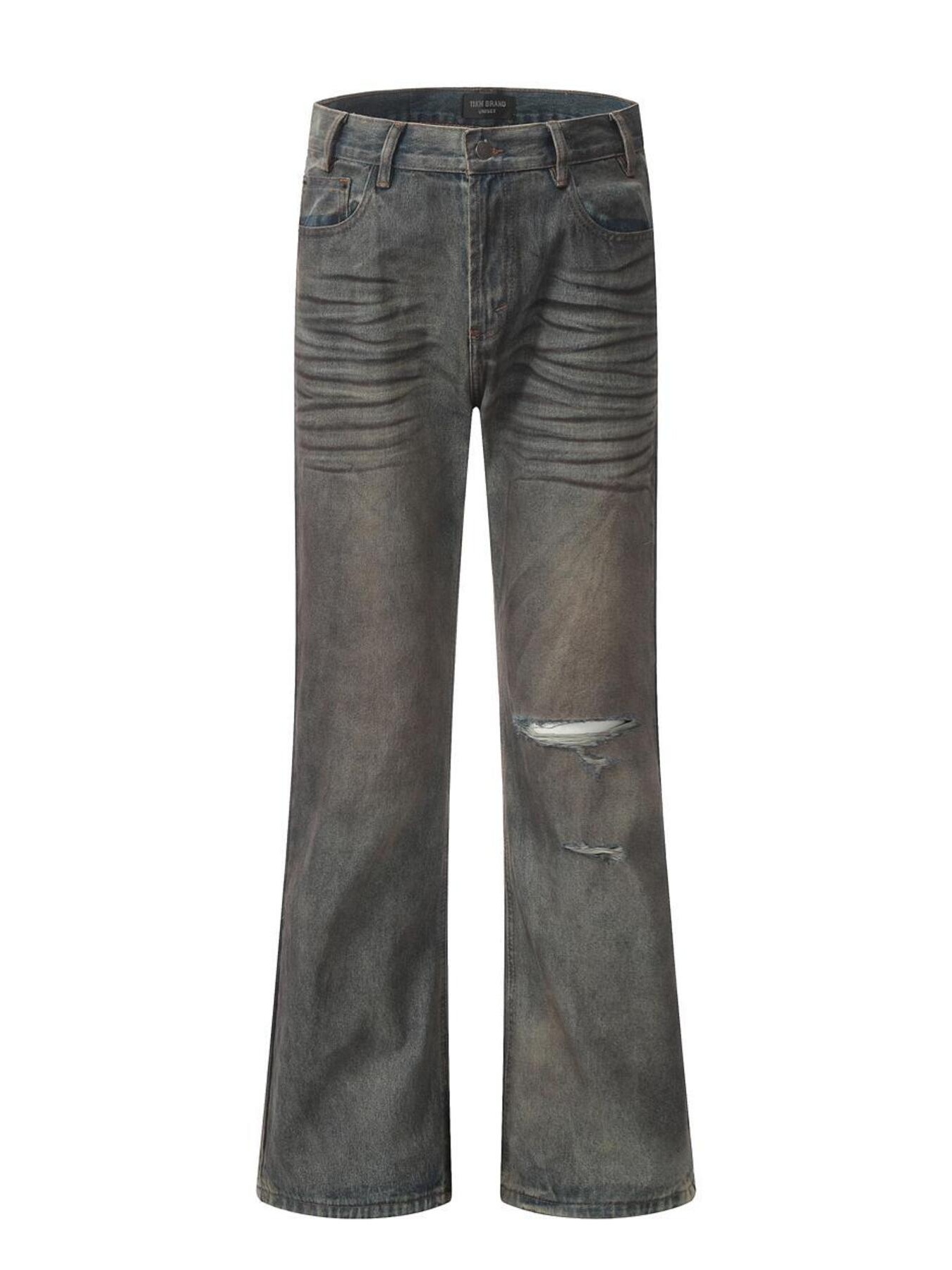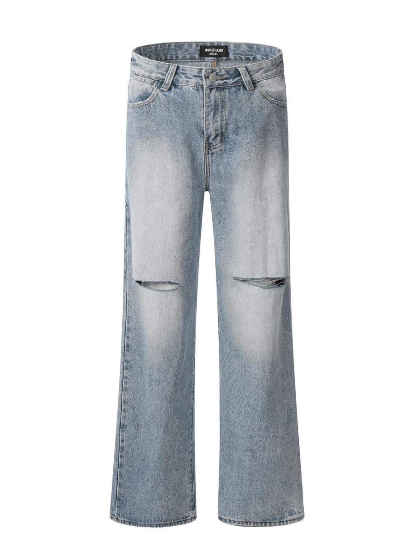 Men's Vintage Washed Distressed Wide-Leg Jeans