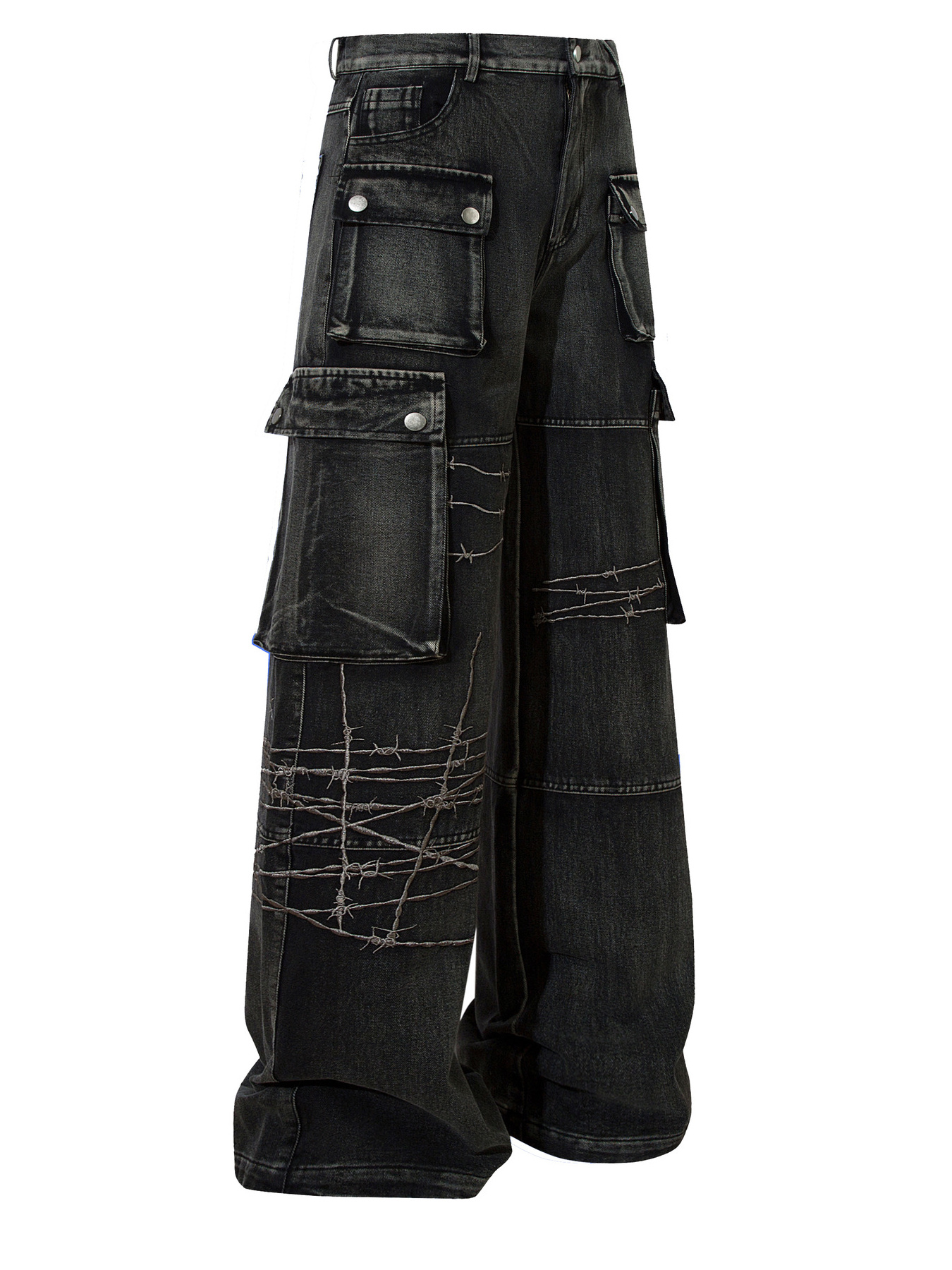 Men's Wide-Leg Cargo Jeans with Side Pockets