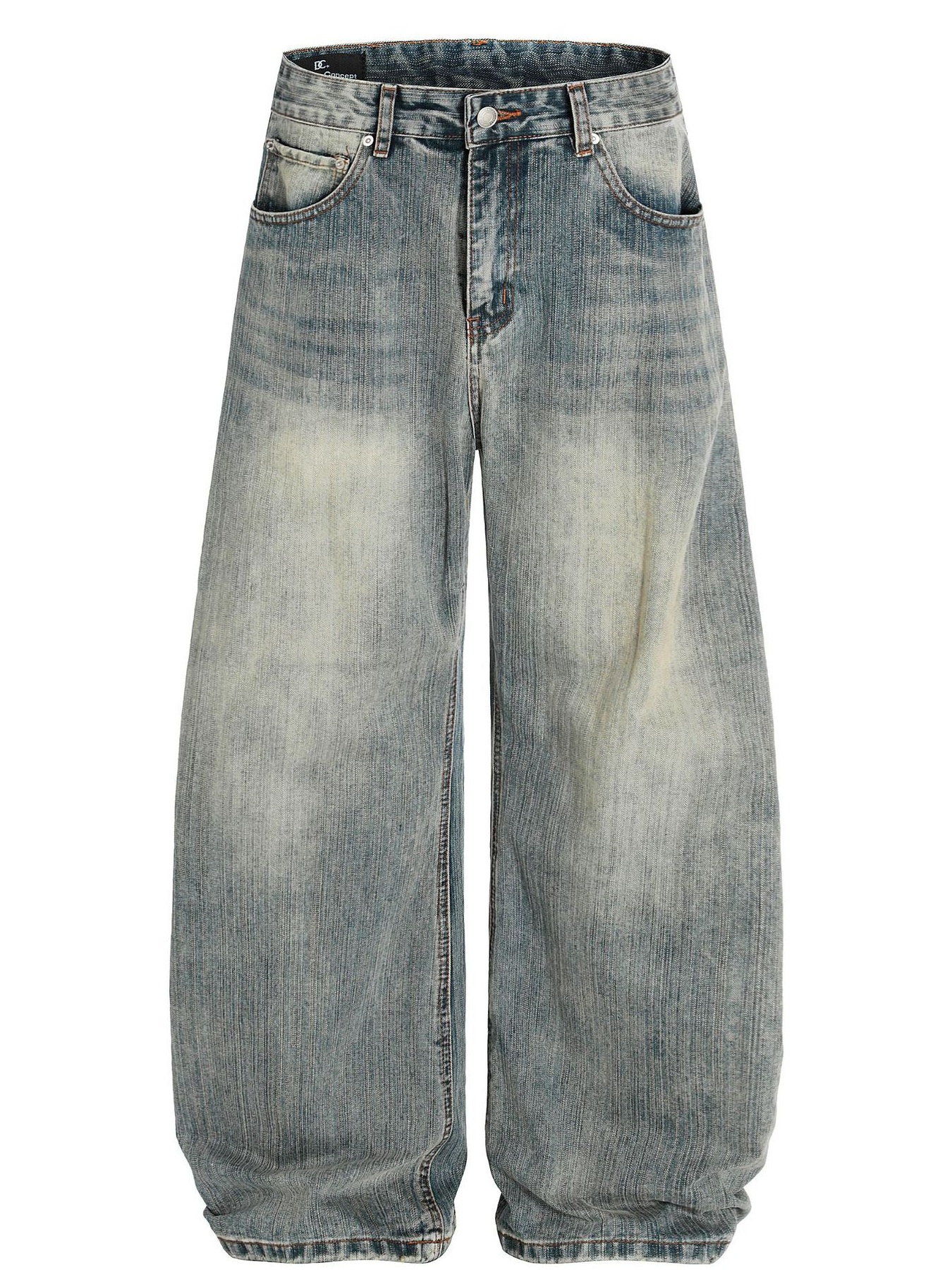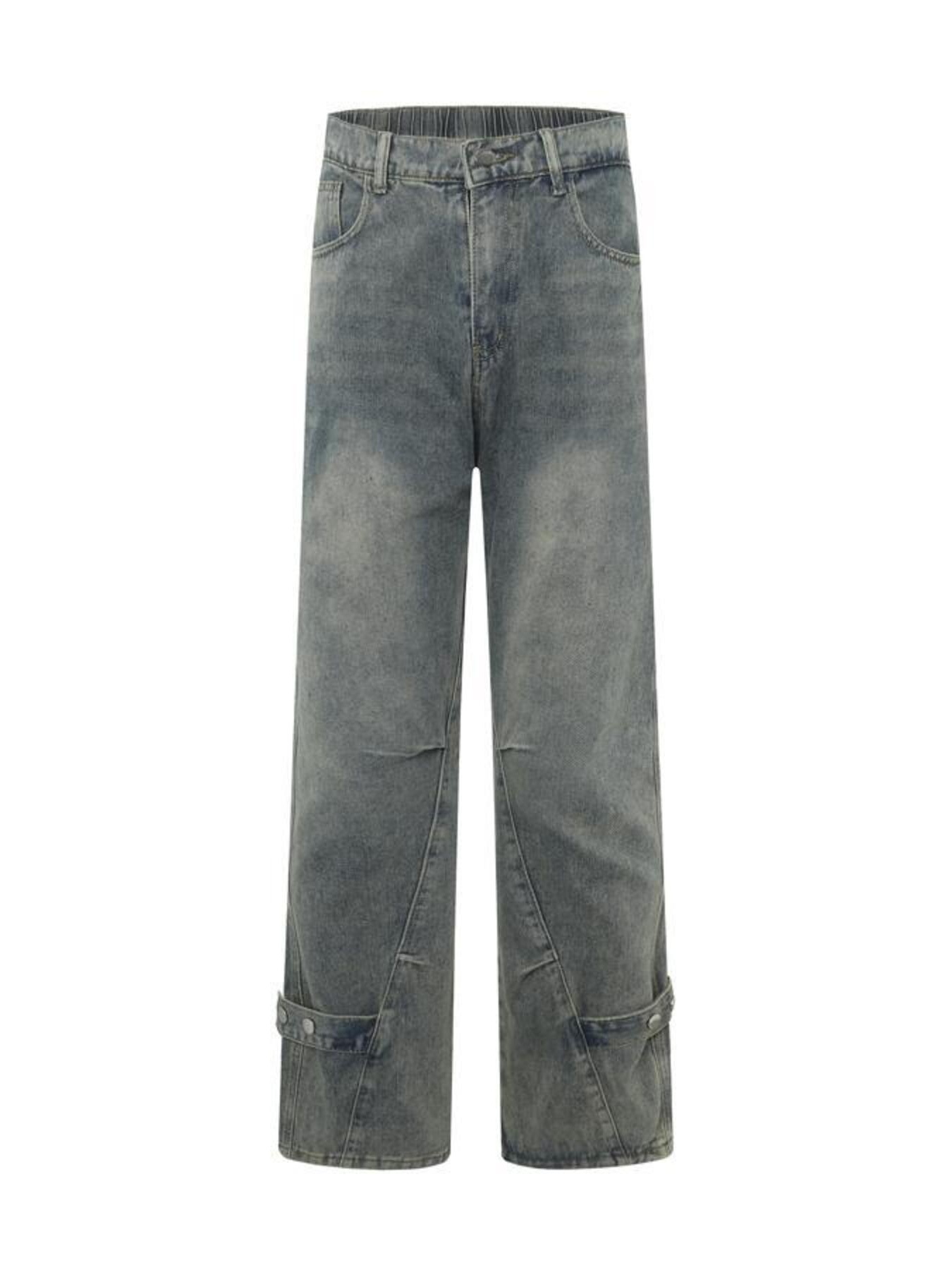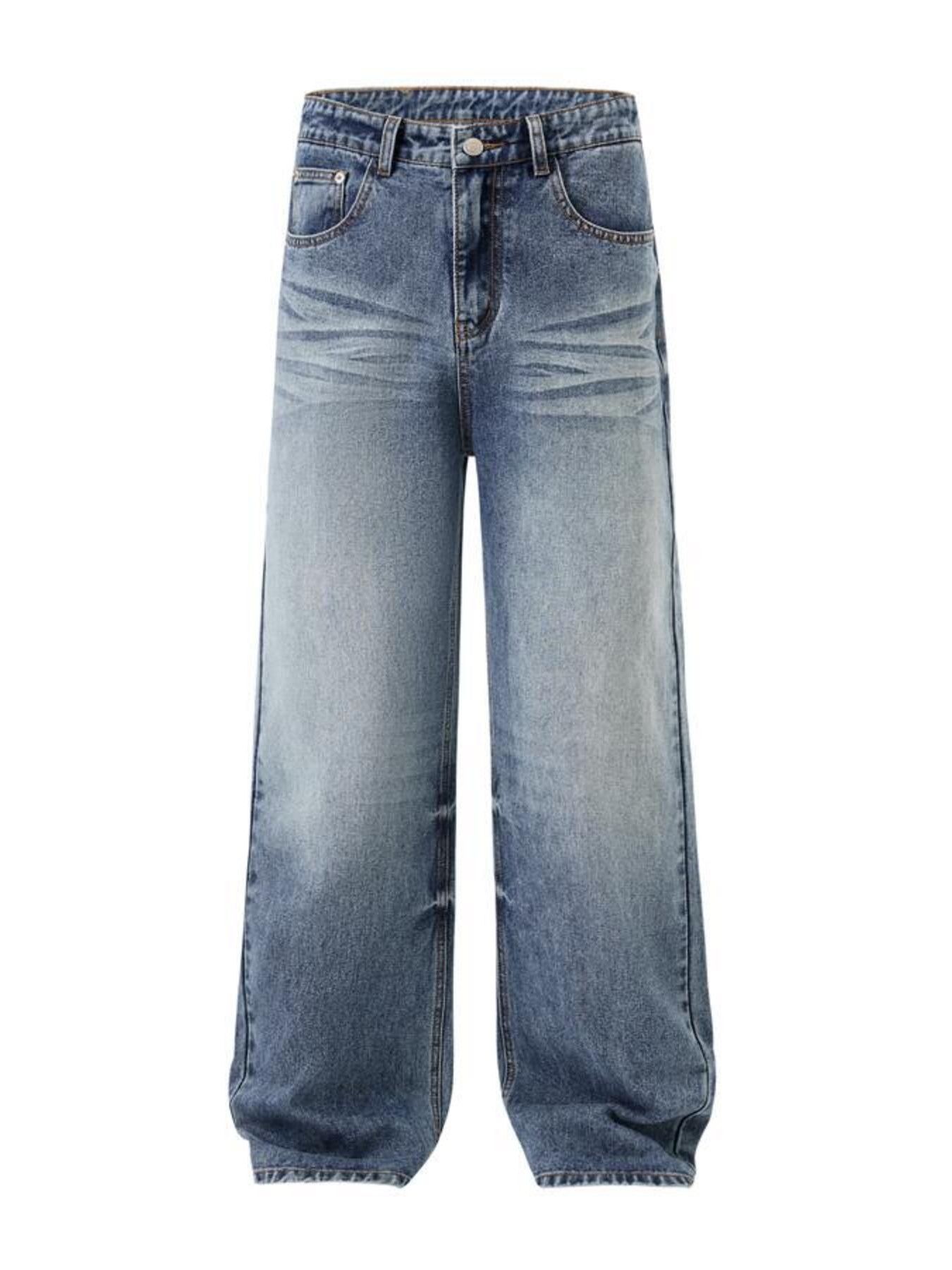 Men's Oversized Wide-Leg Wash Denim Jeans