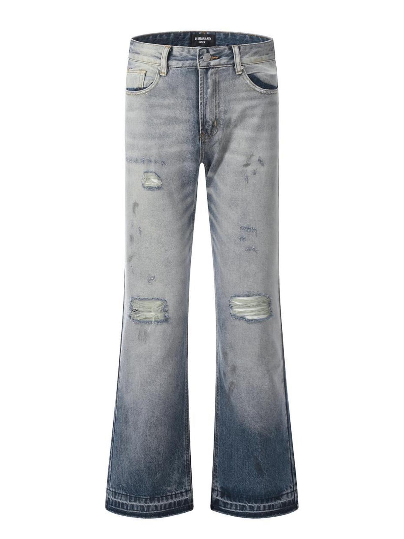 Men's Vintage Washed Gradient Distressed Flare Jeans