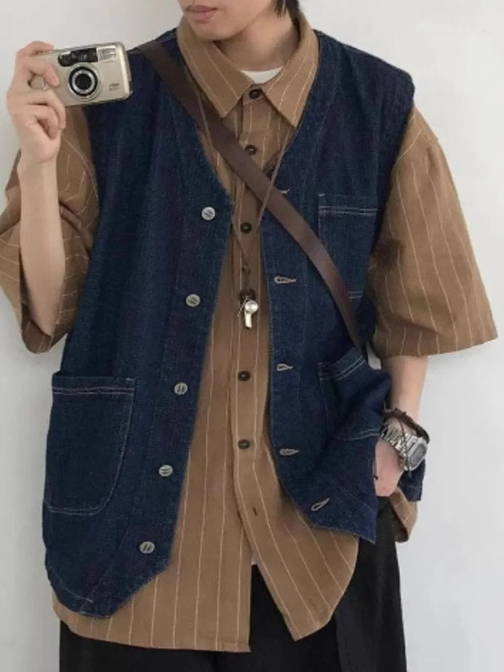 Men's Plus Size Button Up V-Neck Denim Vest