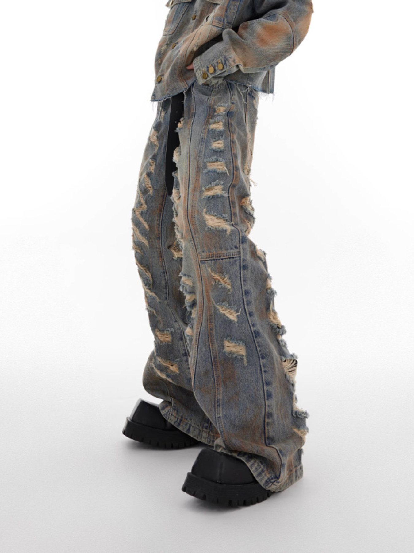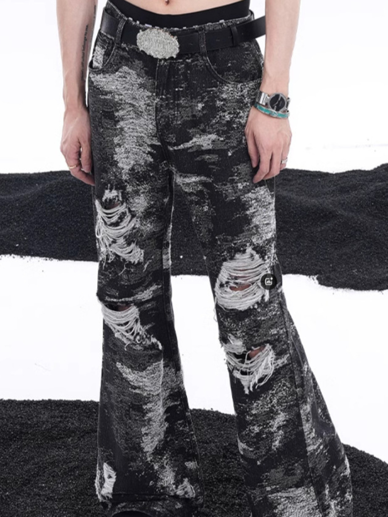 Men's Distressed Wide Leg Jeans