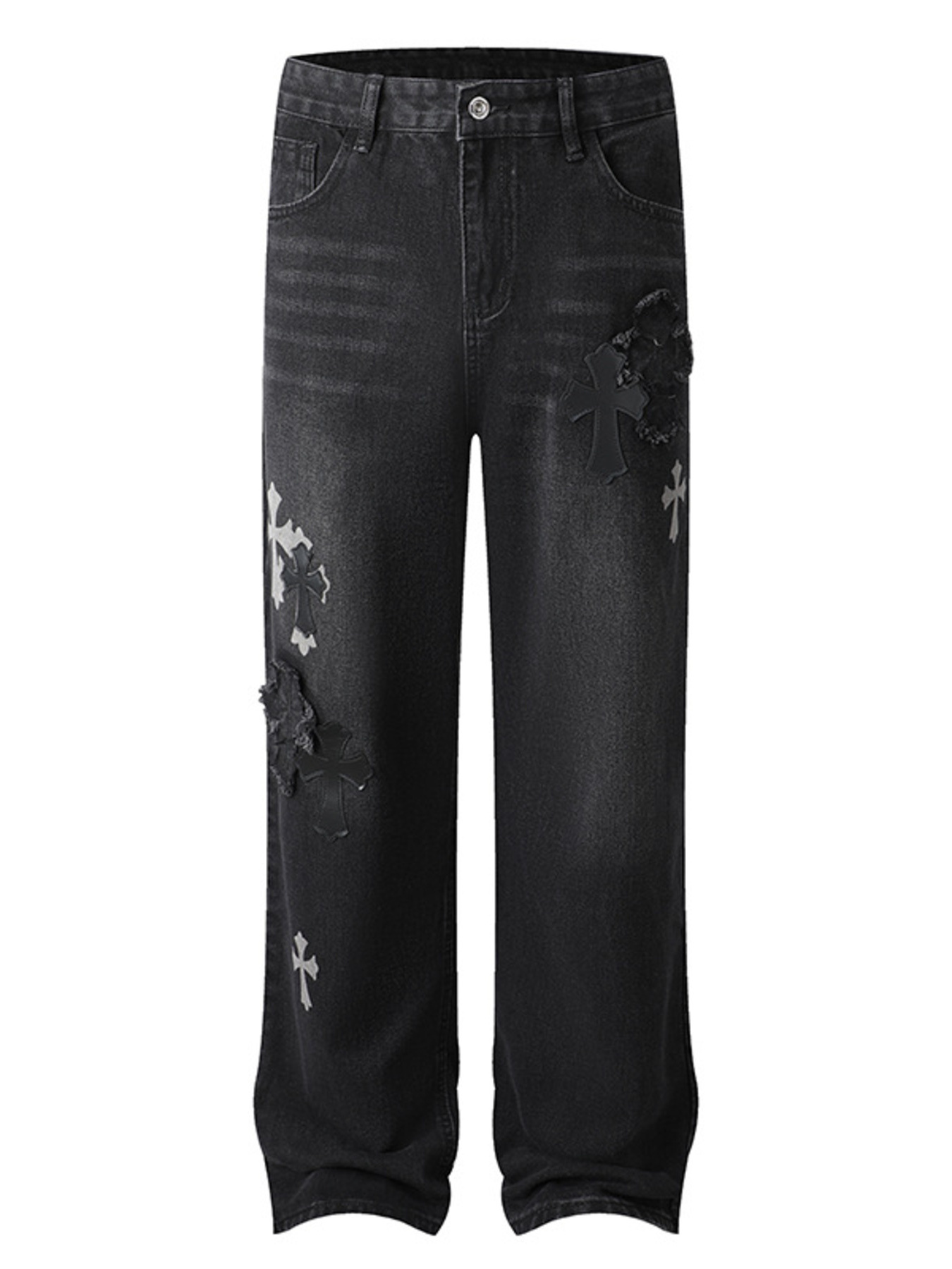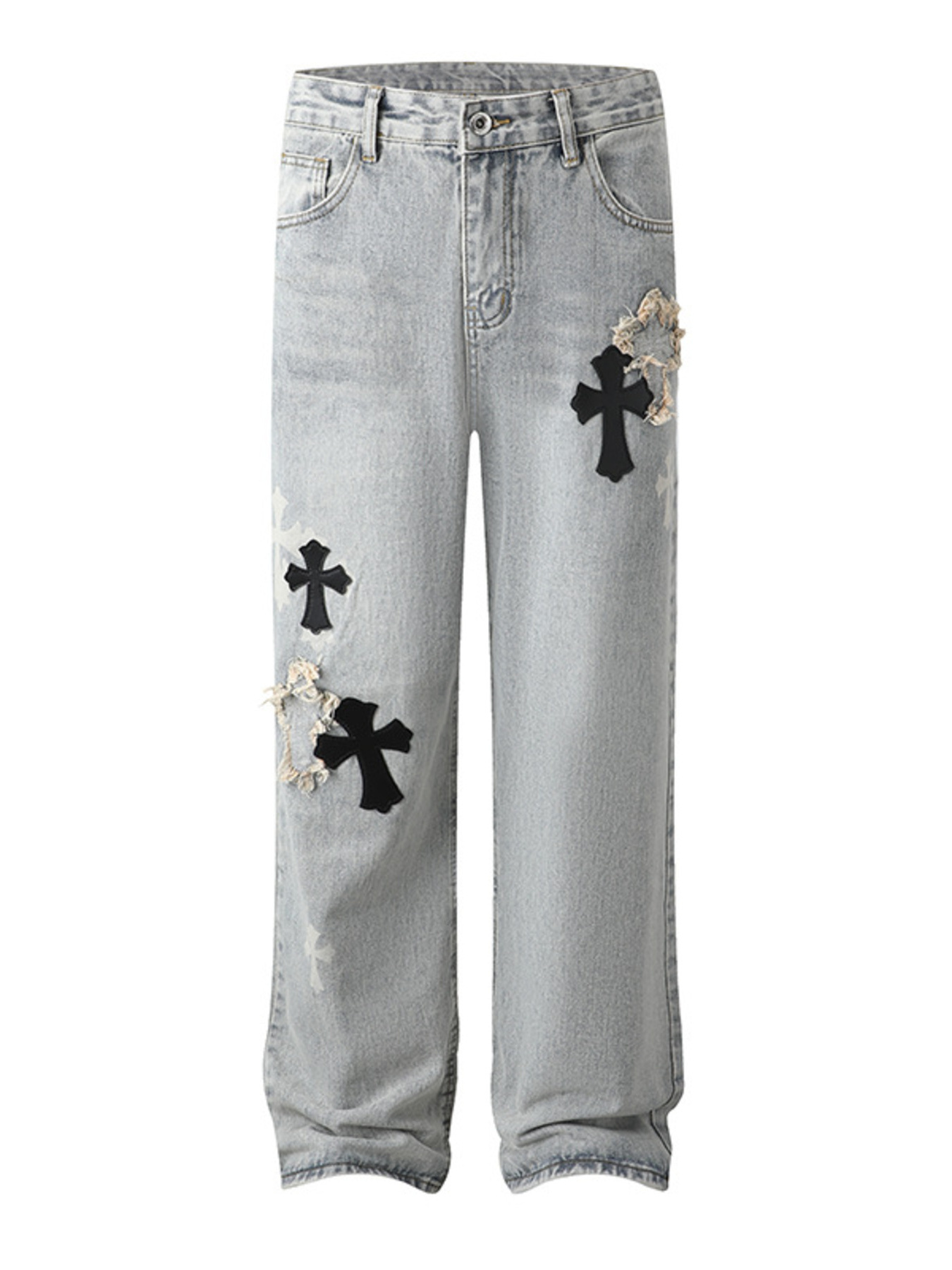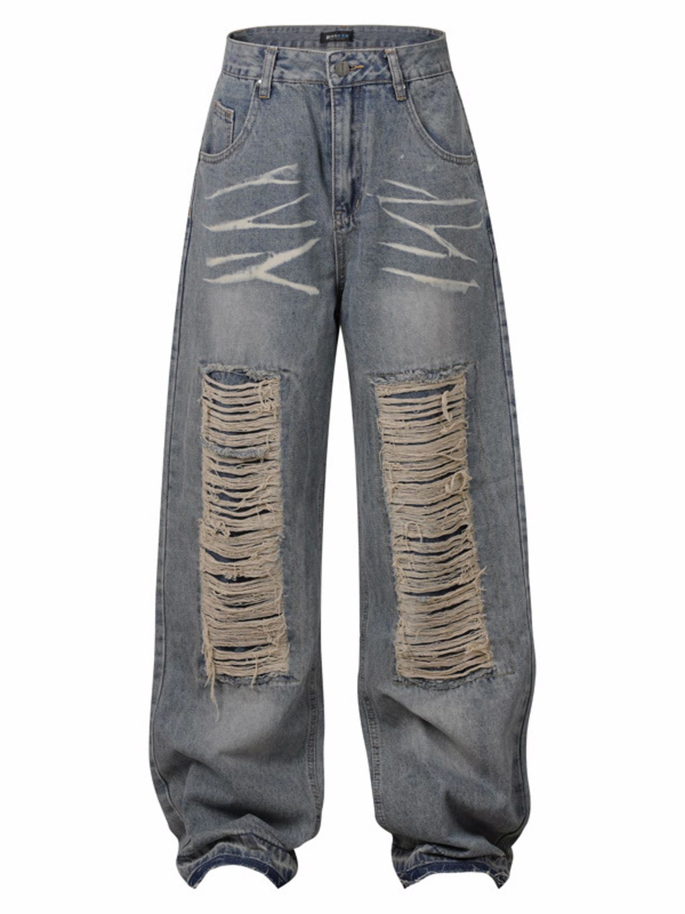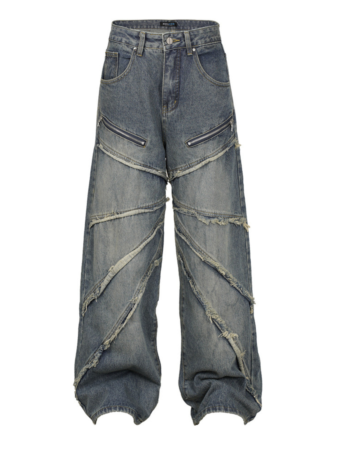 Men's Distressed Camouflage Patchwork Wide Leg Jeans