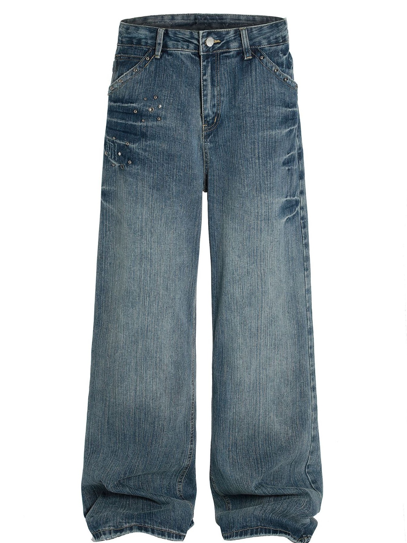Men's Vintage Wash Wide Leg Pocket Jeans