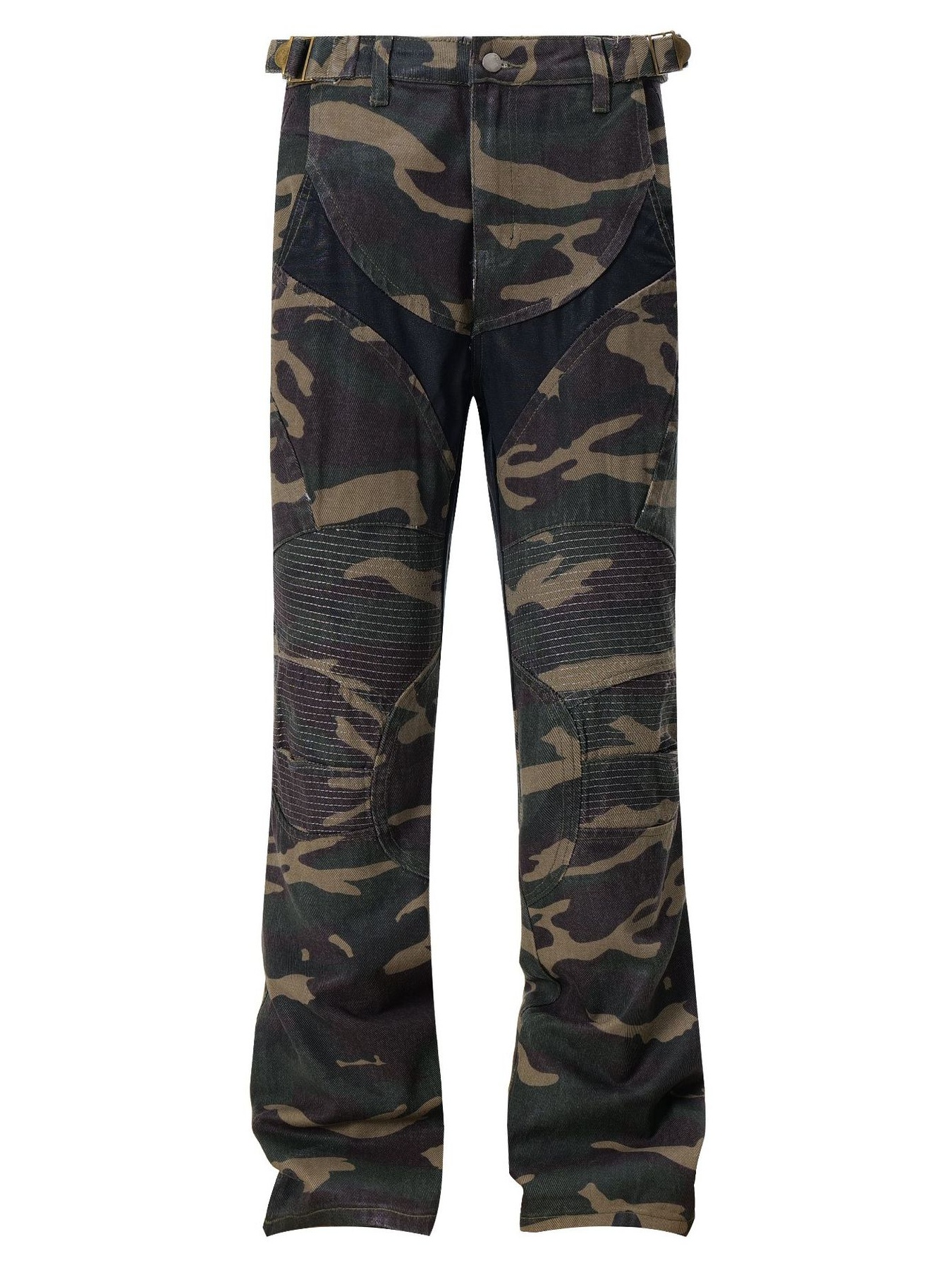 Men's Camouflage Bootcut Jeans with Seam Detail