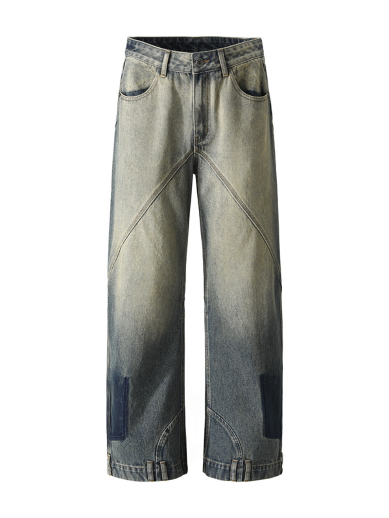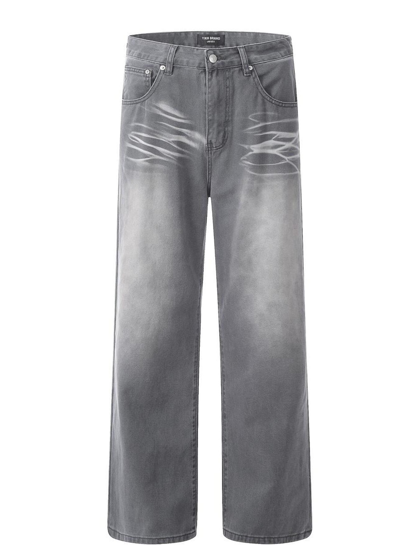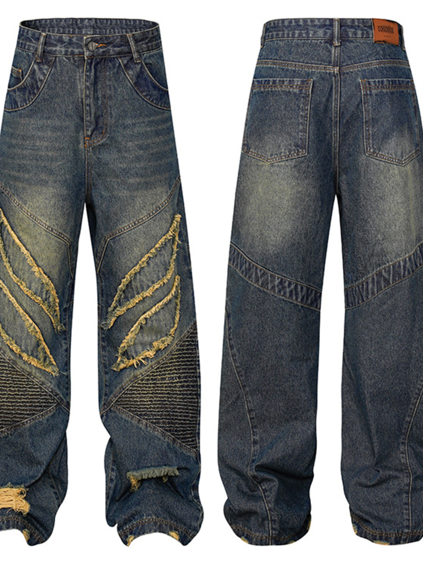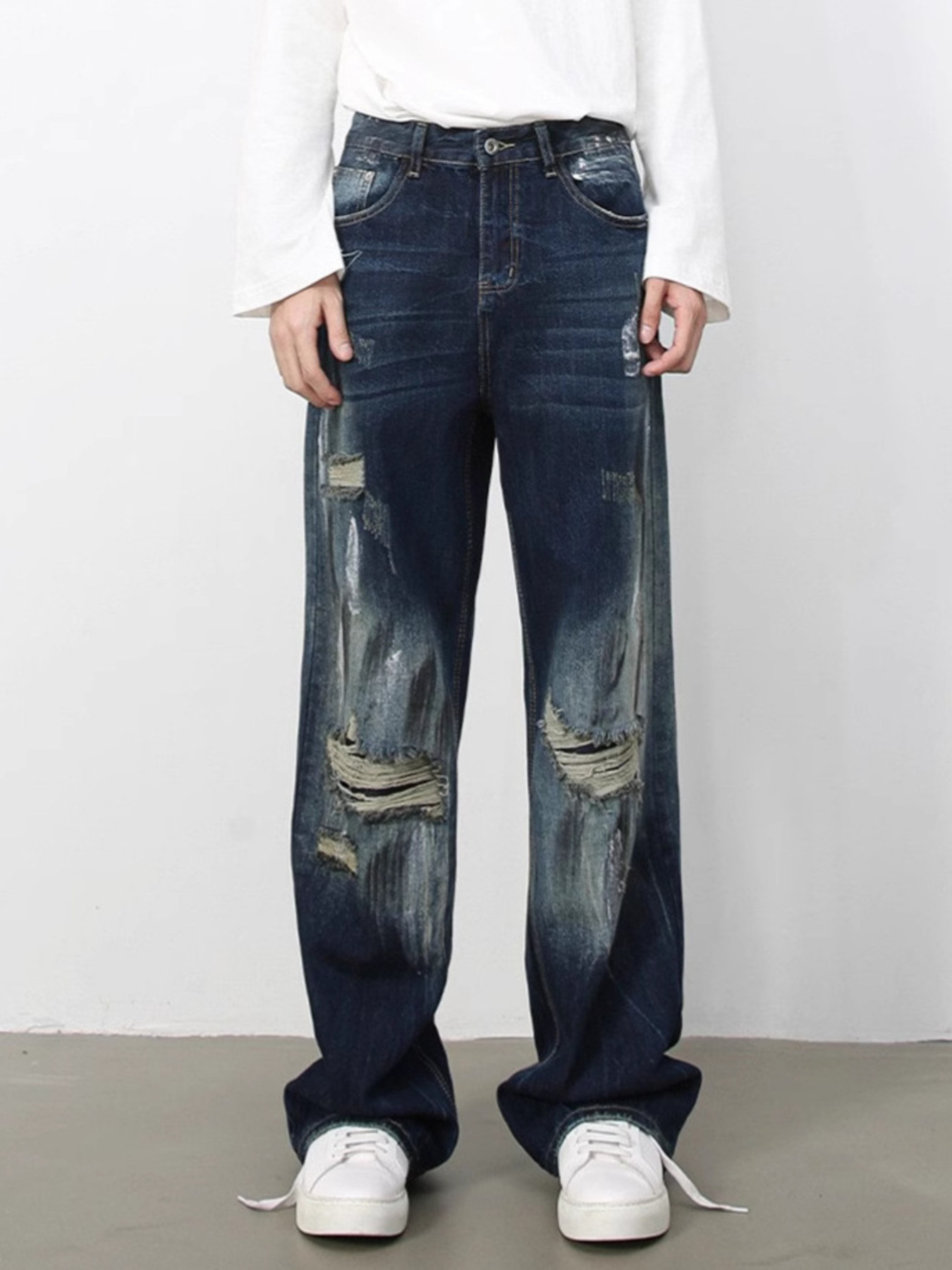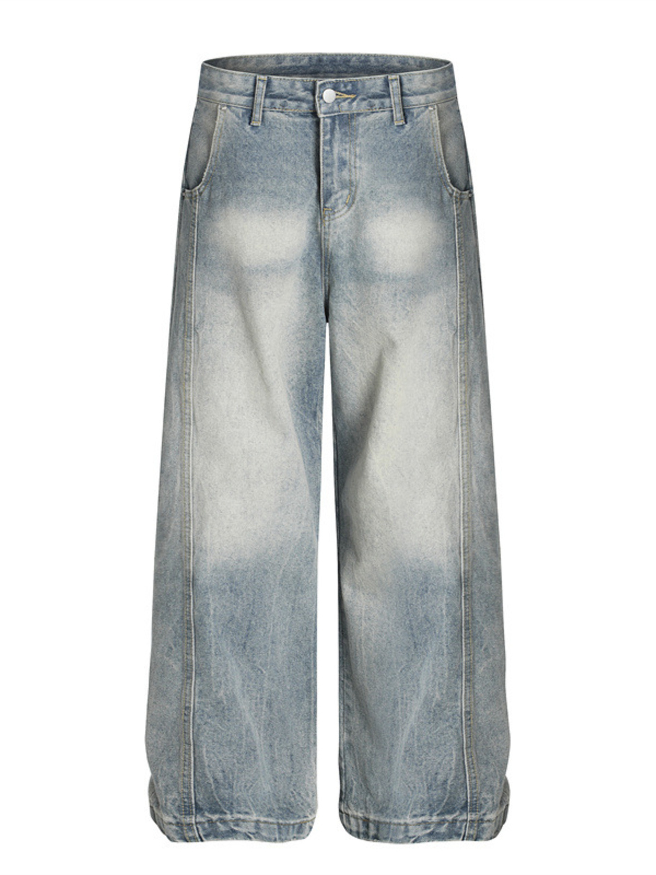 Men's Distressed Wide Leg Vintage Wash Jeans