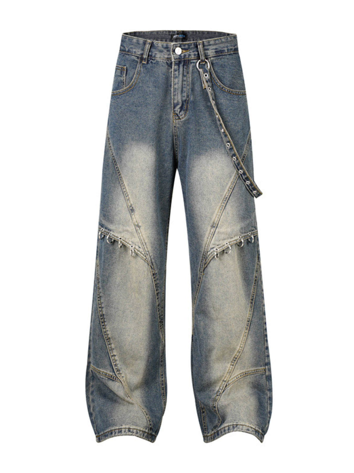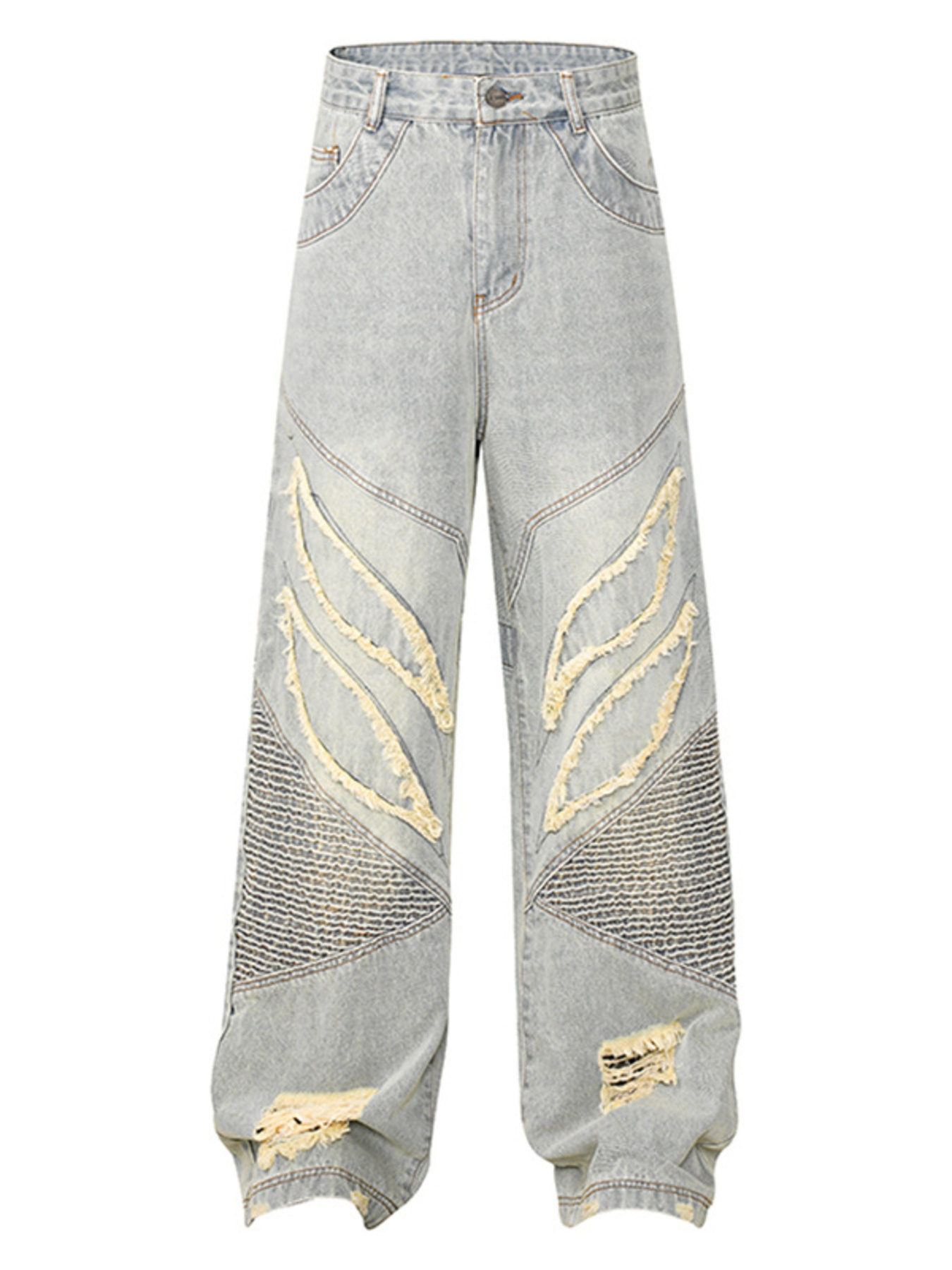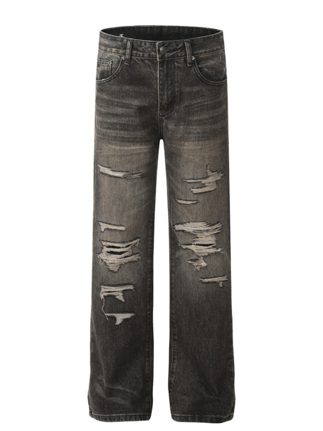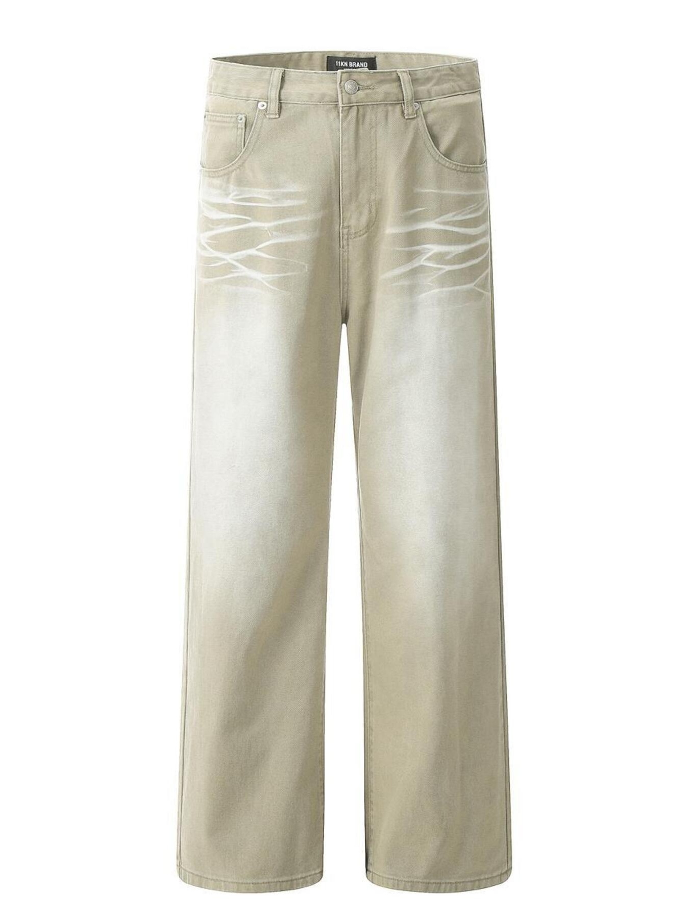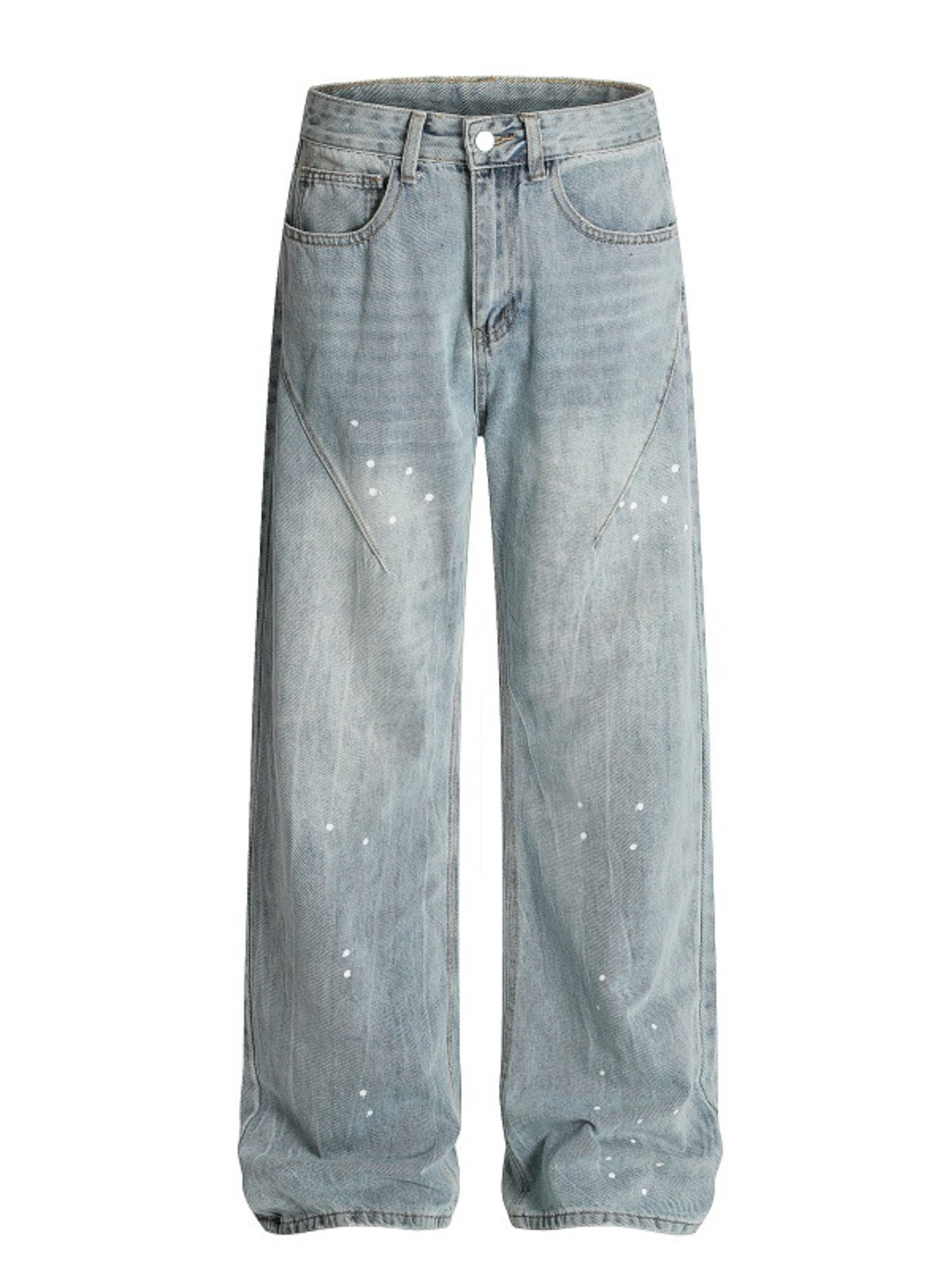 Men's Distressed Wide Leg Vintage Wash Jeans