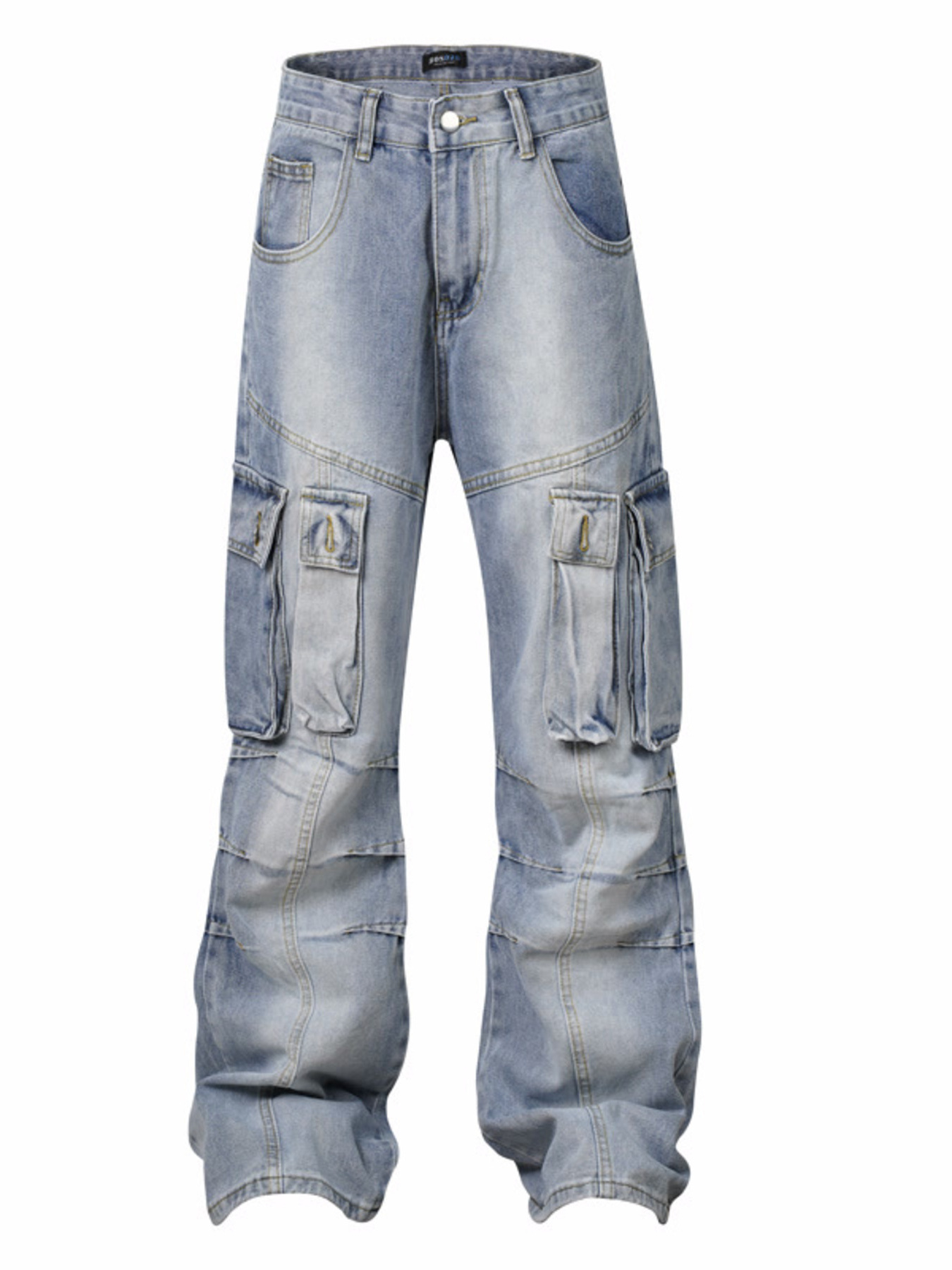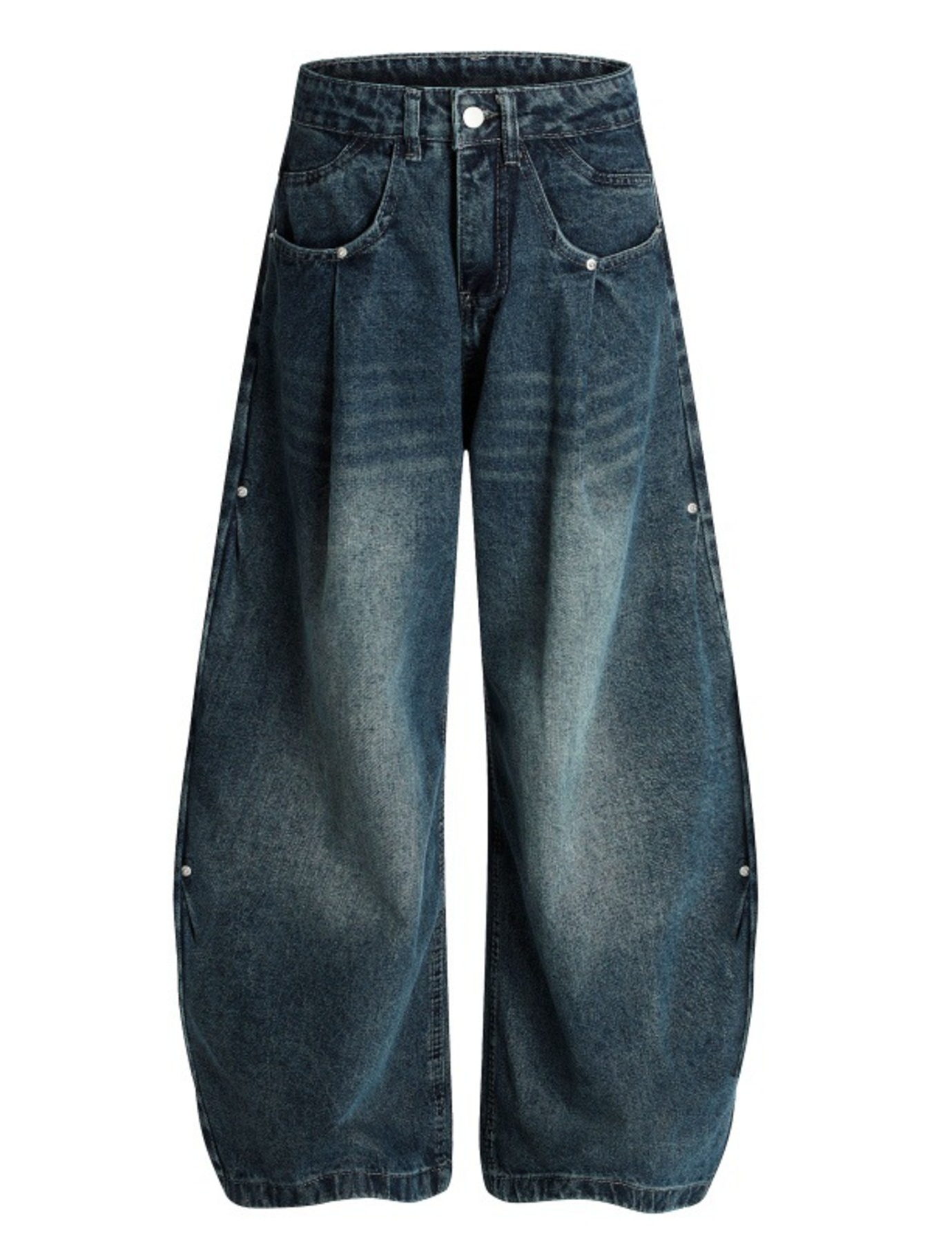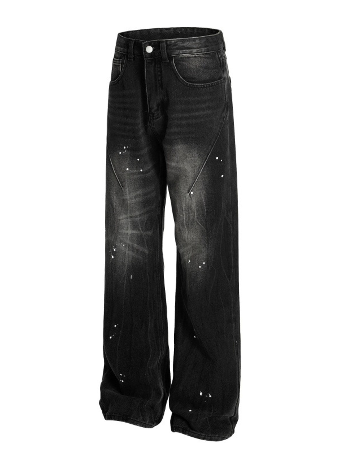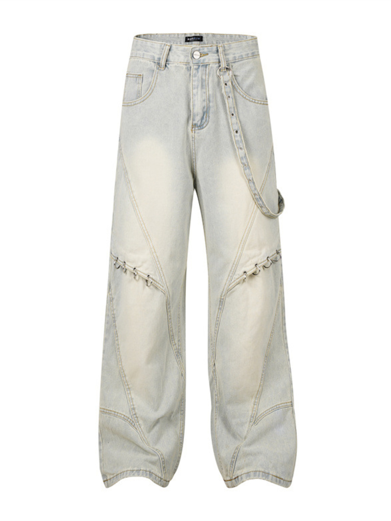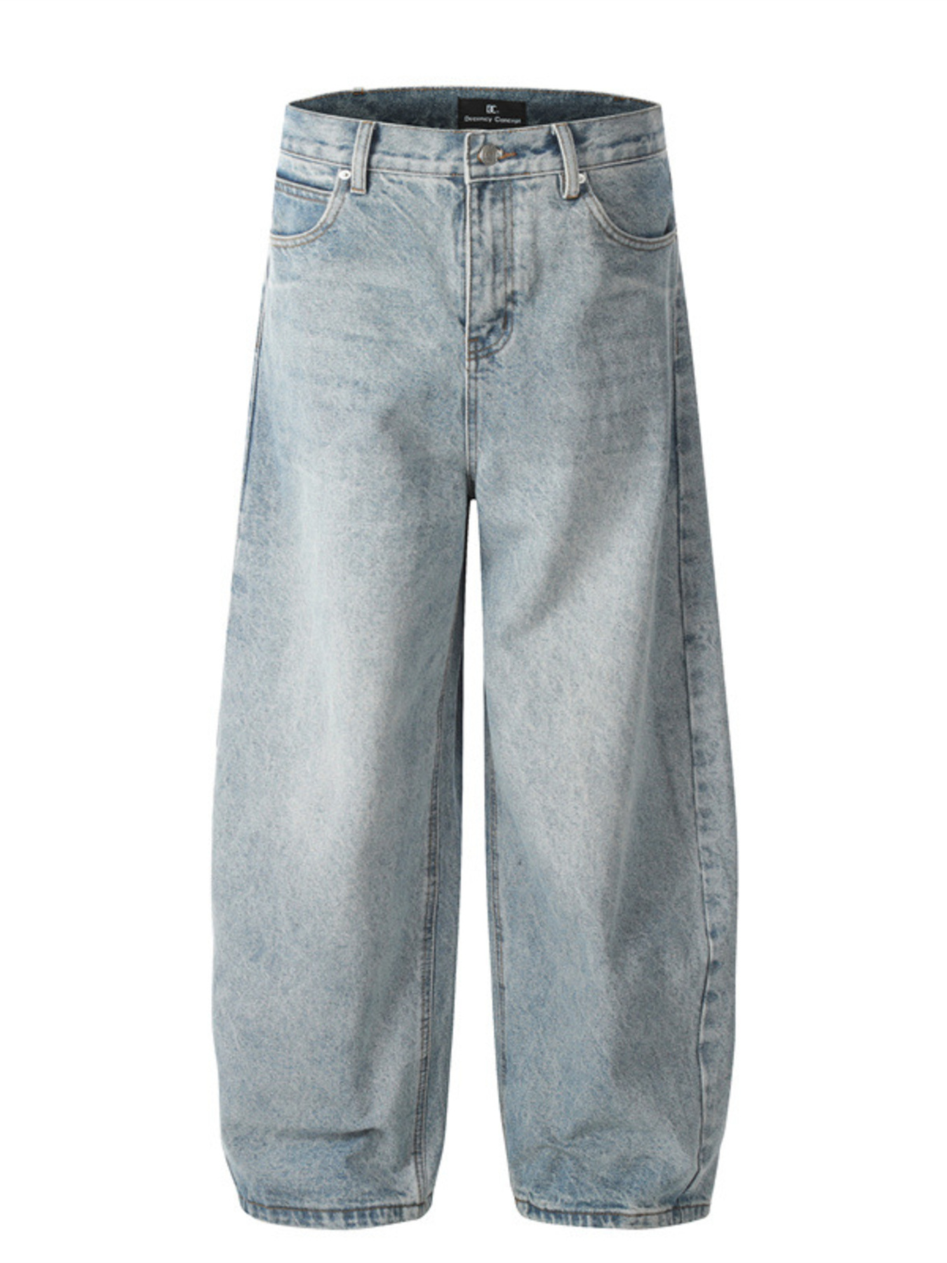 Men's Distressed Wide Leg Vintage Wash Jeans