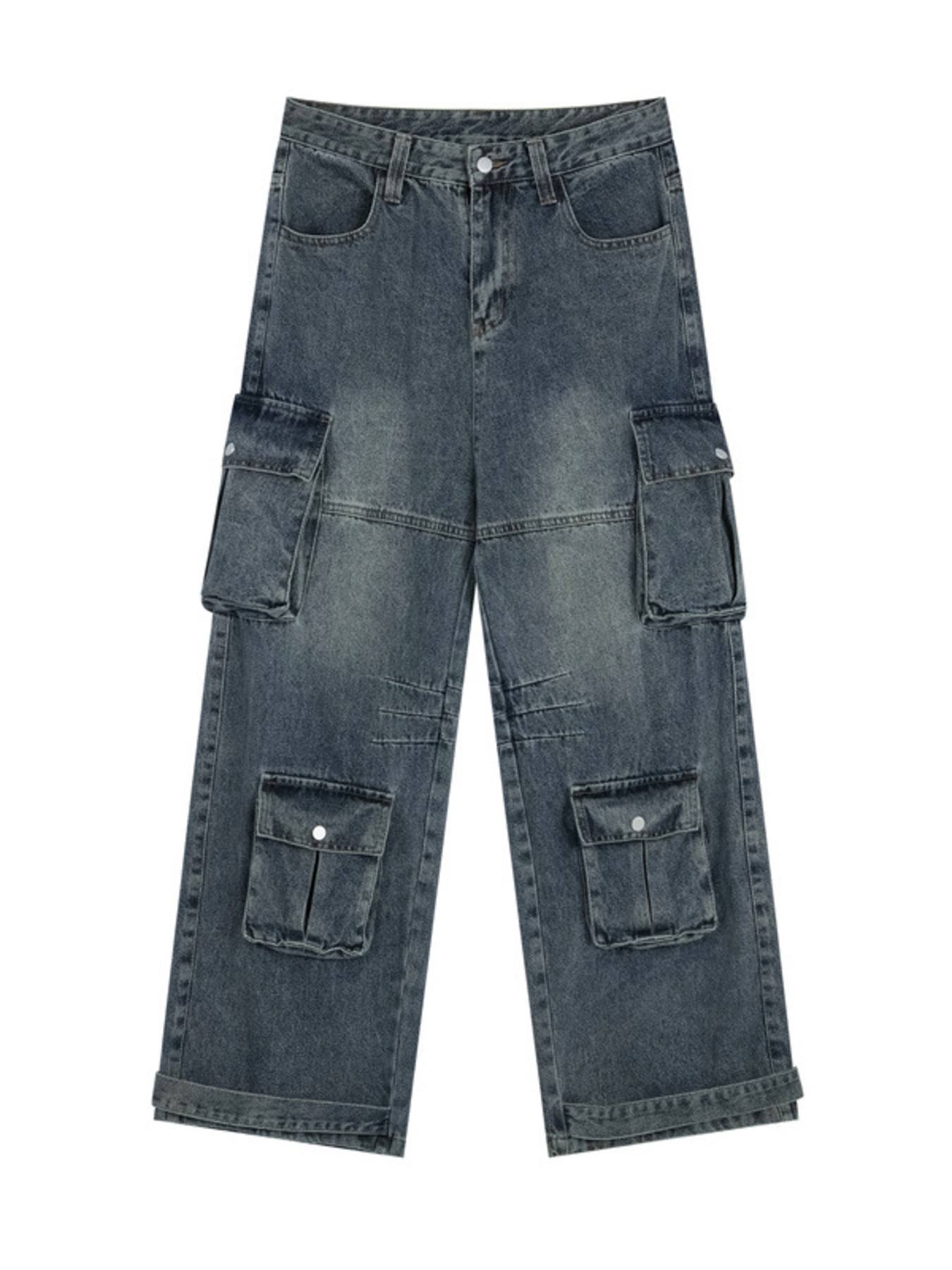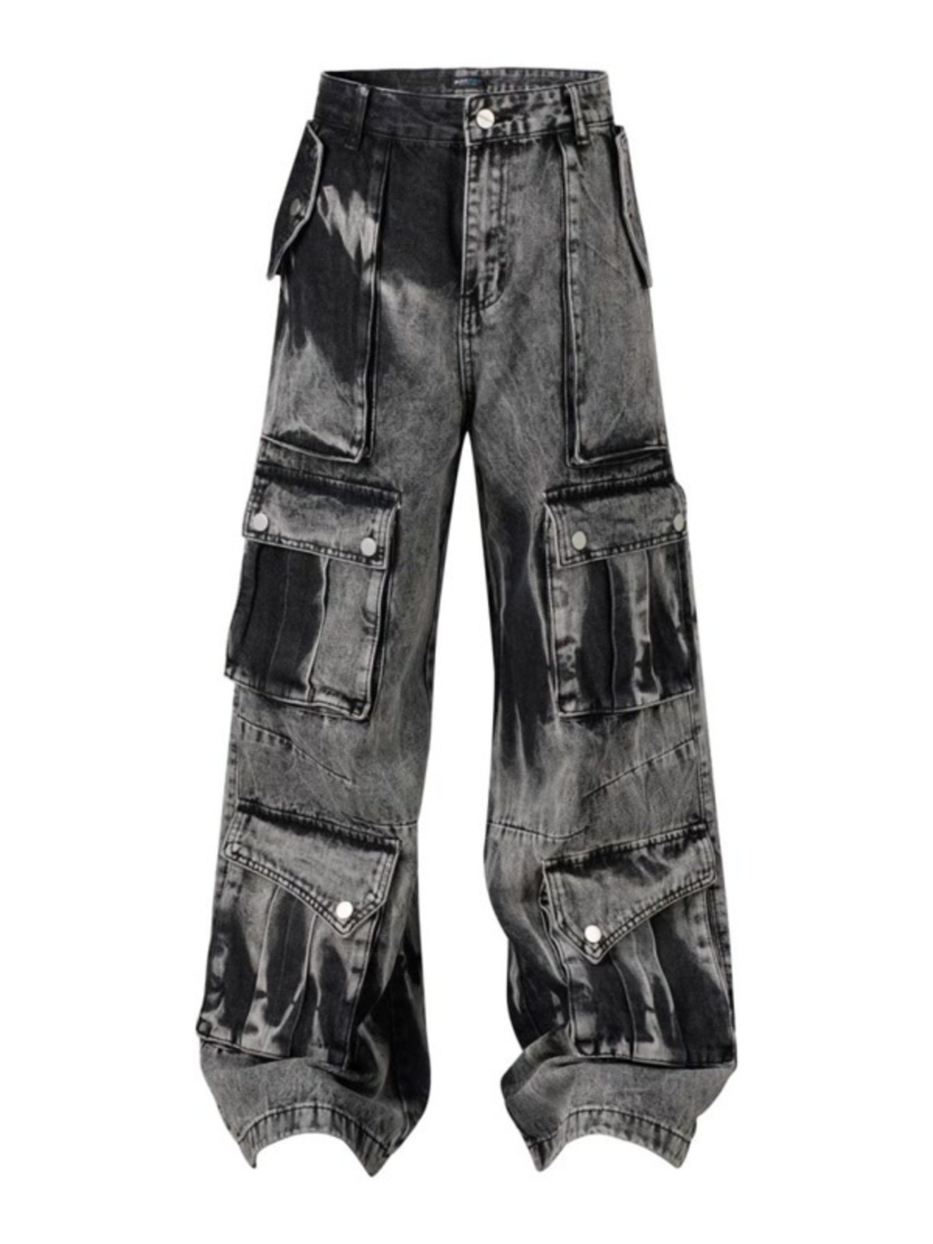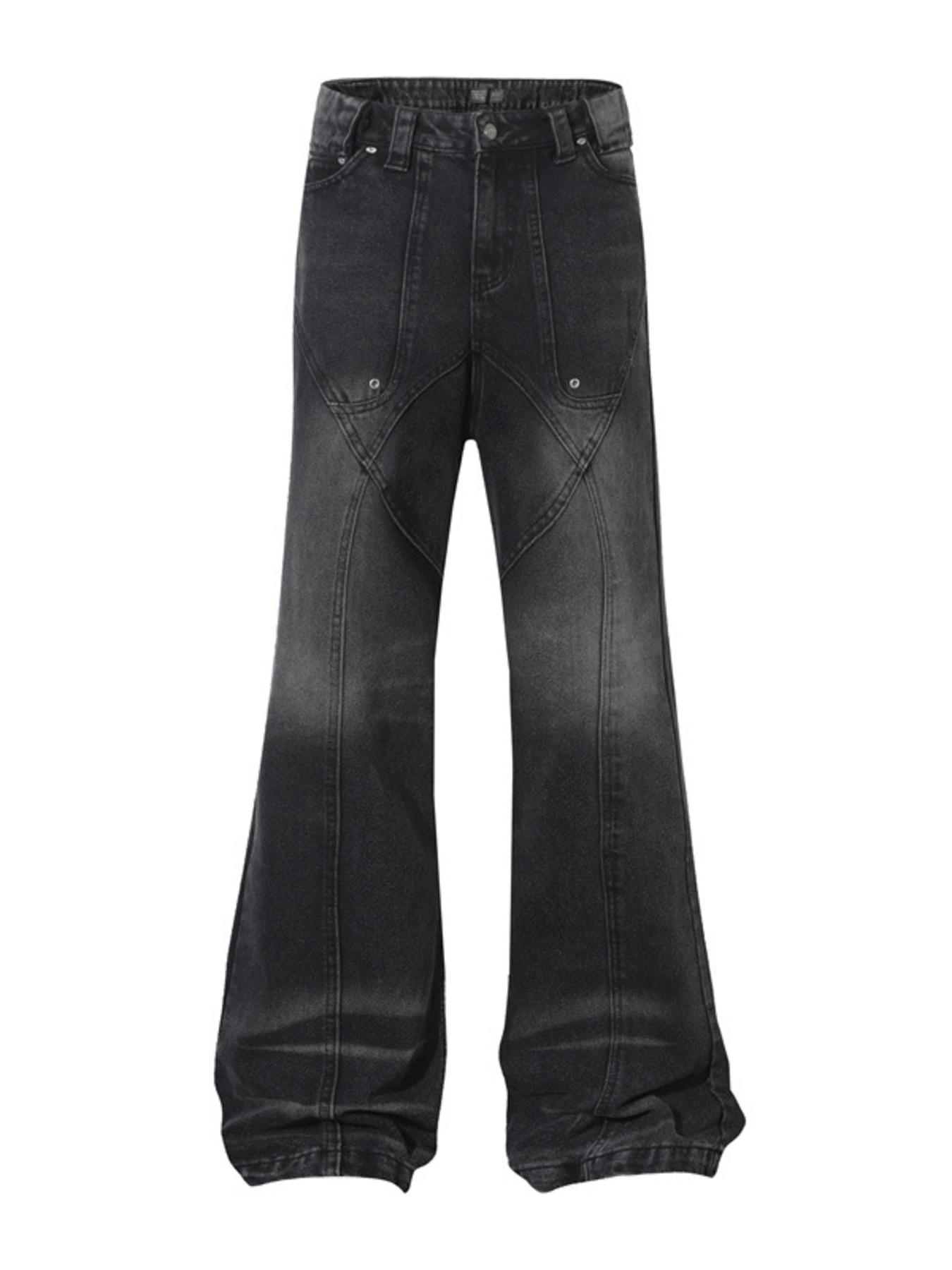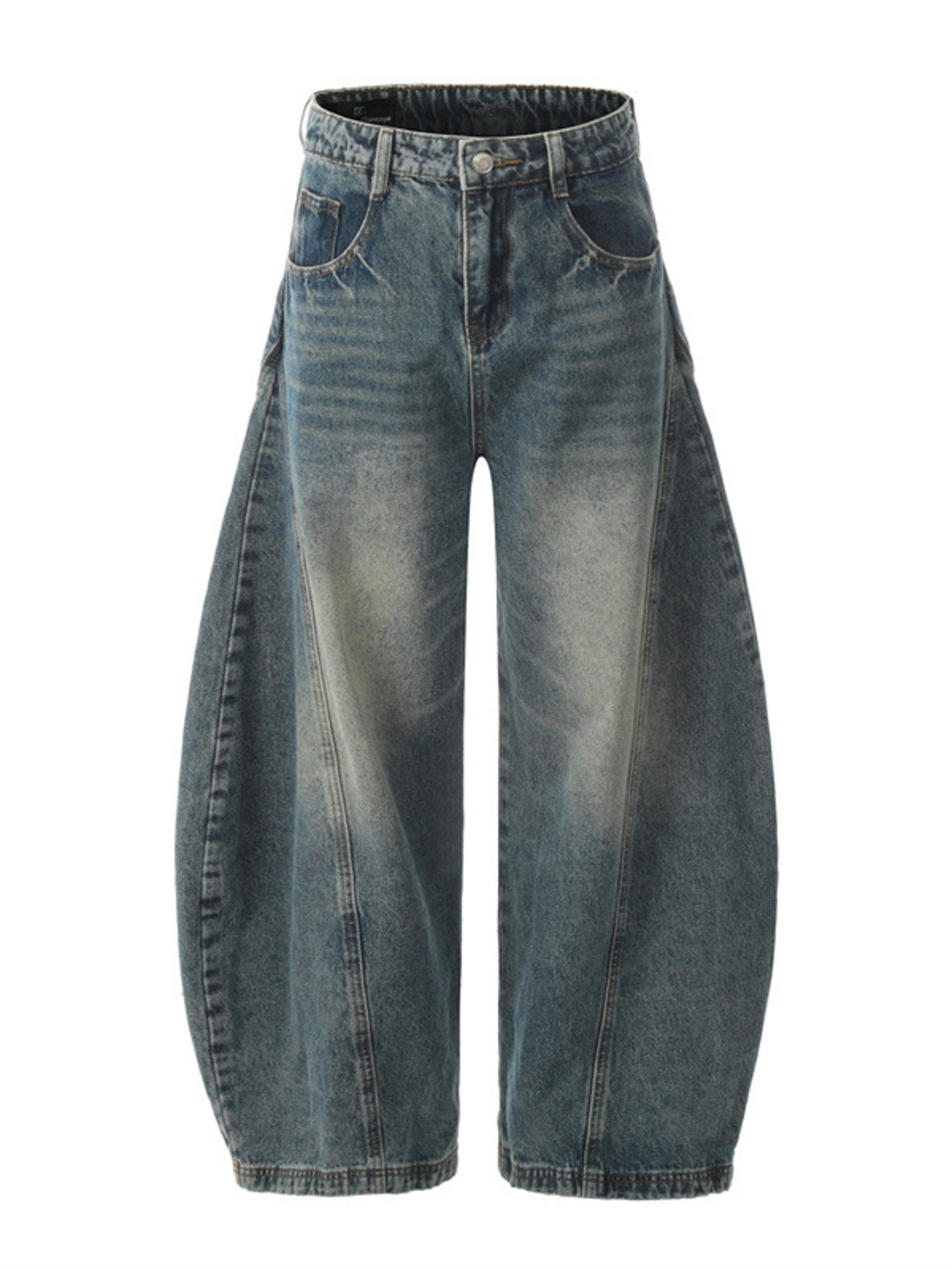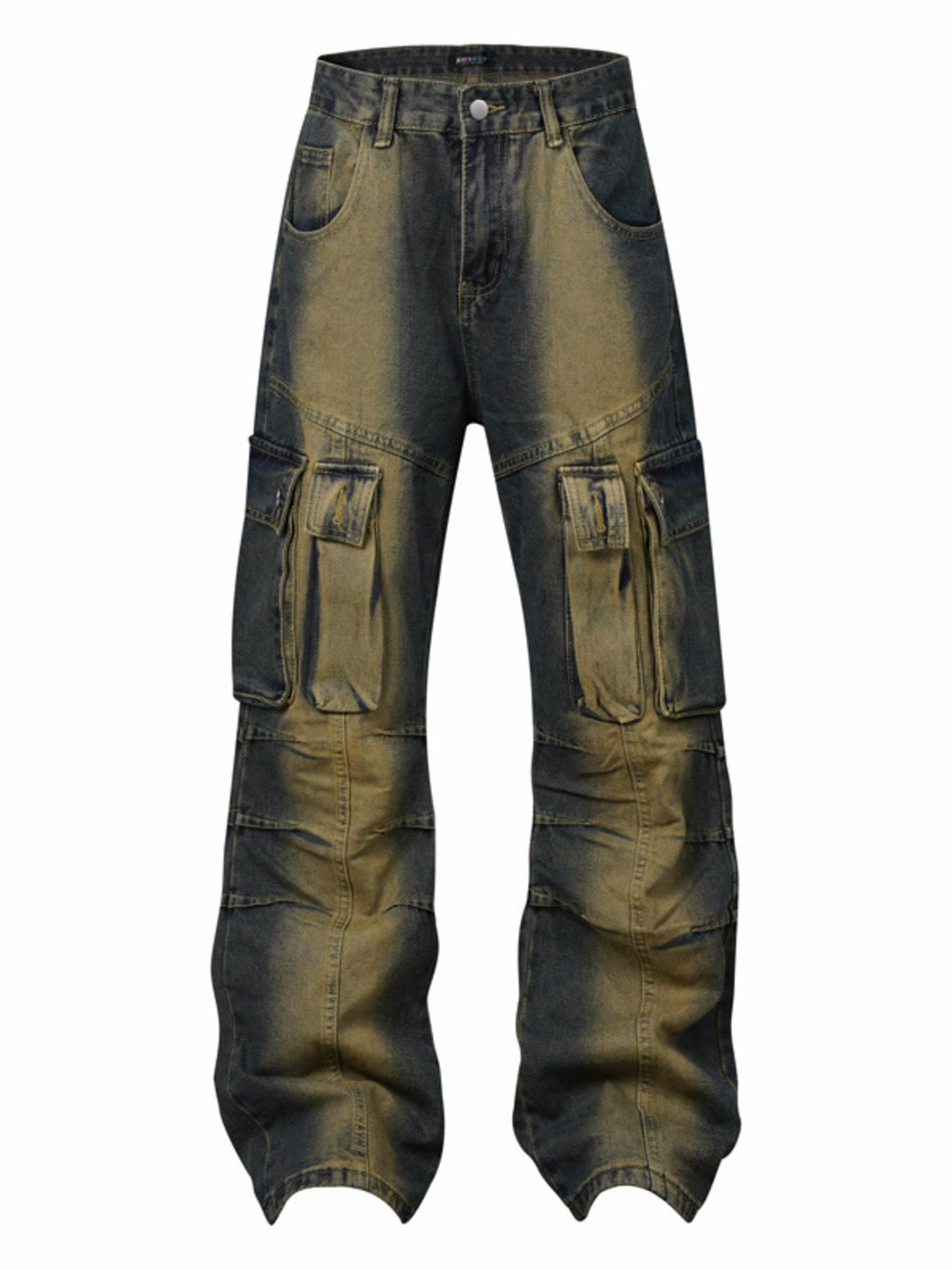 Men's Distressed Wide Leg Vintage Wash Jeans