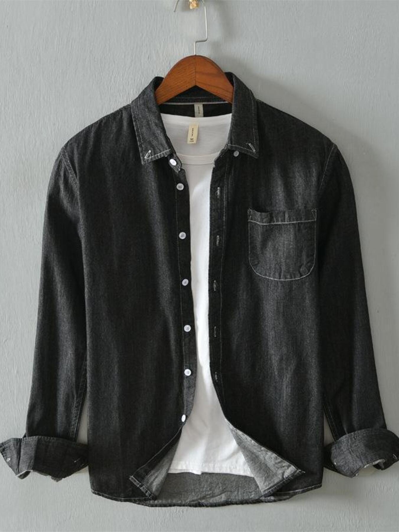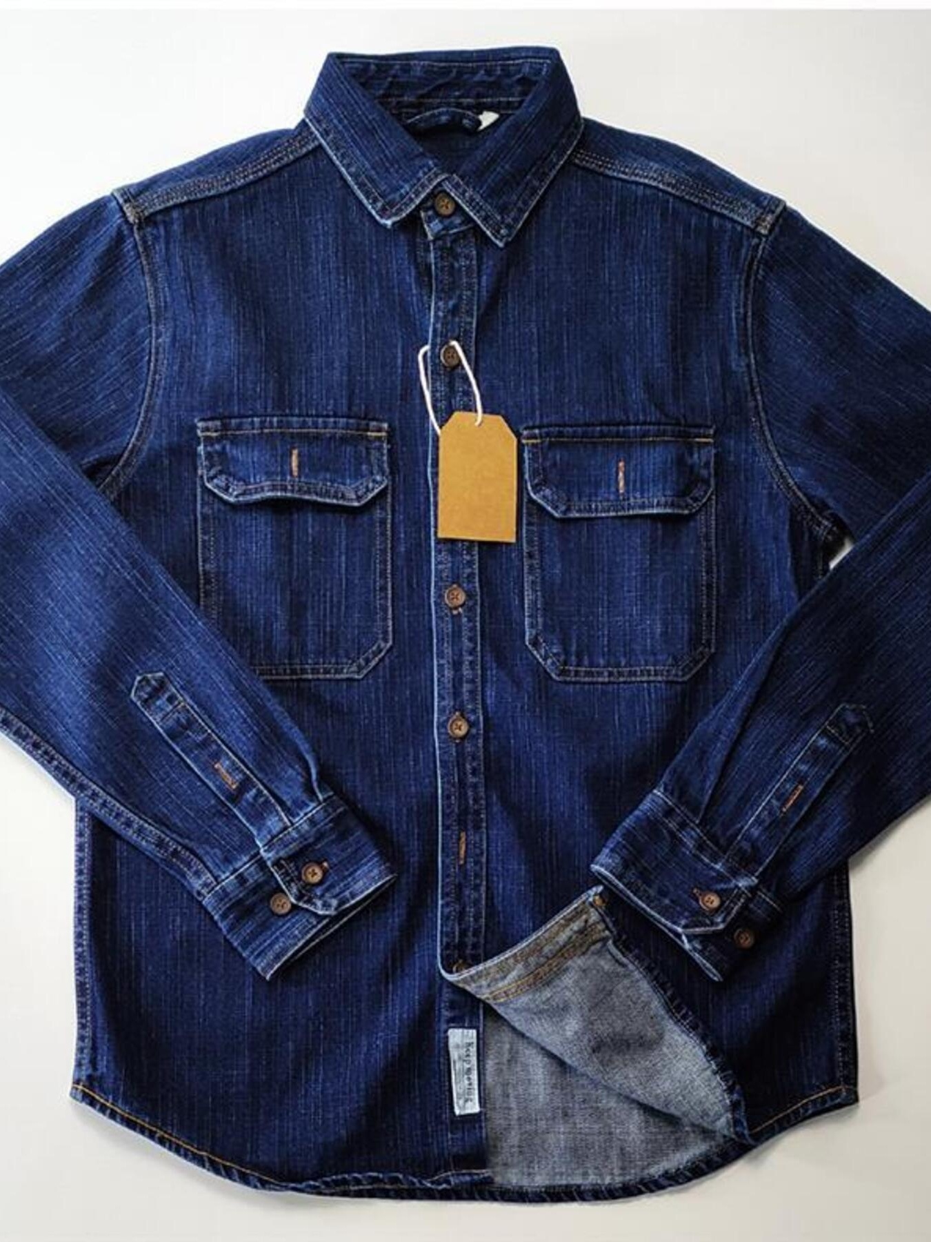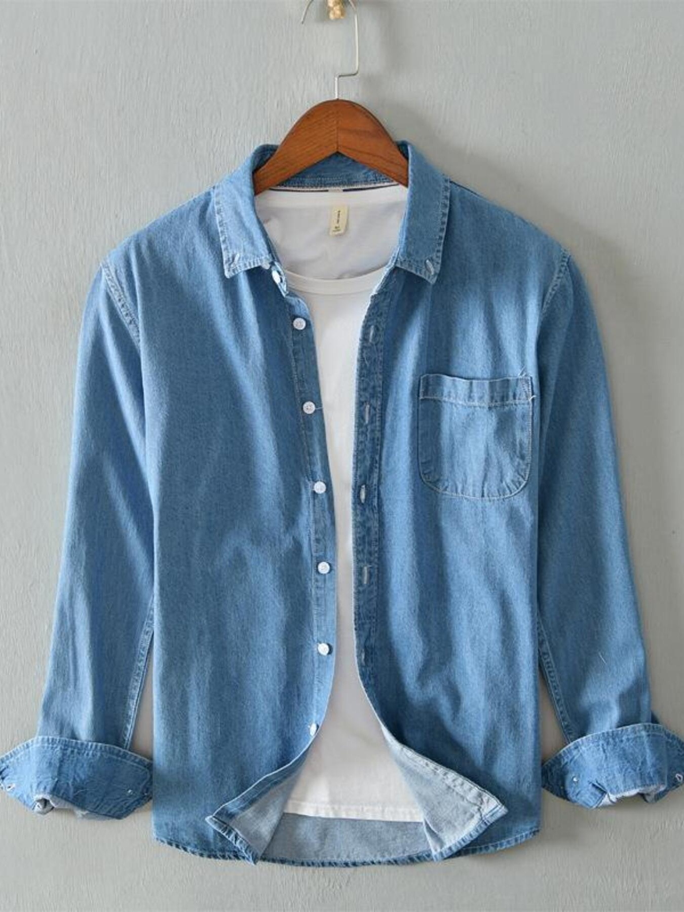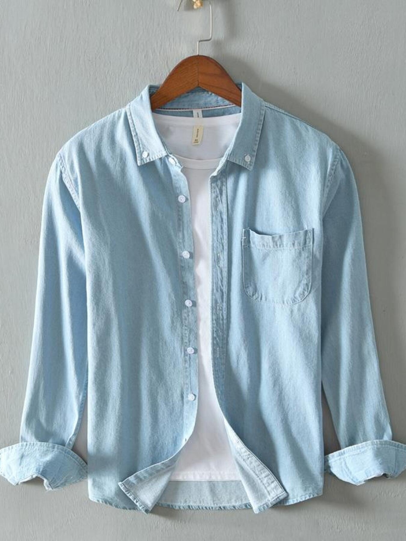 Men's Plus Size Button Up Long Sleeve Denim Shirt