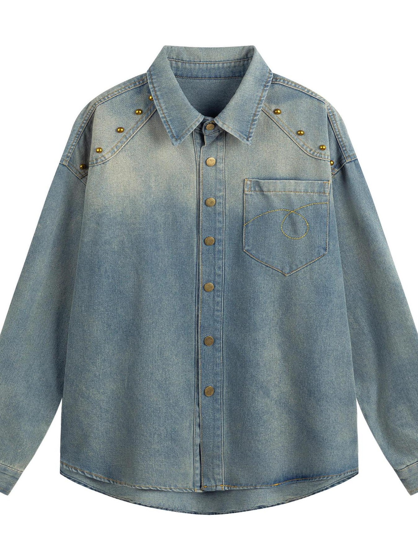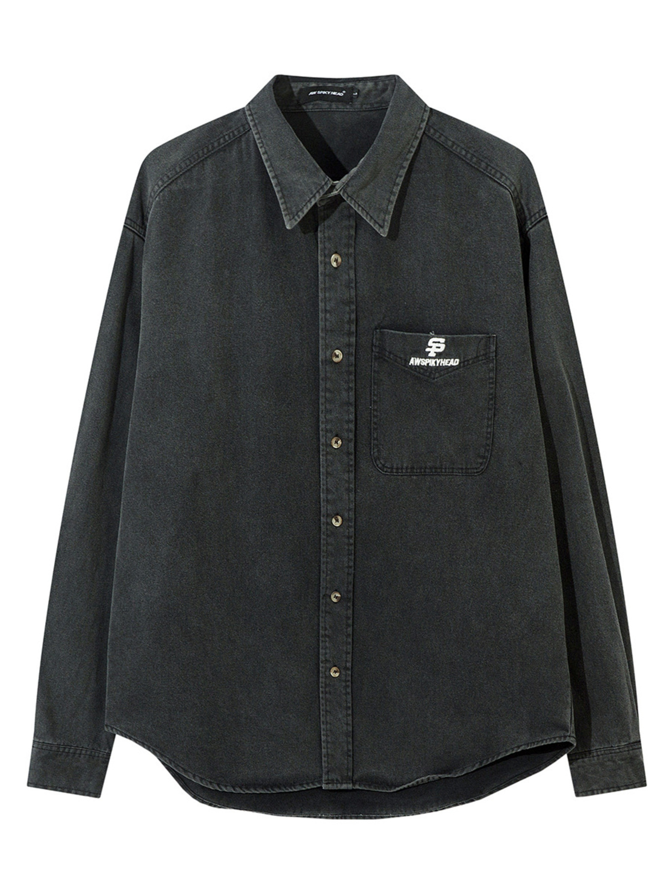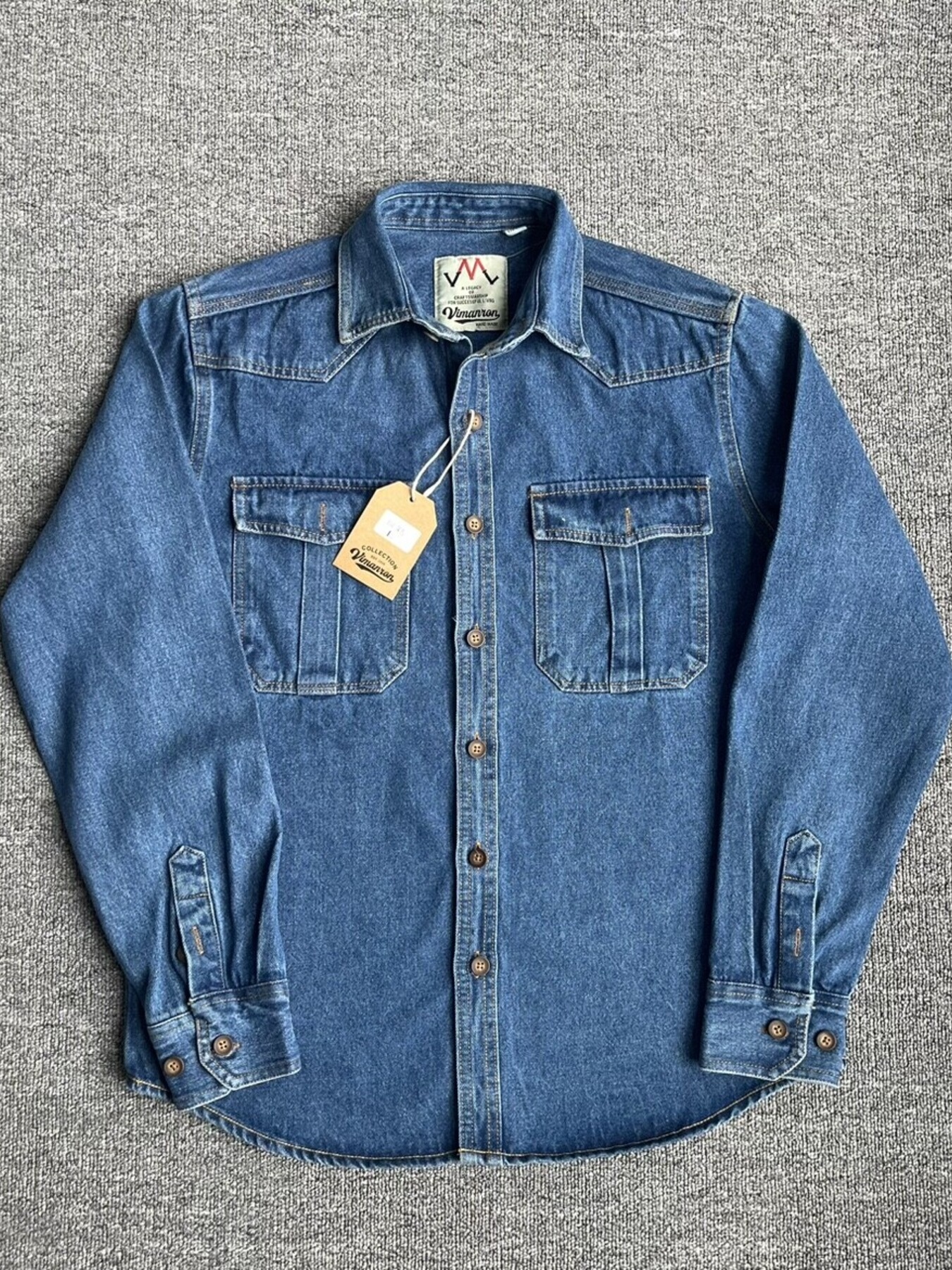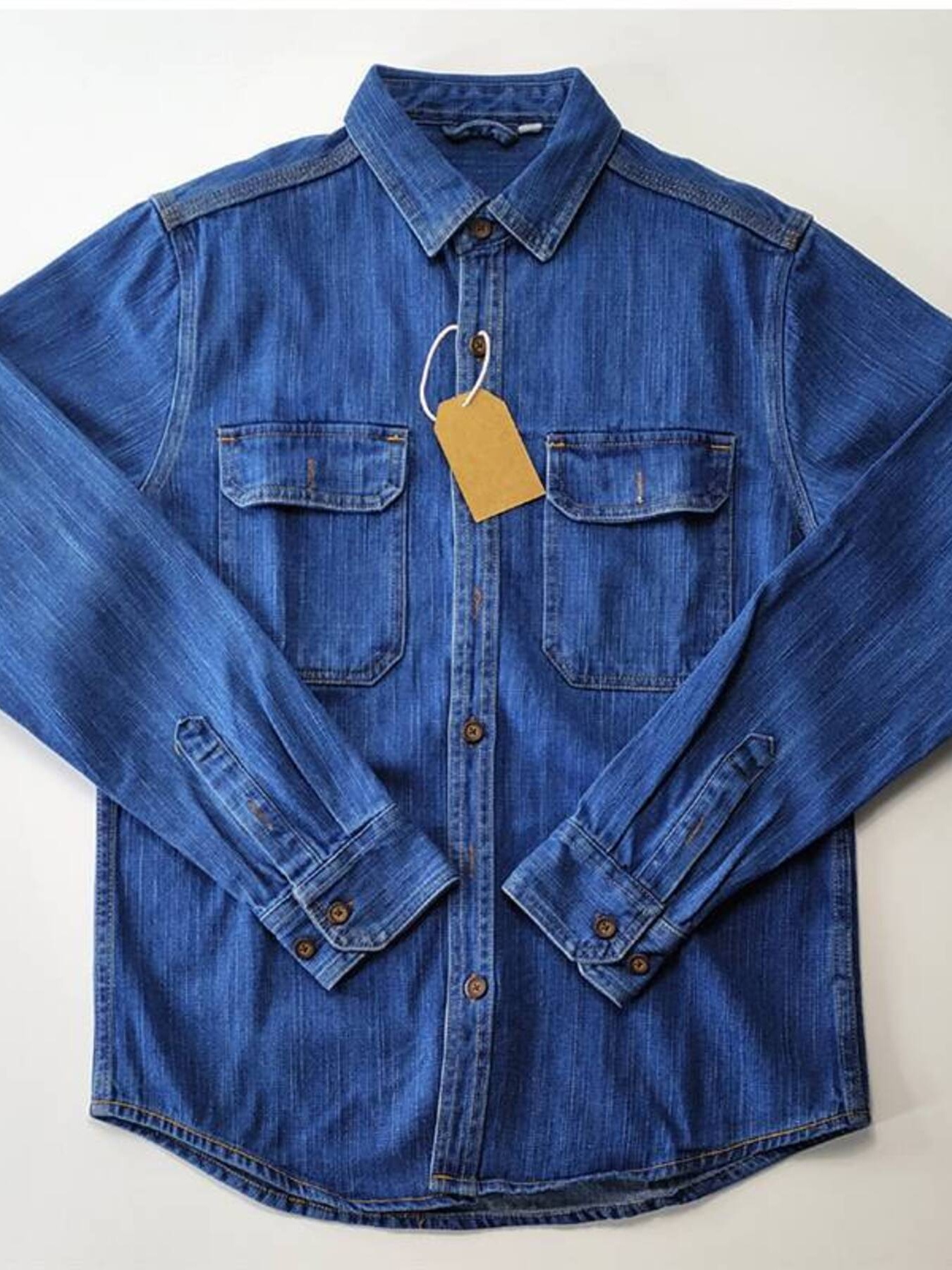 Men's Plus Size Button Up Long Sleeve Denim Shirt