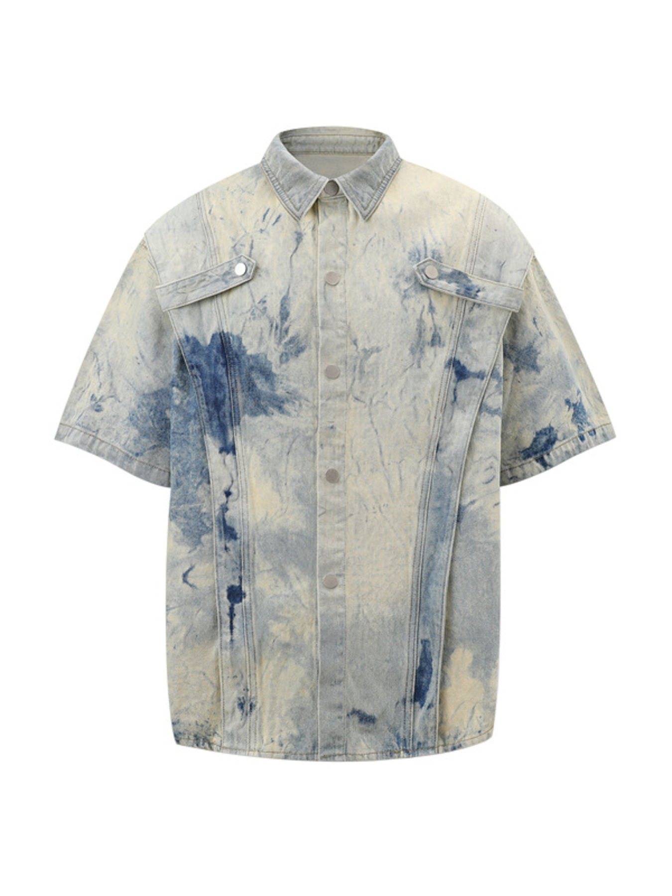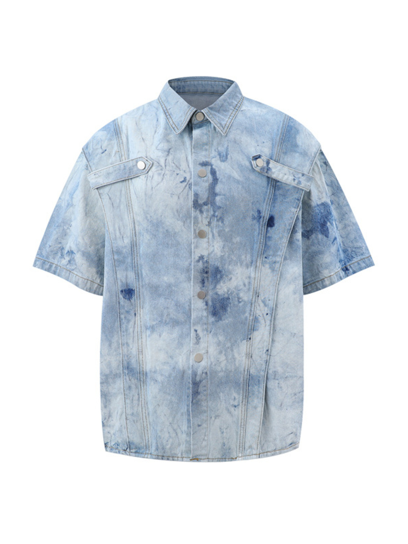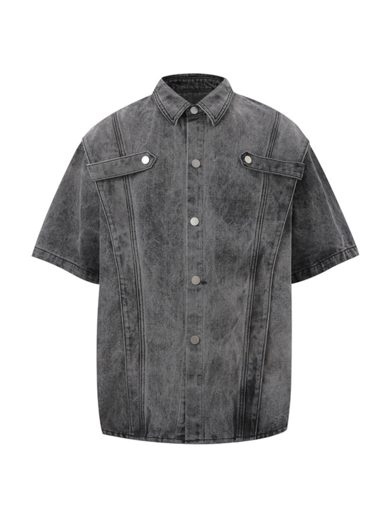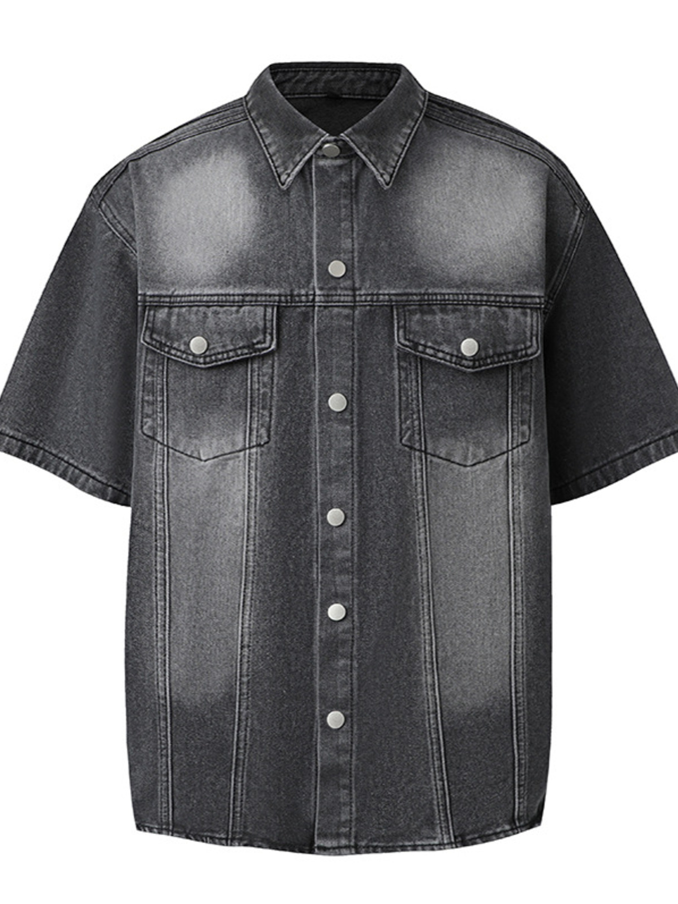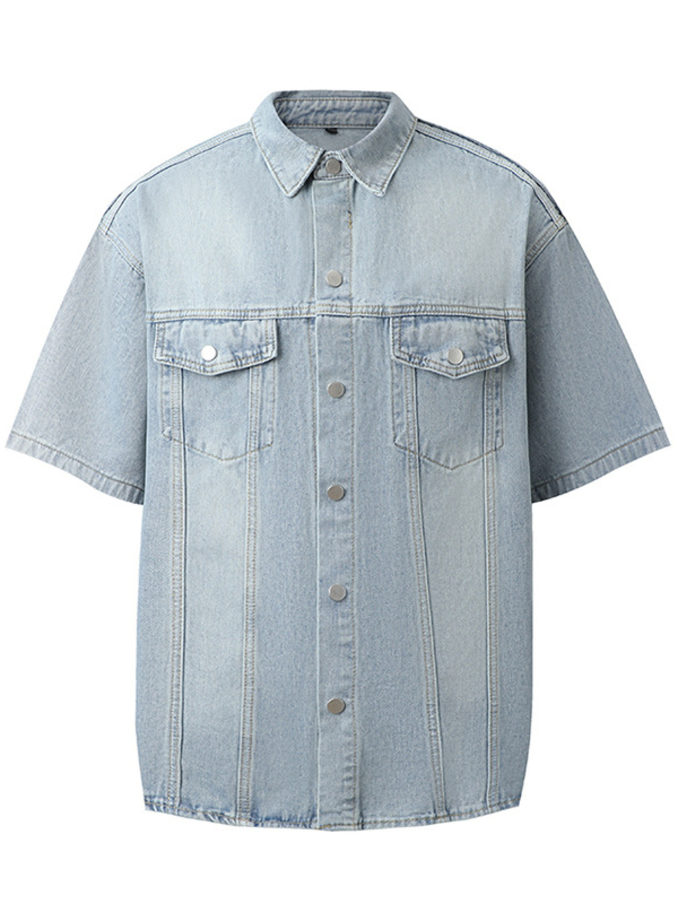 Men's Plus Size Button Up Short Sleeve Denim Shirt