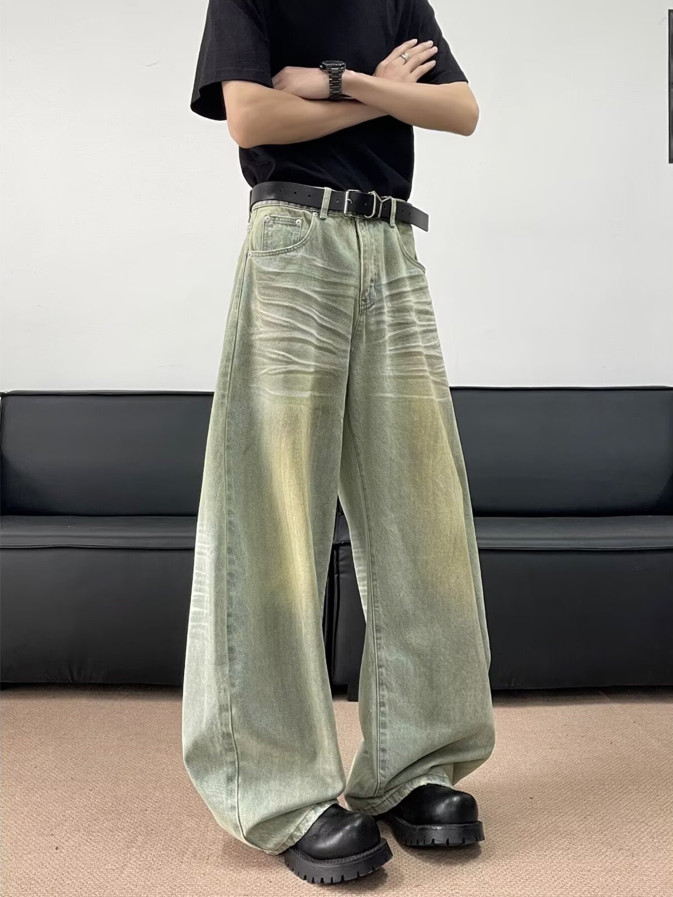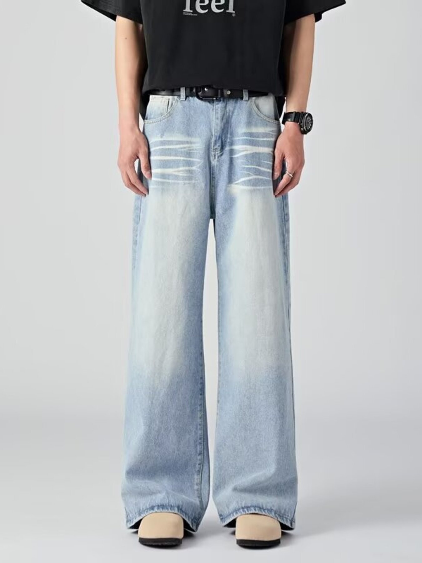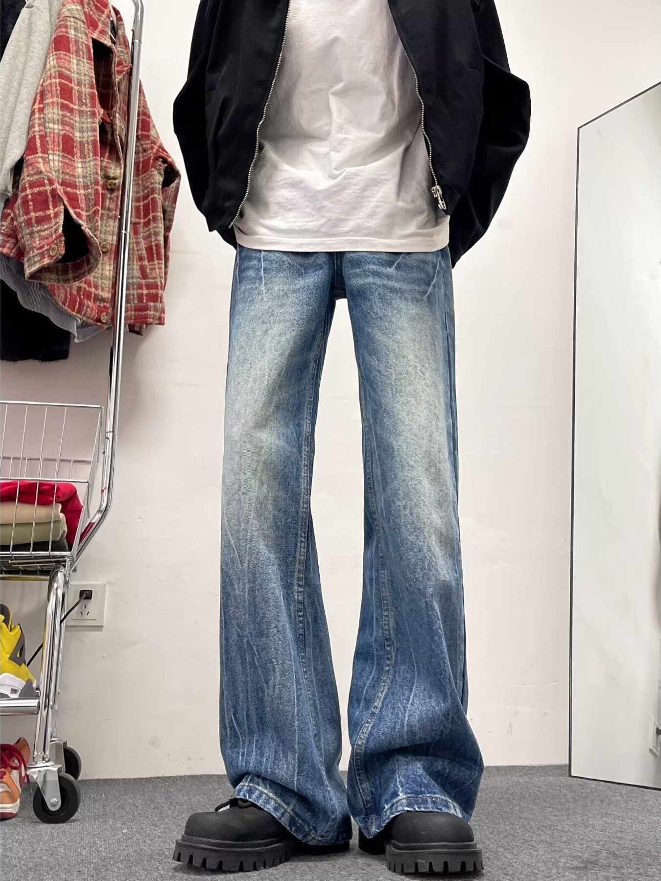 Men's Full Size Vintage Wash Wide Leg Jeans Plus Size