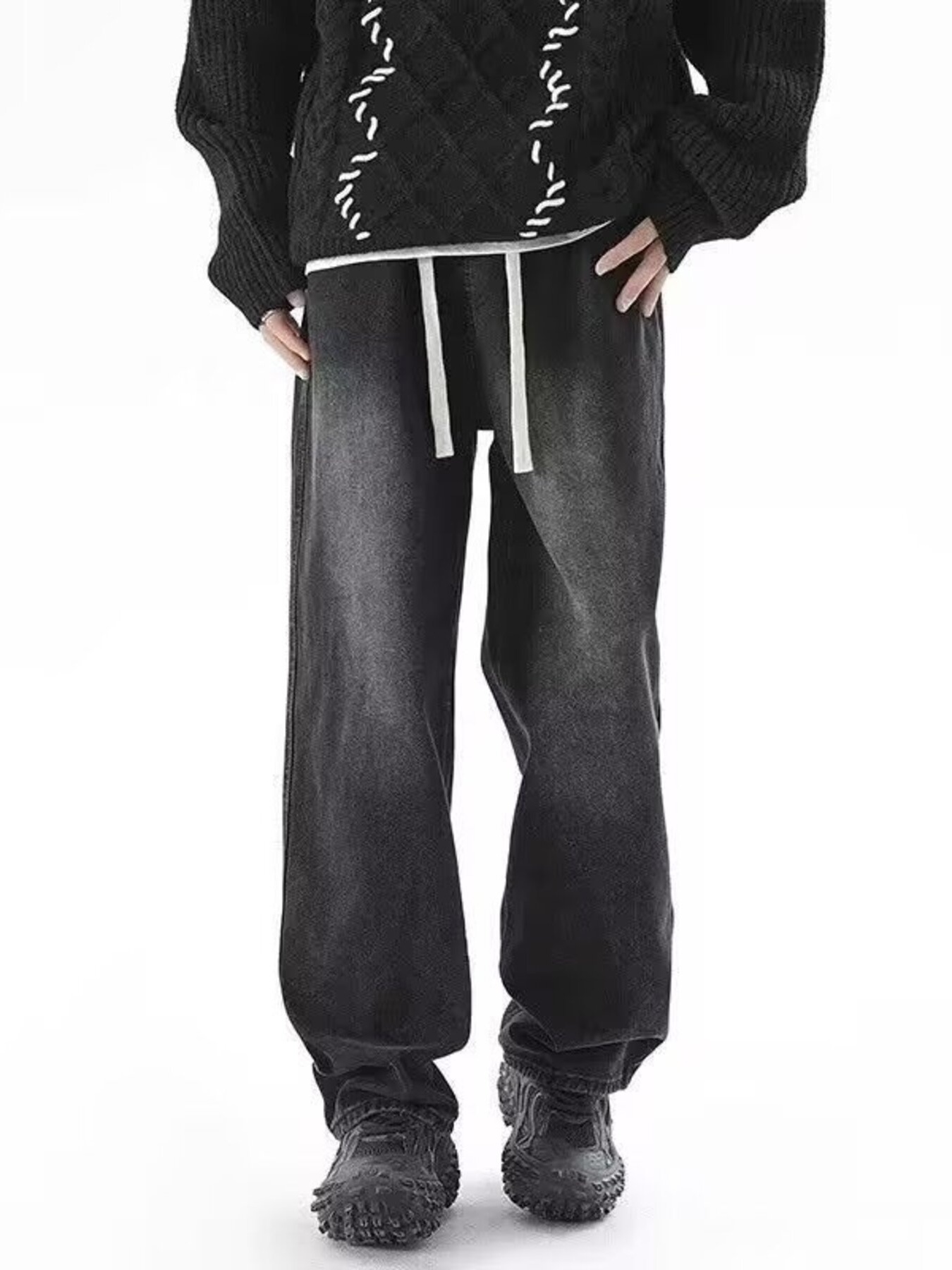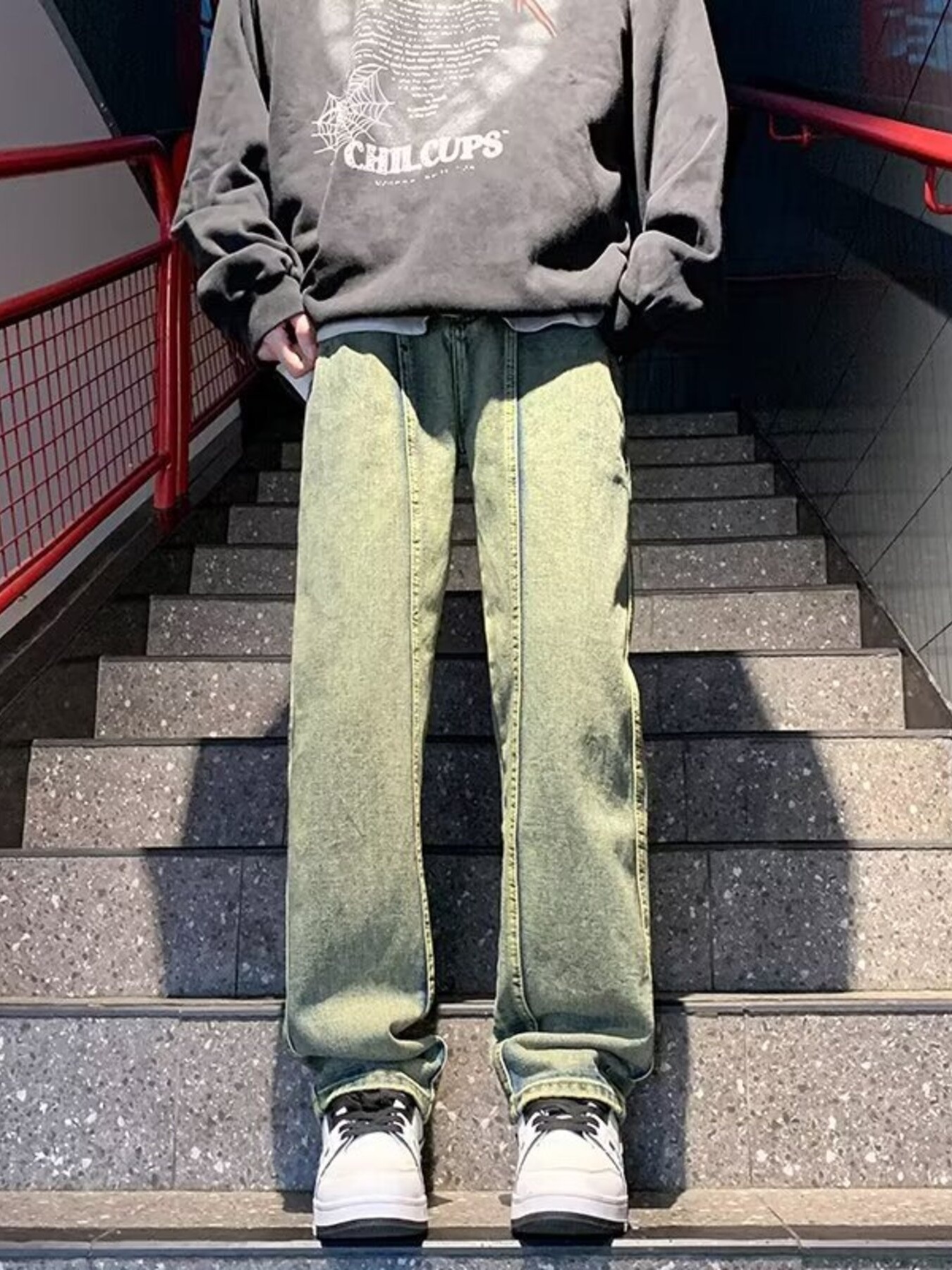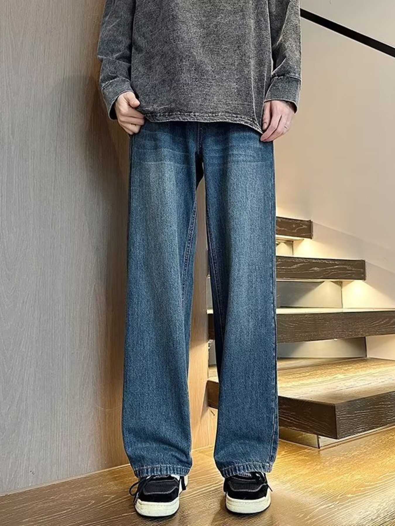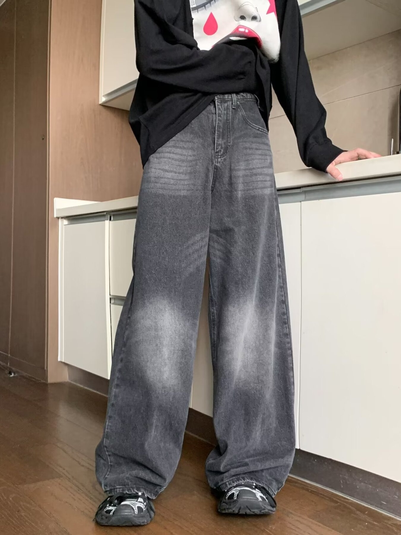 Men's Full Size Vintage Wash Wide Leg Jeans Plus Size