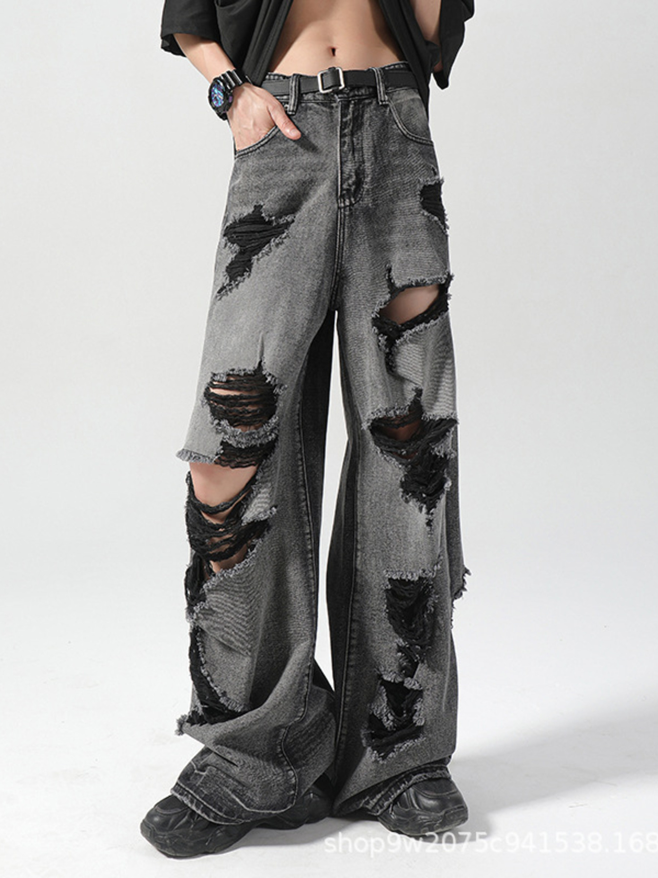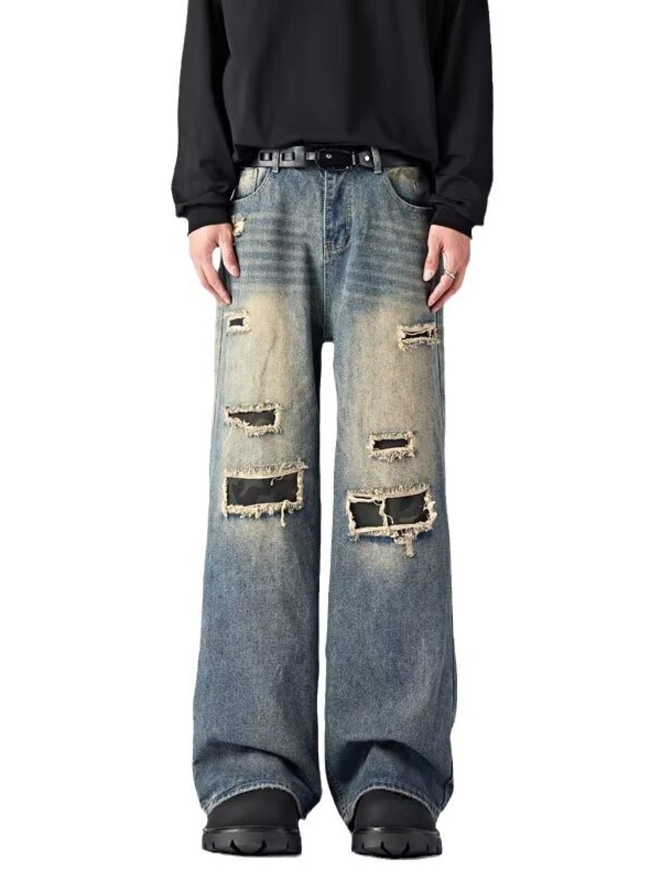 Men's Full Size Distressed Wide Leg Jeans Plus Size