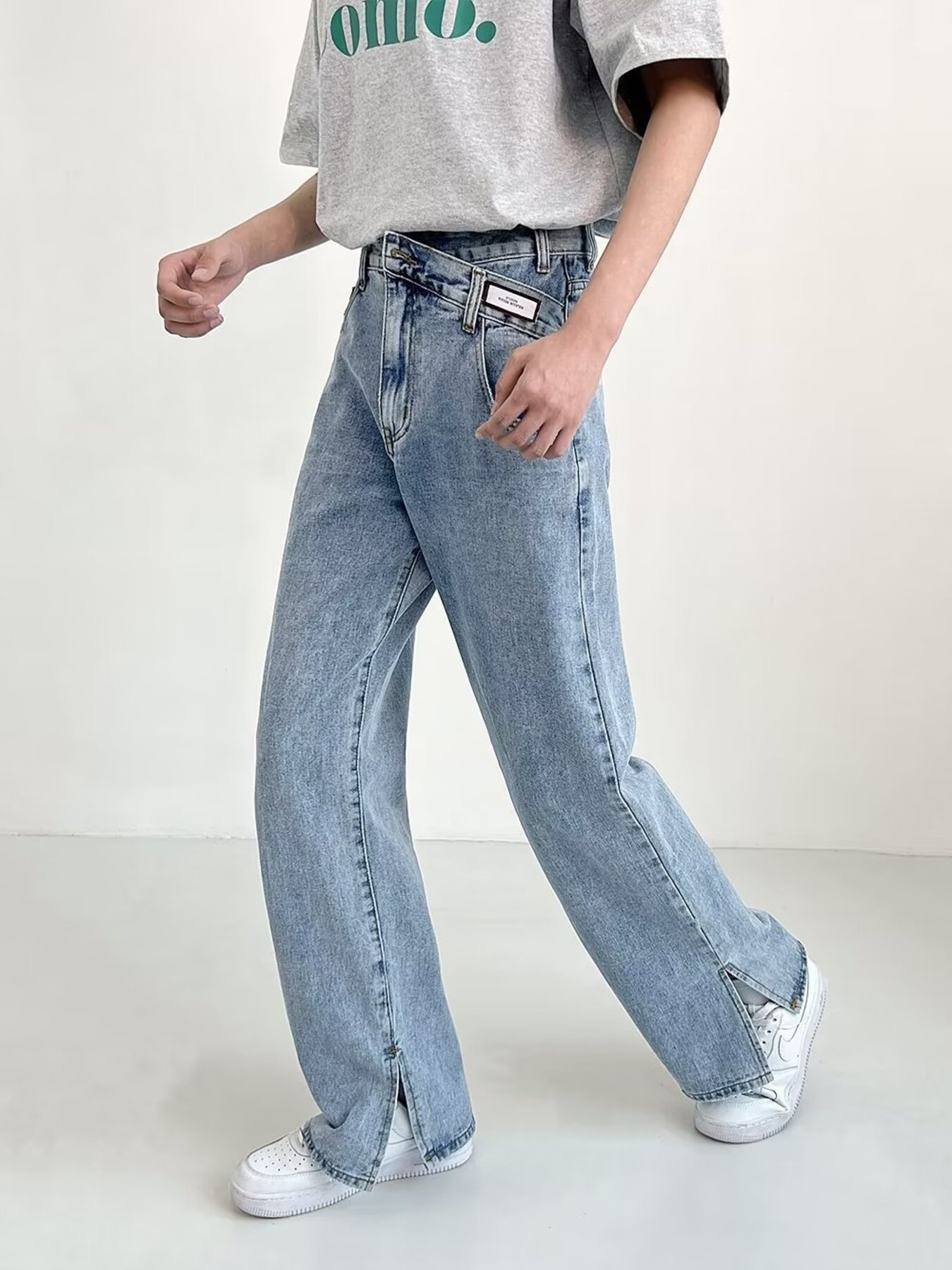 Men's Full Size Wash Wide Leg Jeans Plus Size