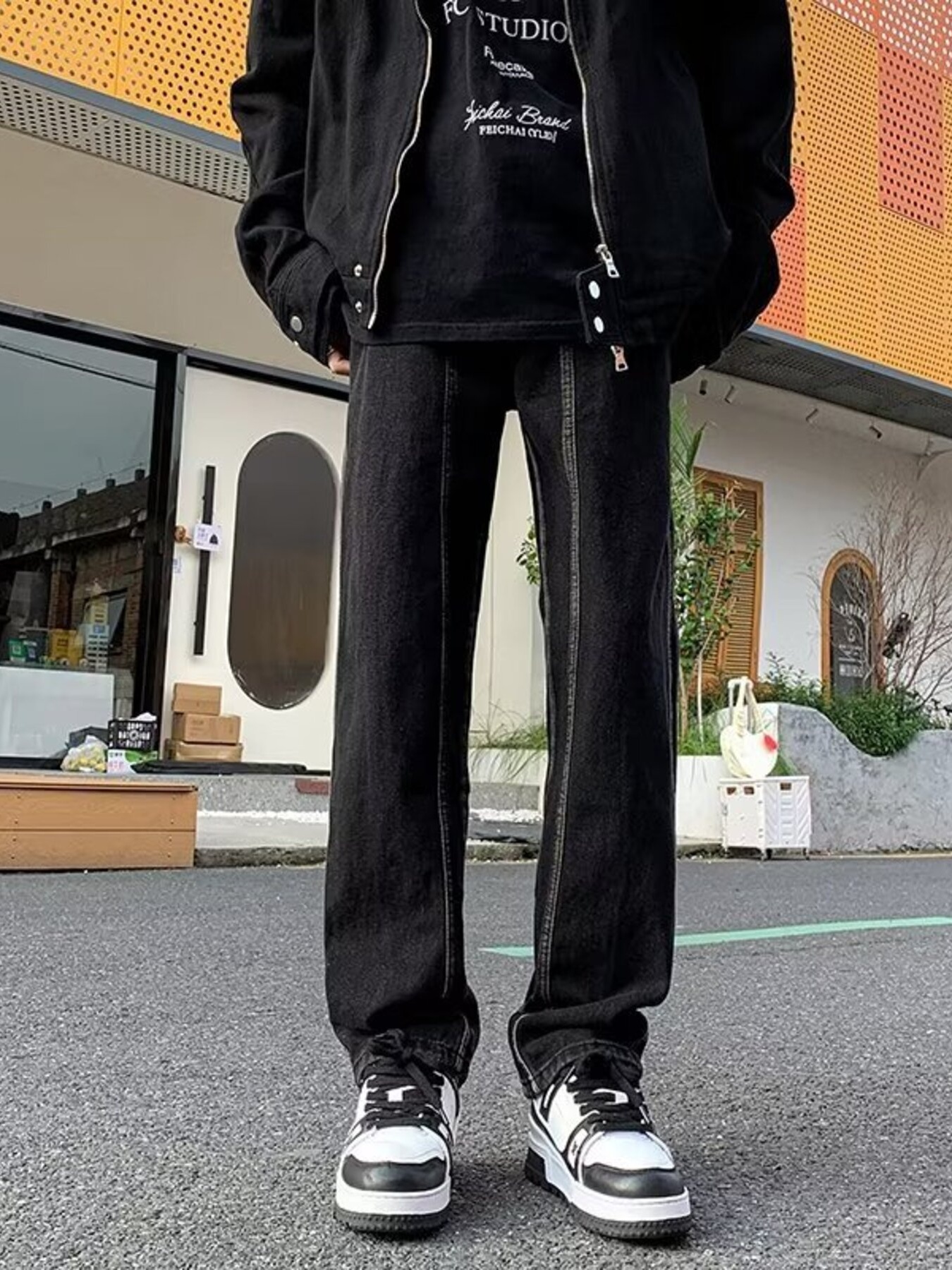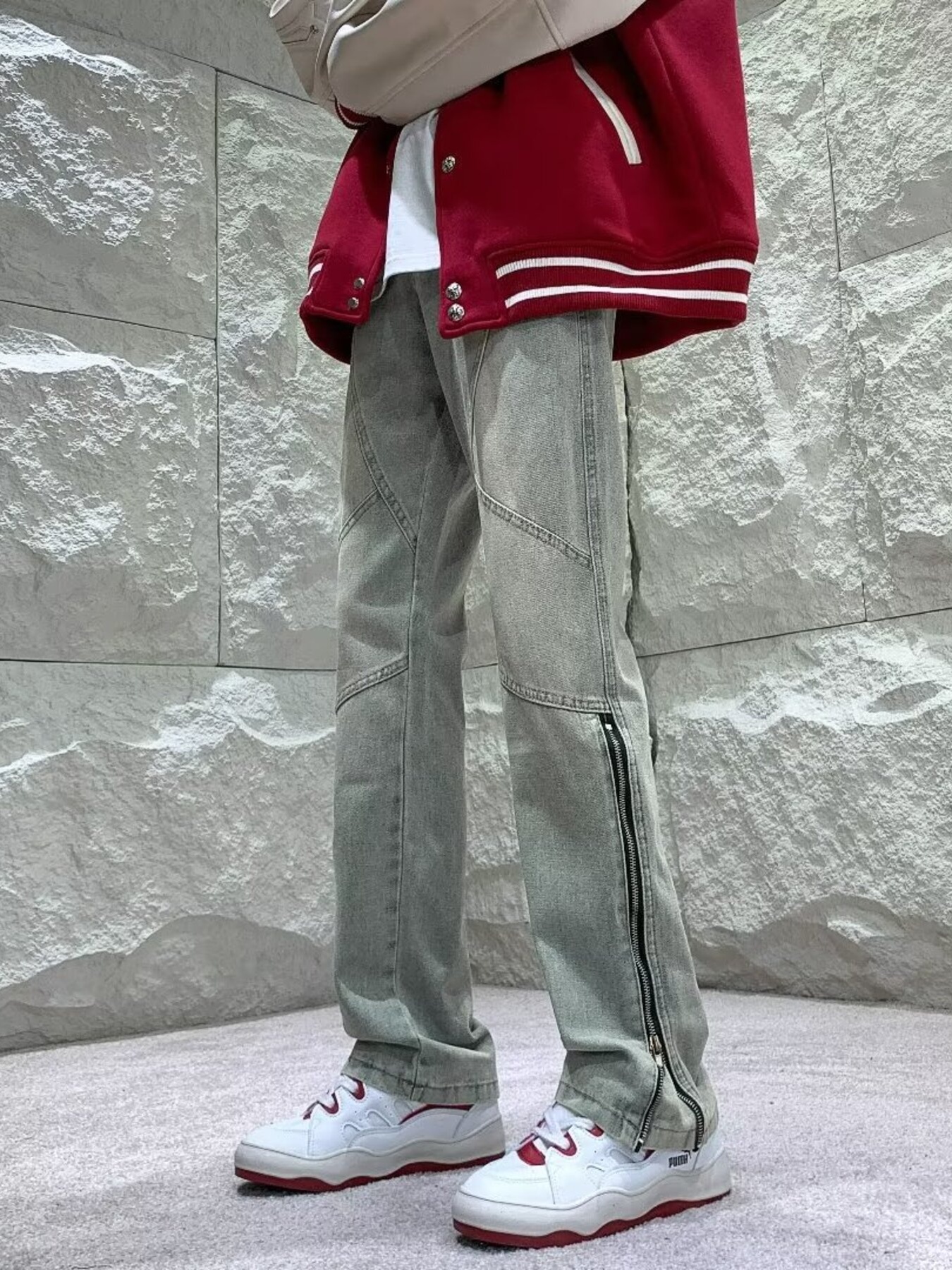 Men's Full Size Zipper Detail Straight Leg Jeans Plus Size