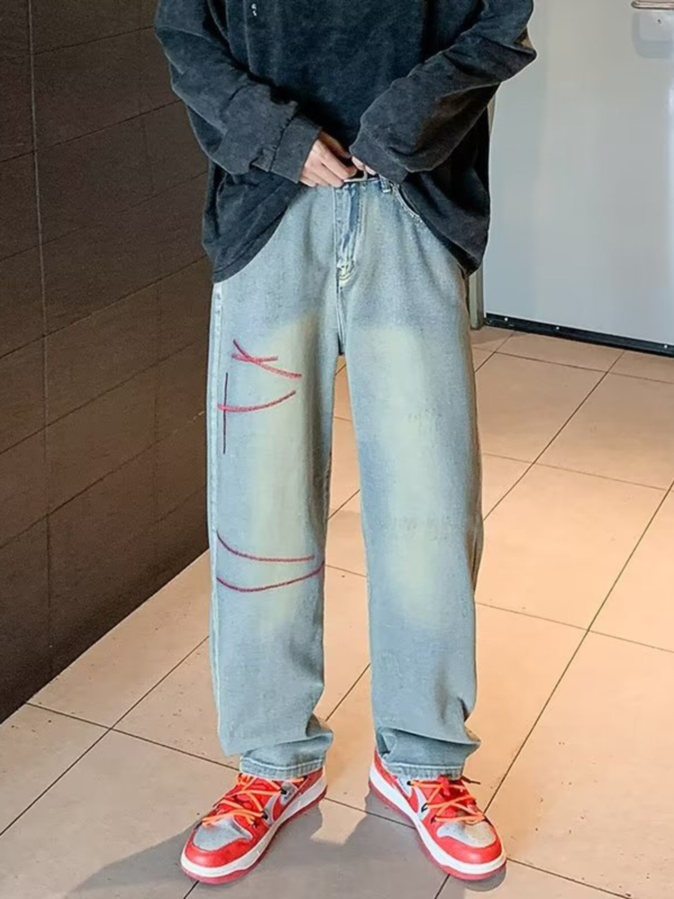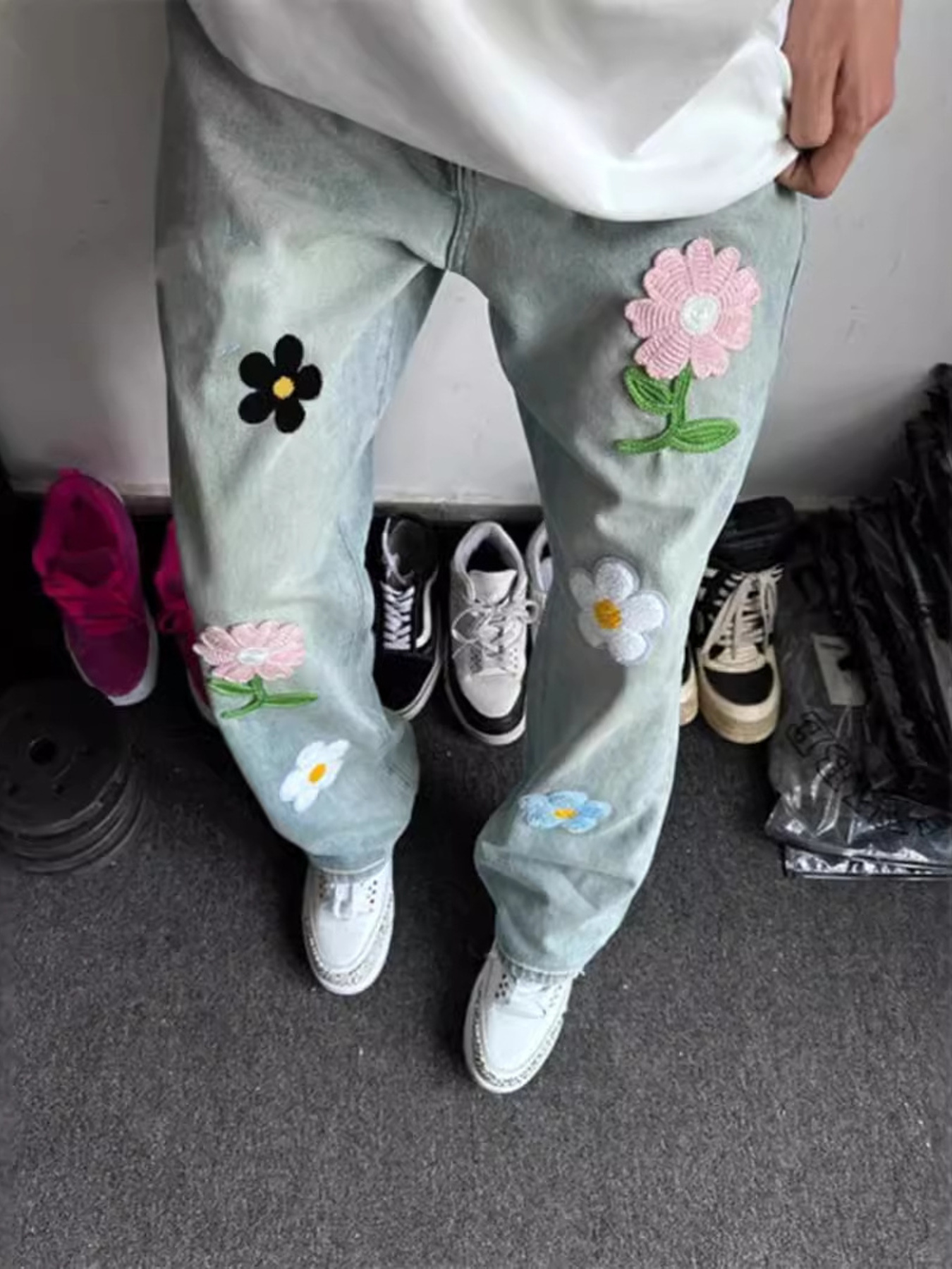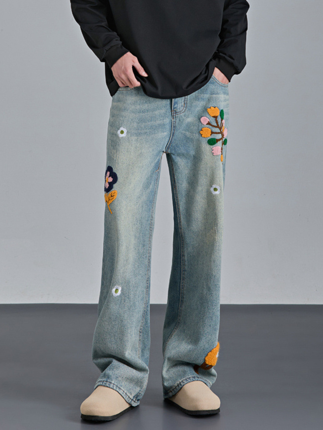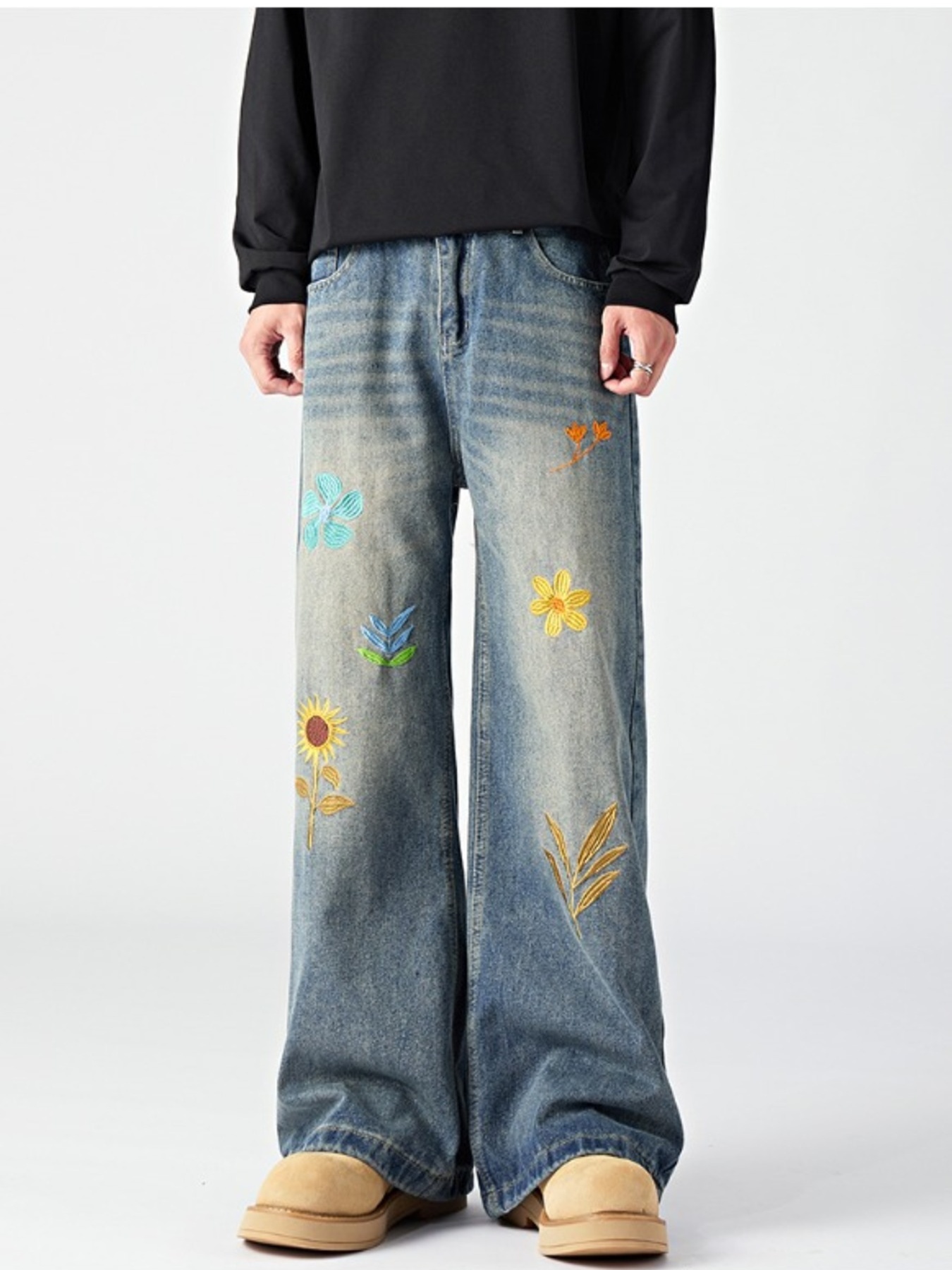 Men's Full Size Floral Wide Leg Jeans Plus Size