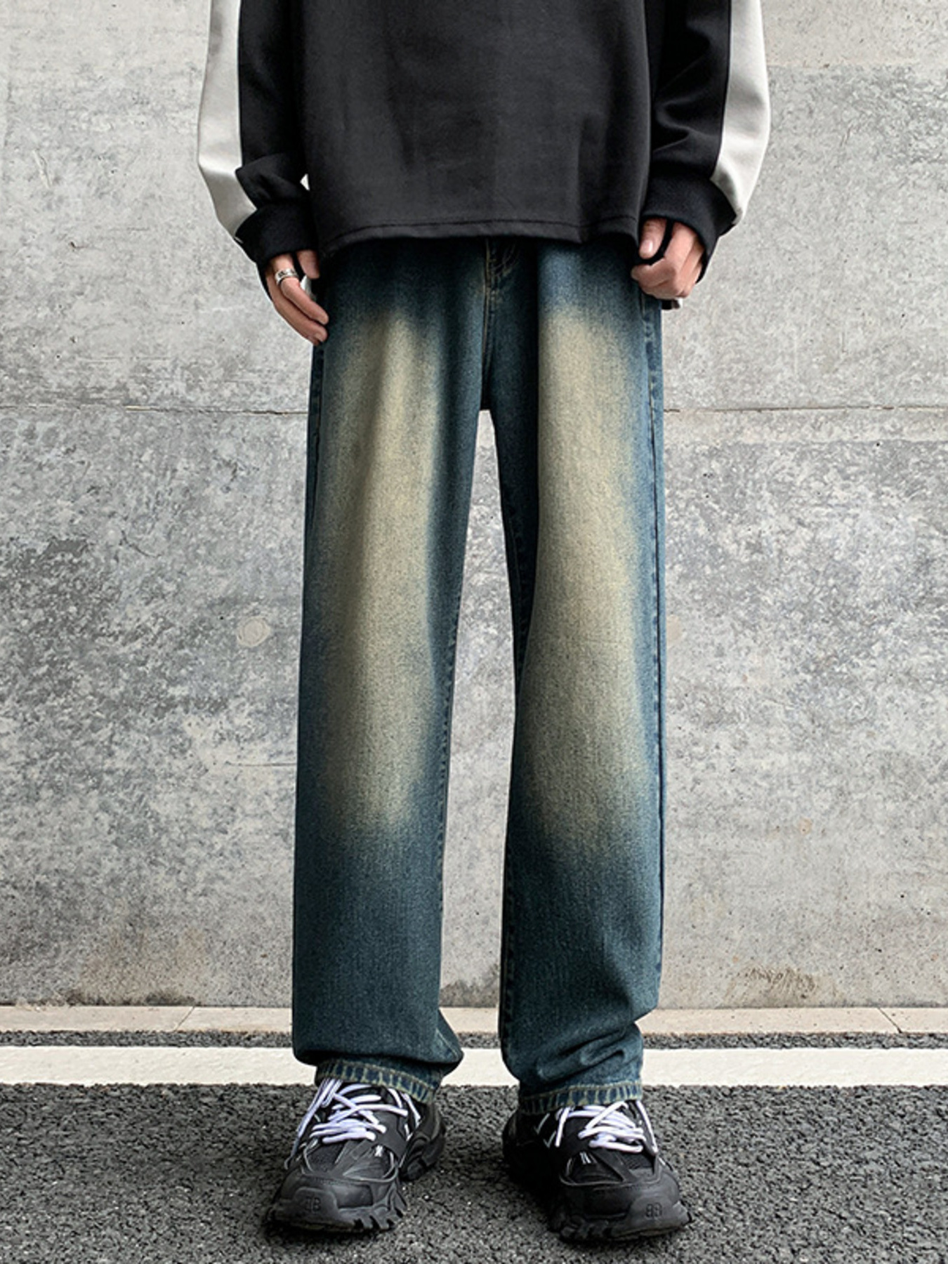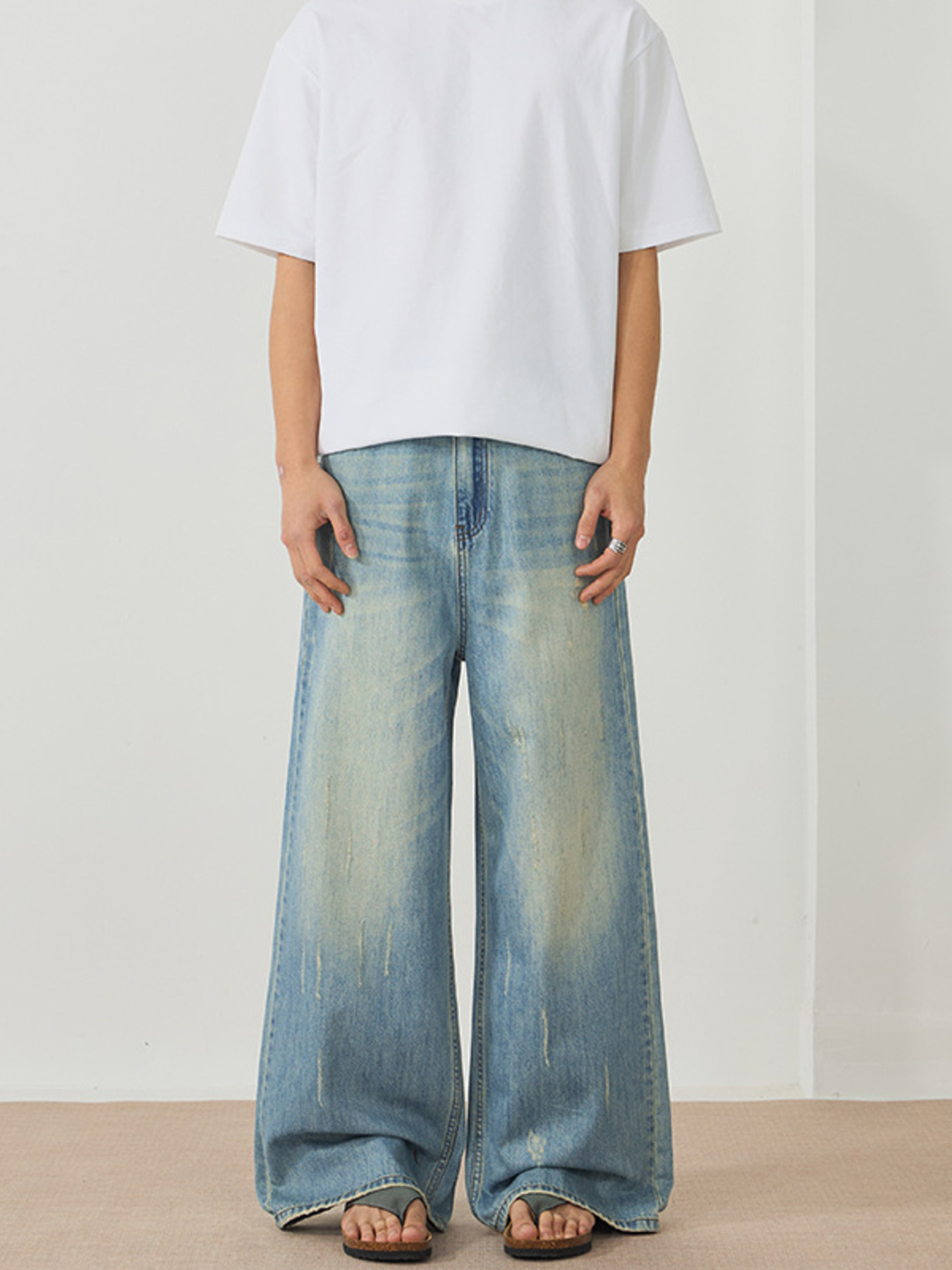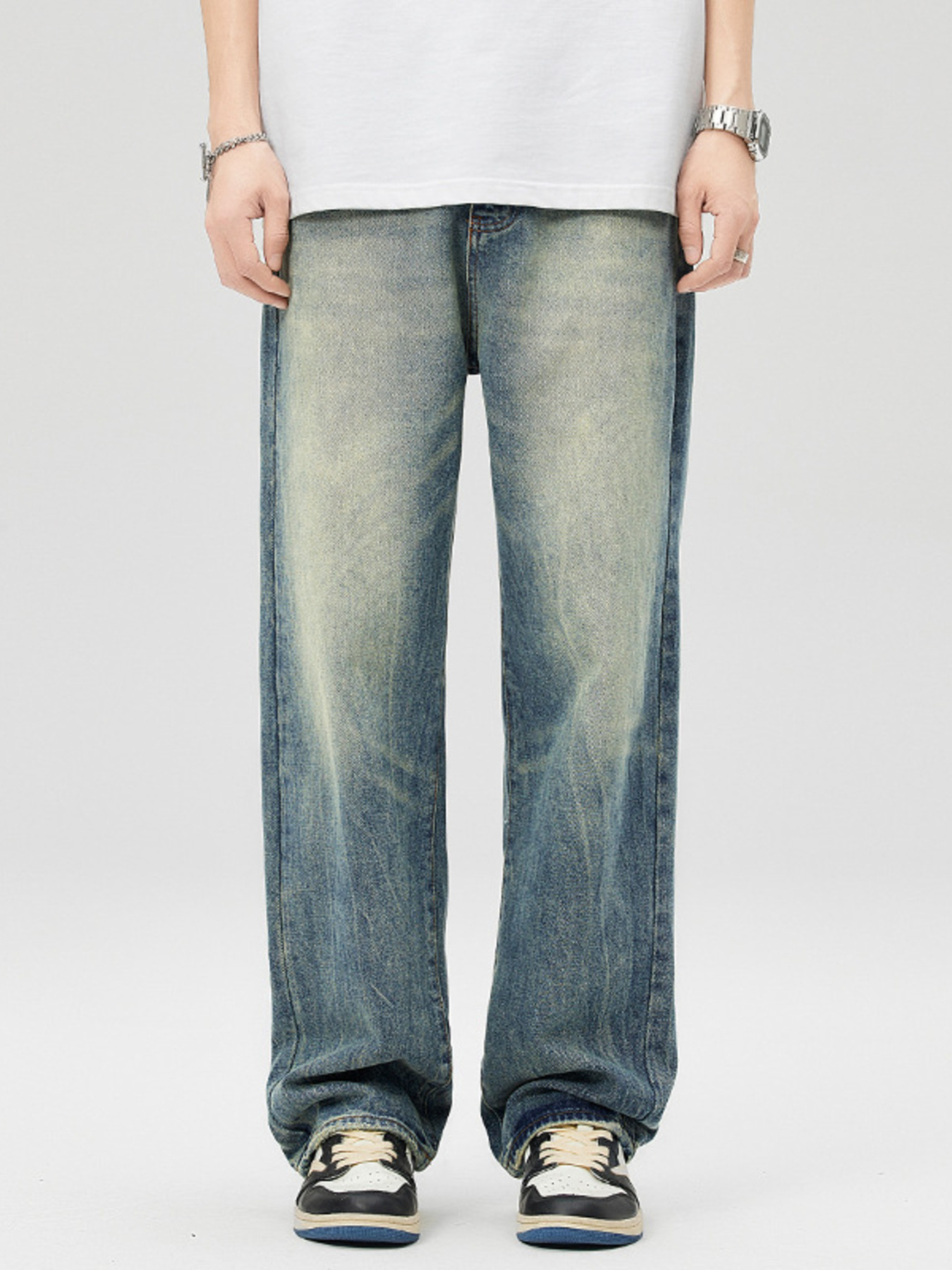 Men's Plus Size Vintage Wash Wide Leg Jeans