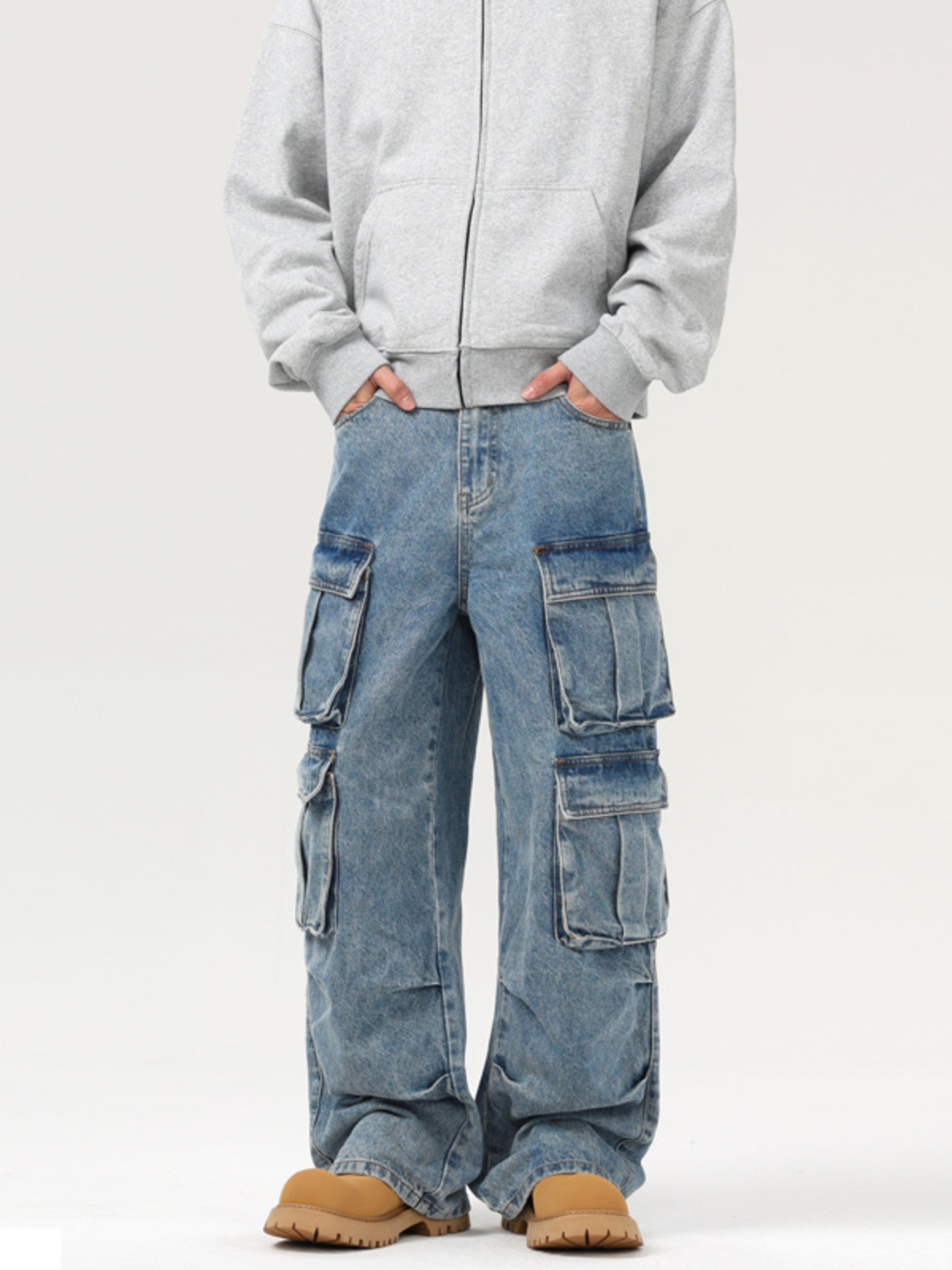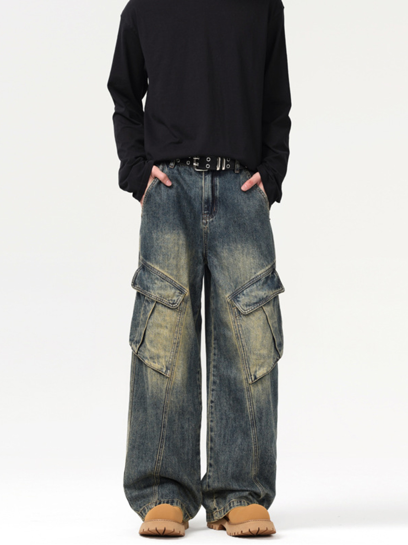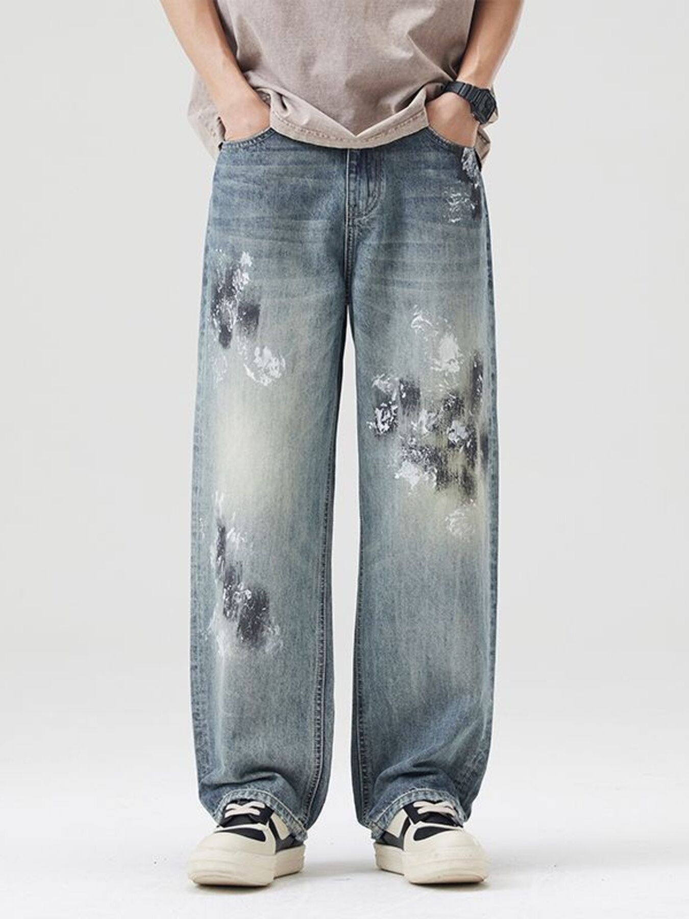 Men's Plus Size Vintage Wash Wide Leg Jeans