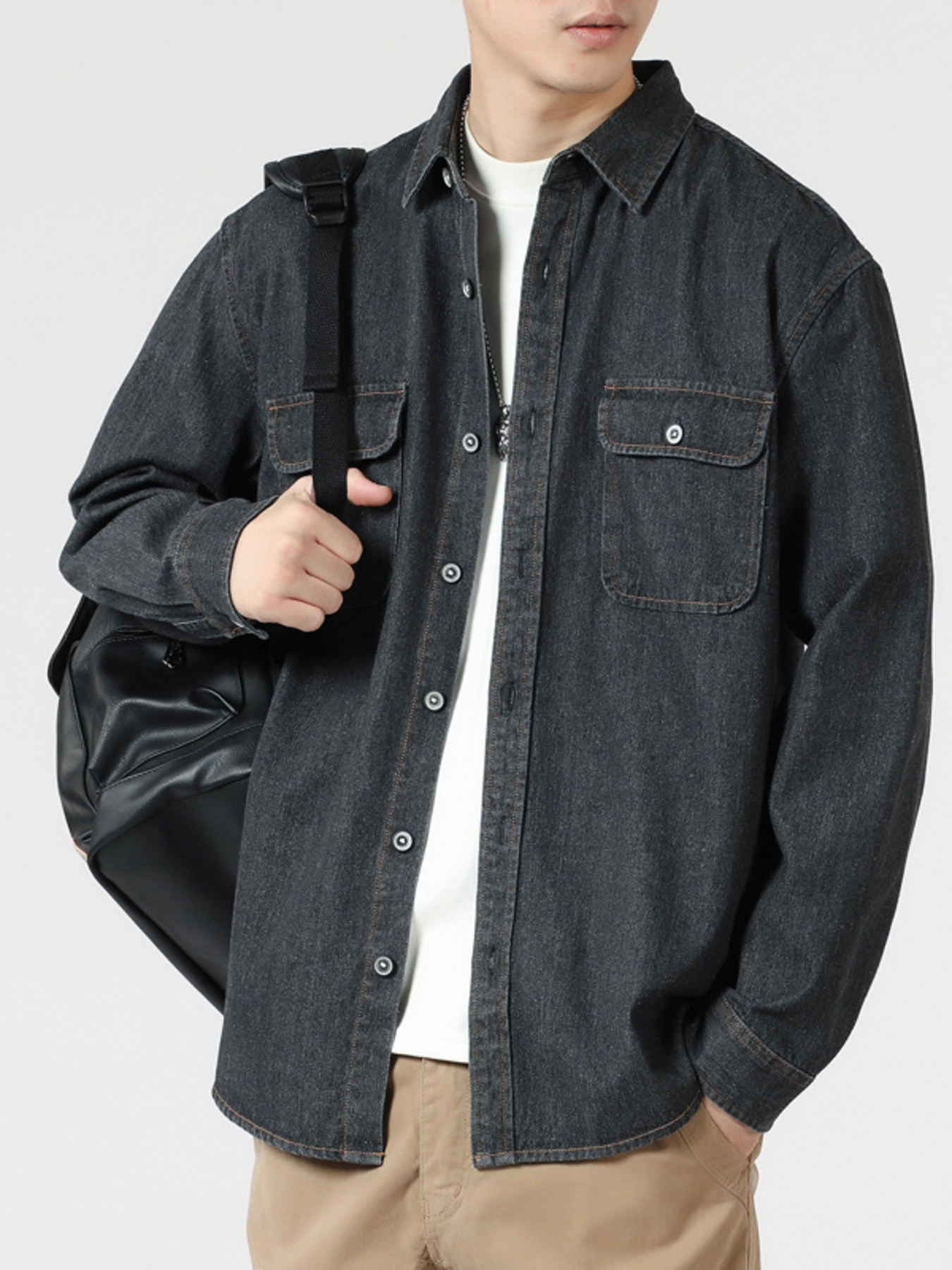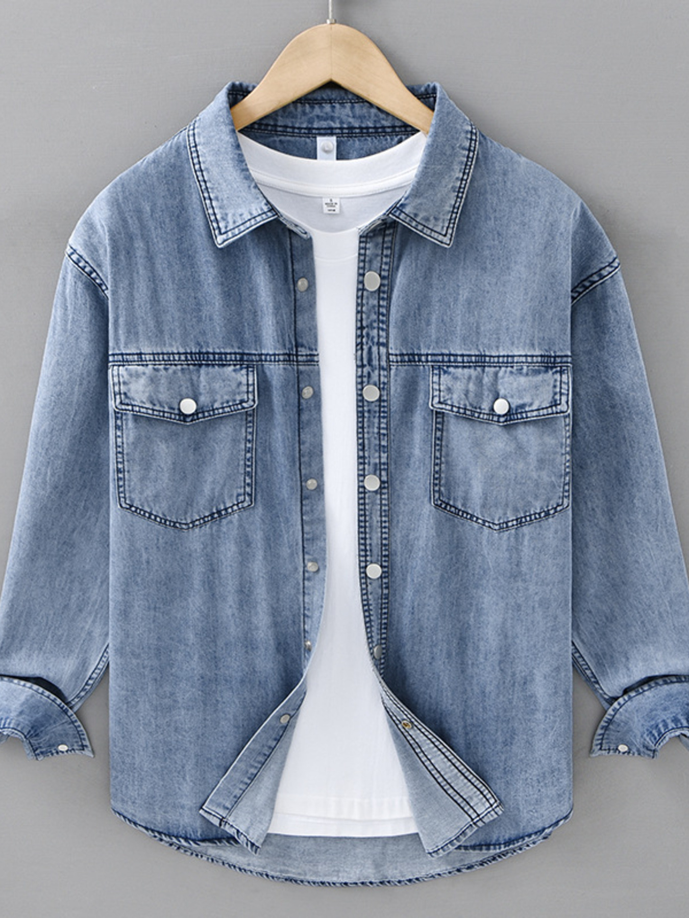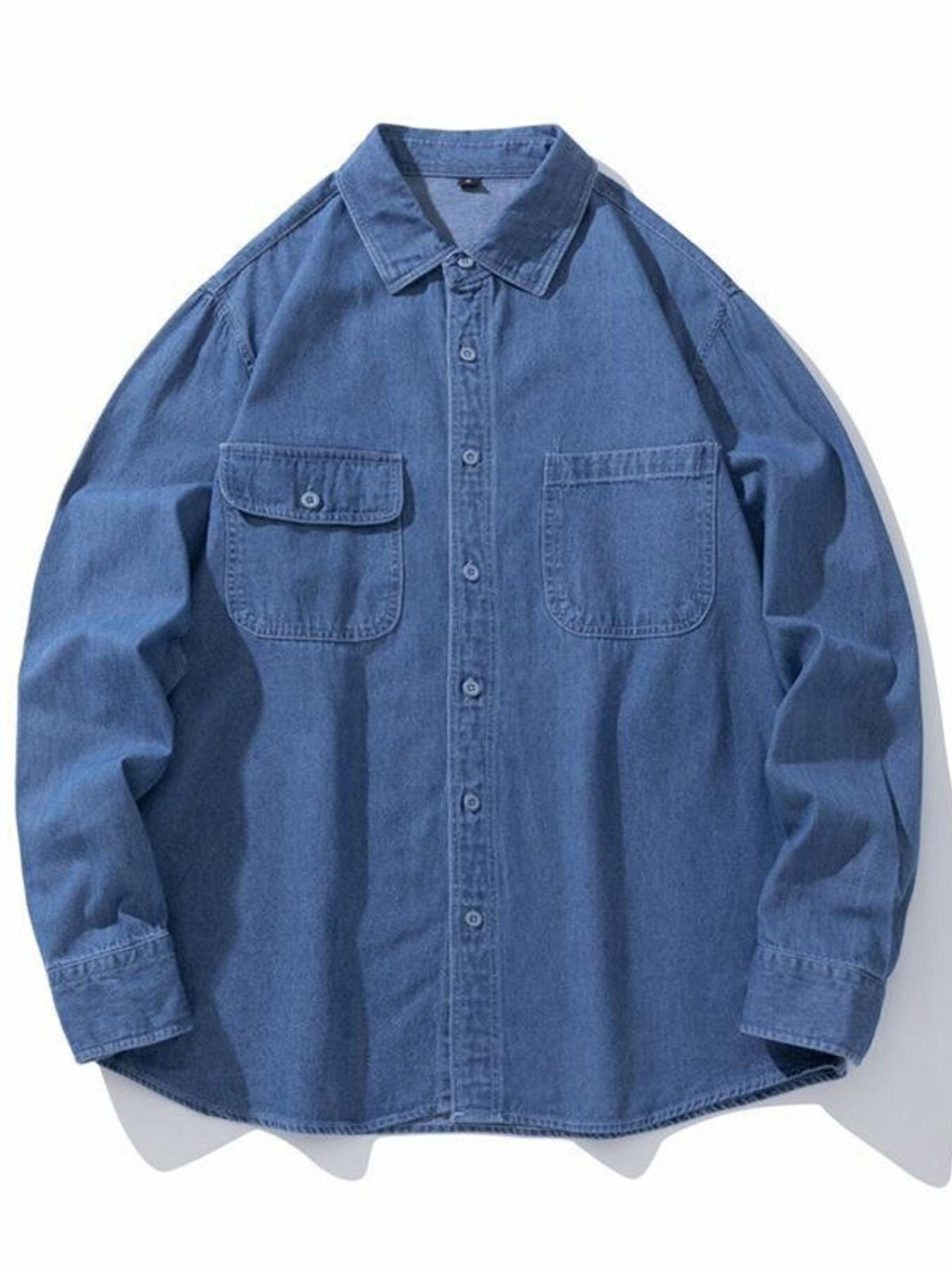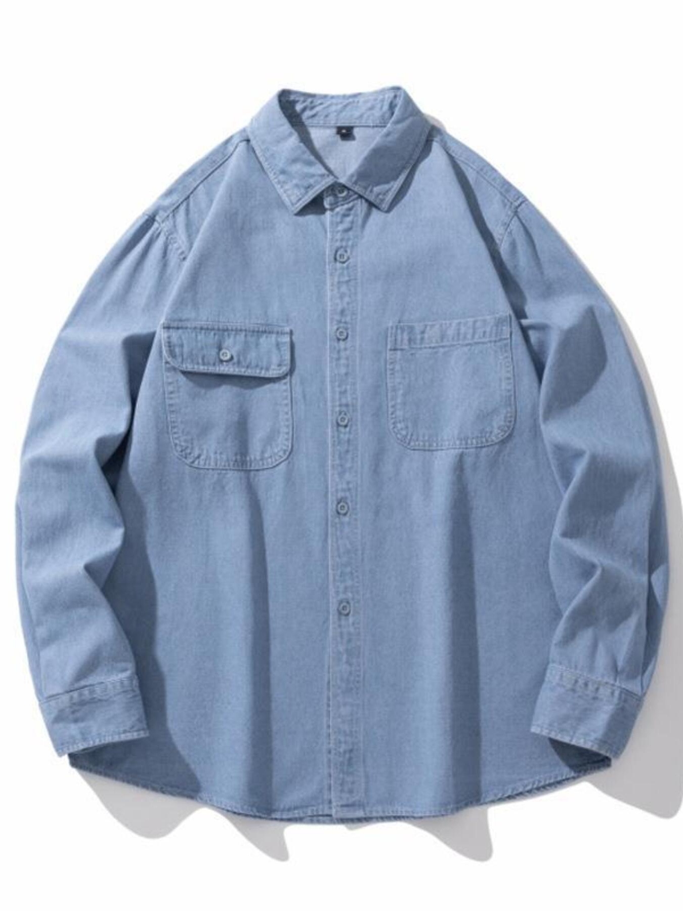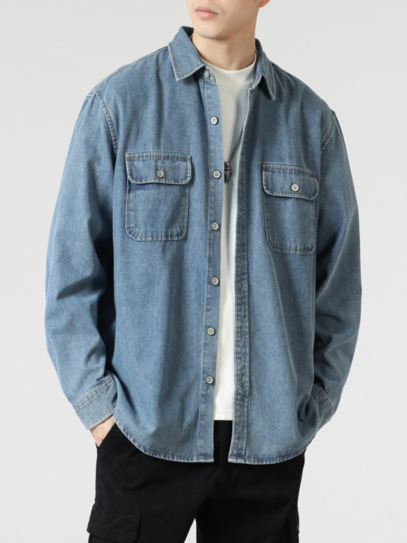 Men's Plus Size Wash Denim Shirt with Chest Pockets