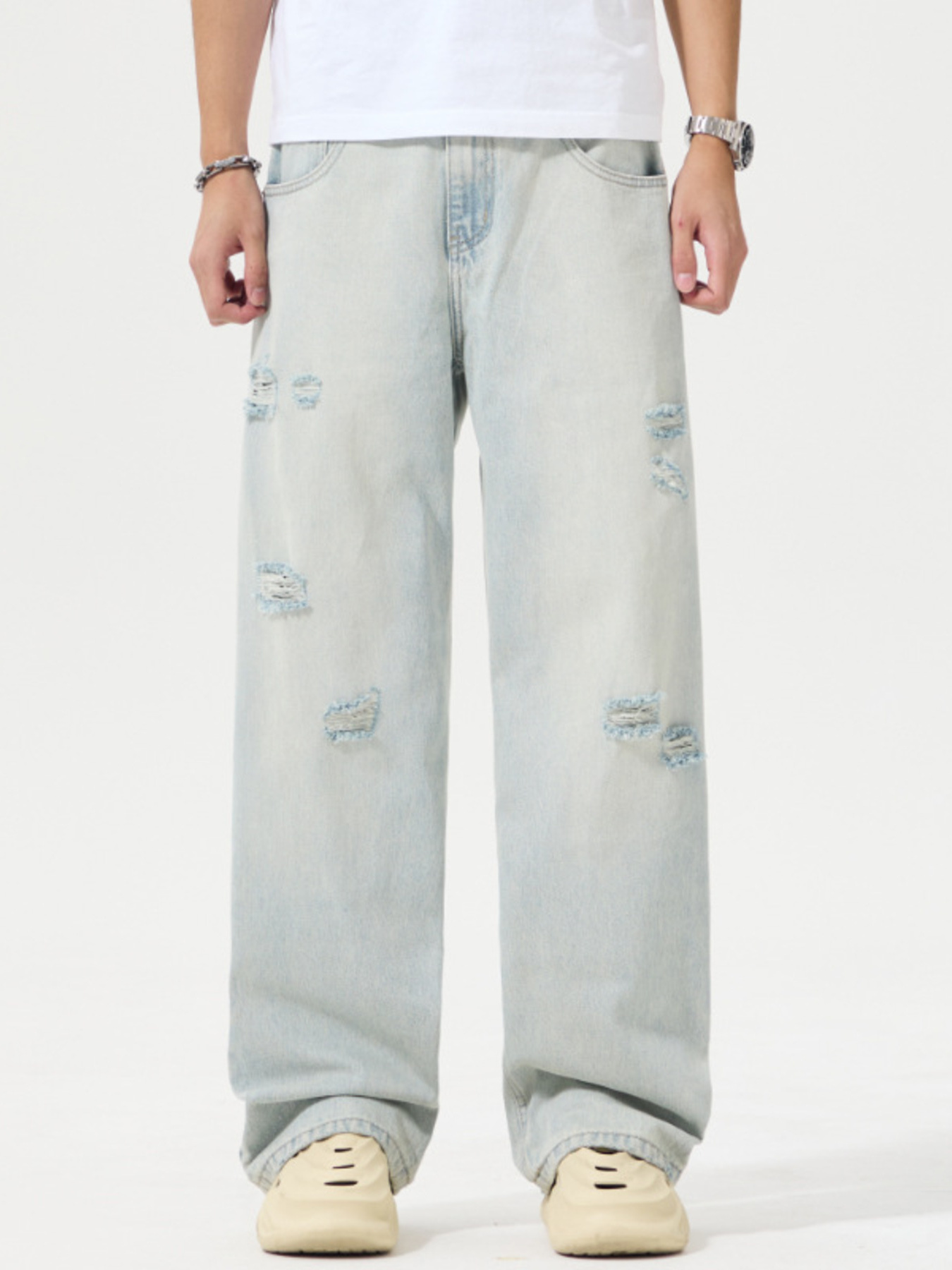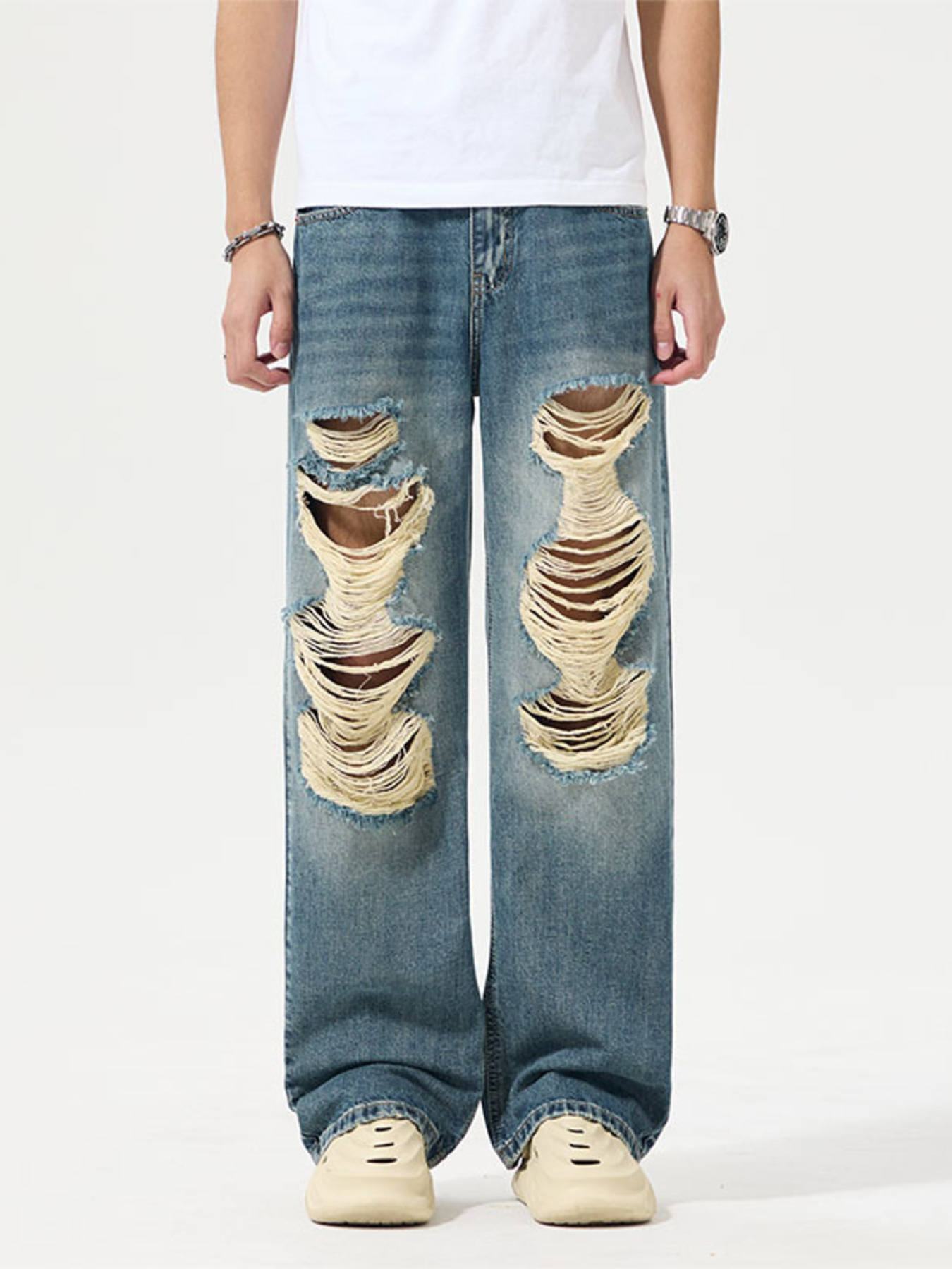 Men's Full Size Wide Leg Distressed Jeans Plus Size