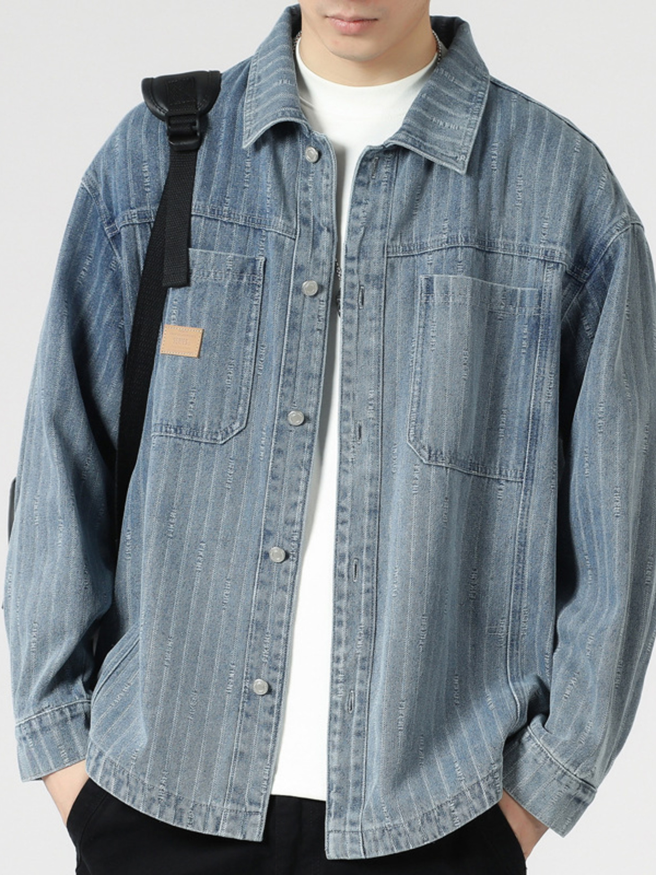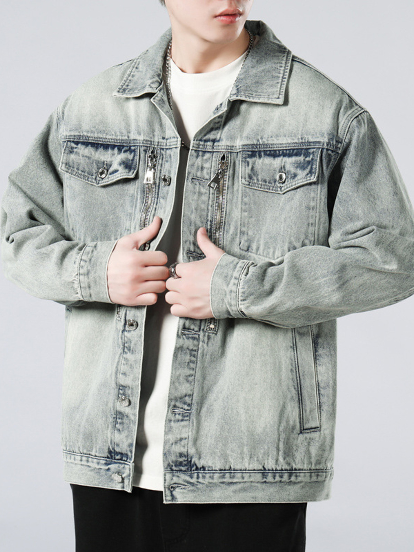 Men's Full Size Wash Button Up Denim Jacket Plus Size