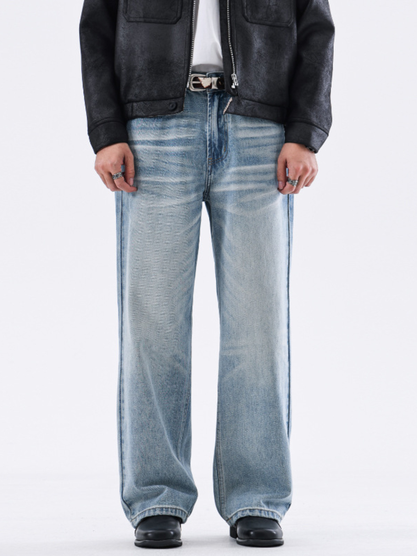 Men's Full Size Wide Leg Vintage Wash Jeans Plus Size