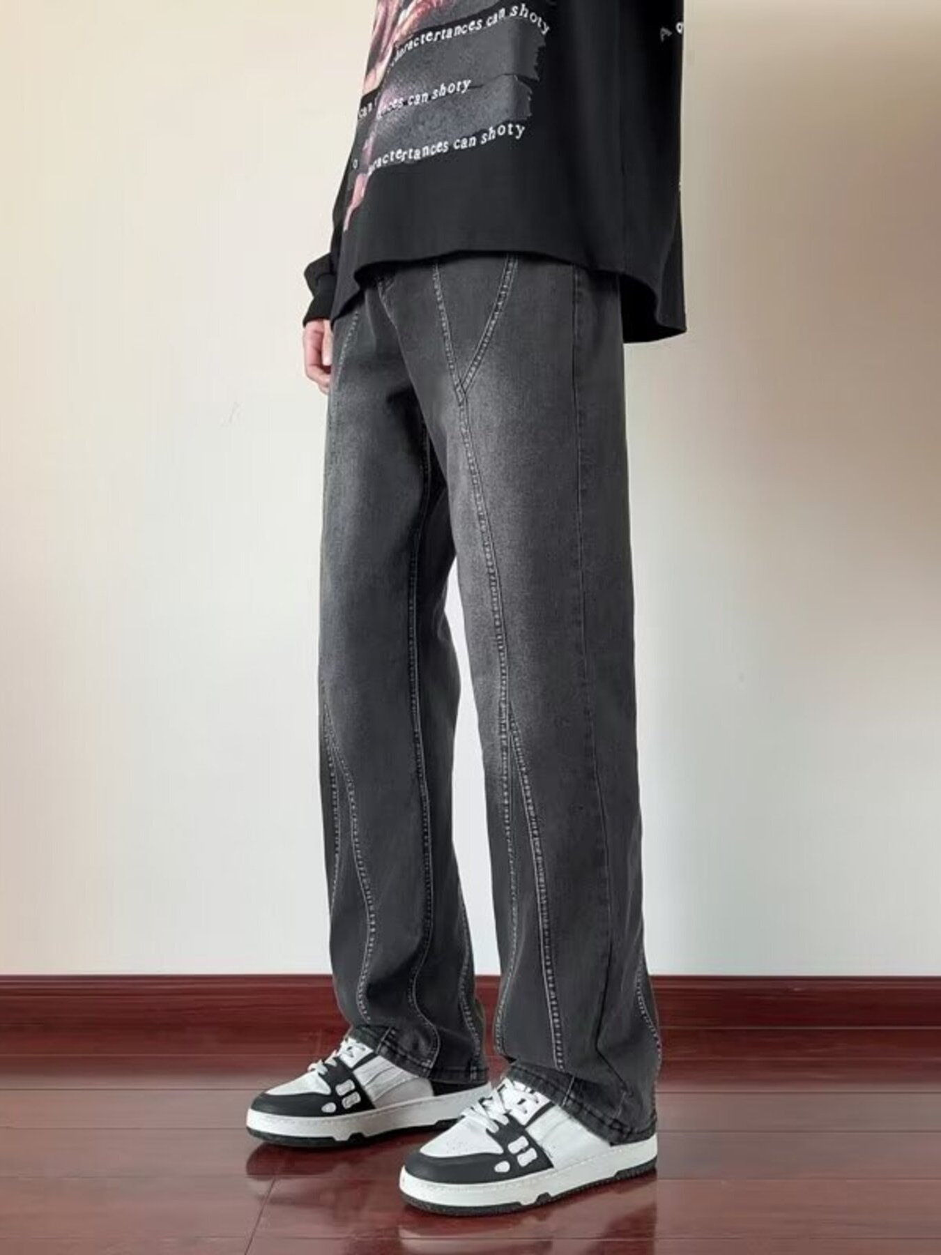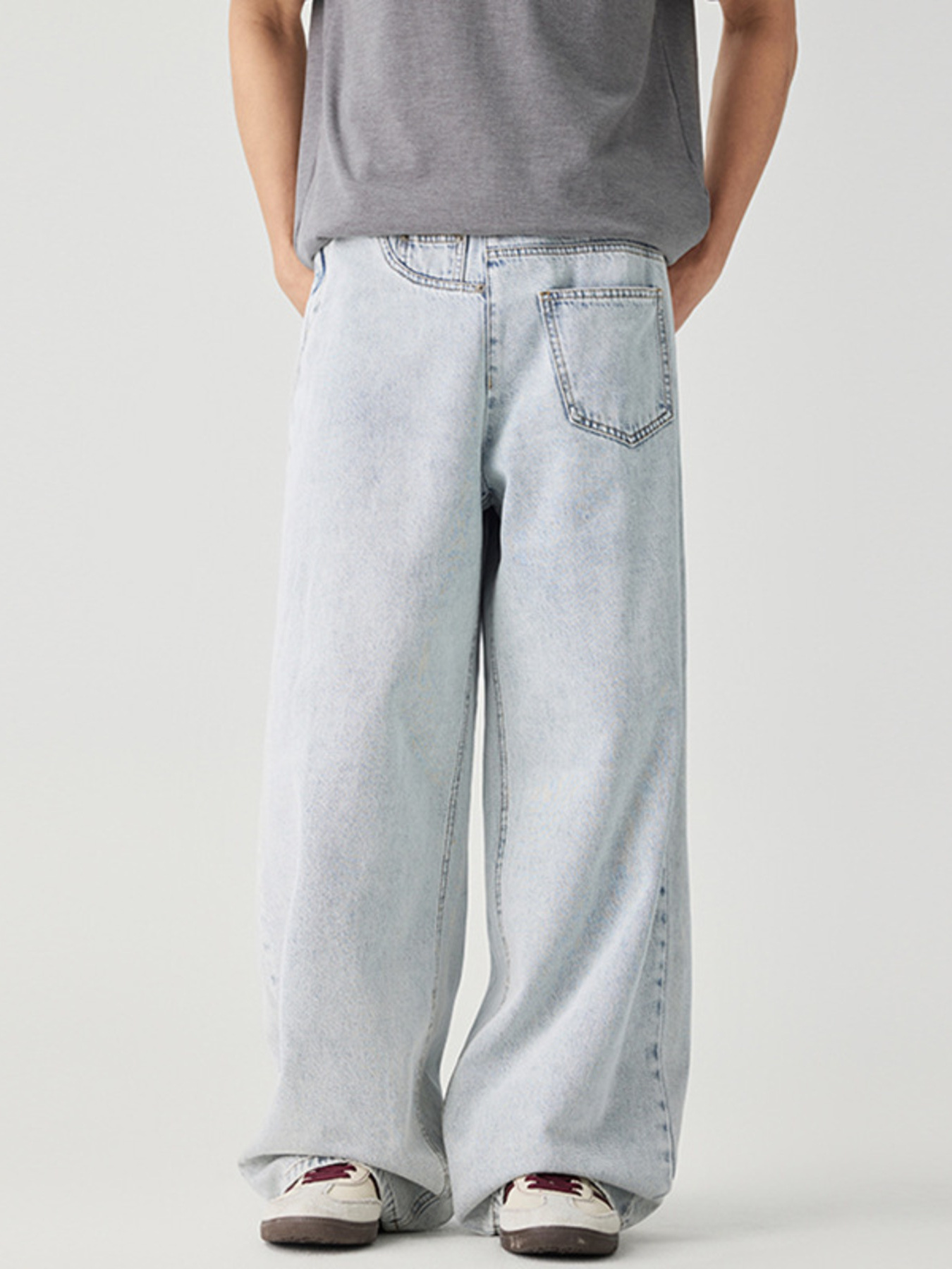 Men's Full Size Vintage Wash Wide Leg Jeans Plus Size