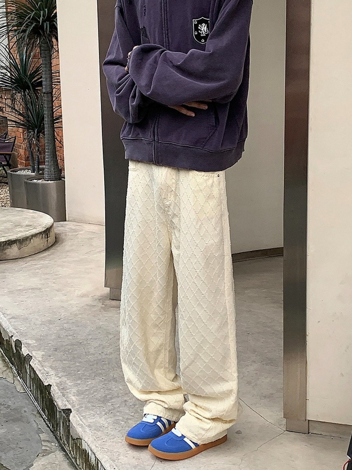 Men's Full Size Textured Grid Pattern Loose Fit Jeans Plus Size