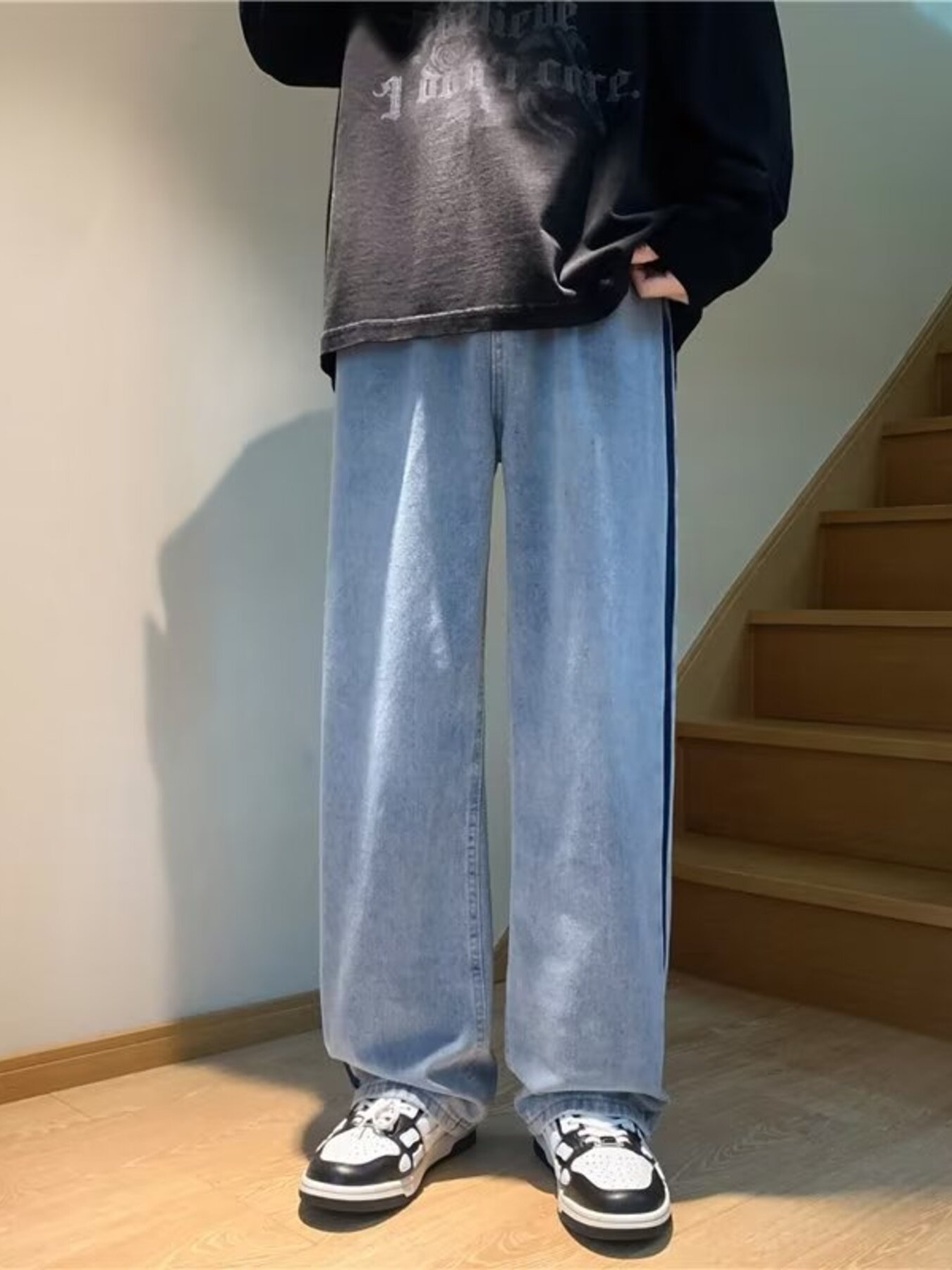 Men's Full Size Side Stripe Loose Fit Jeans Plus Size