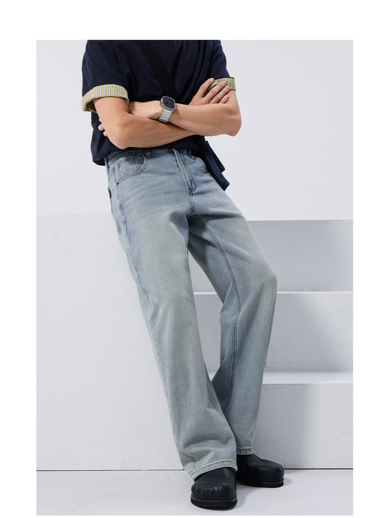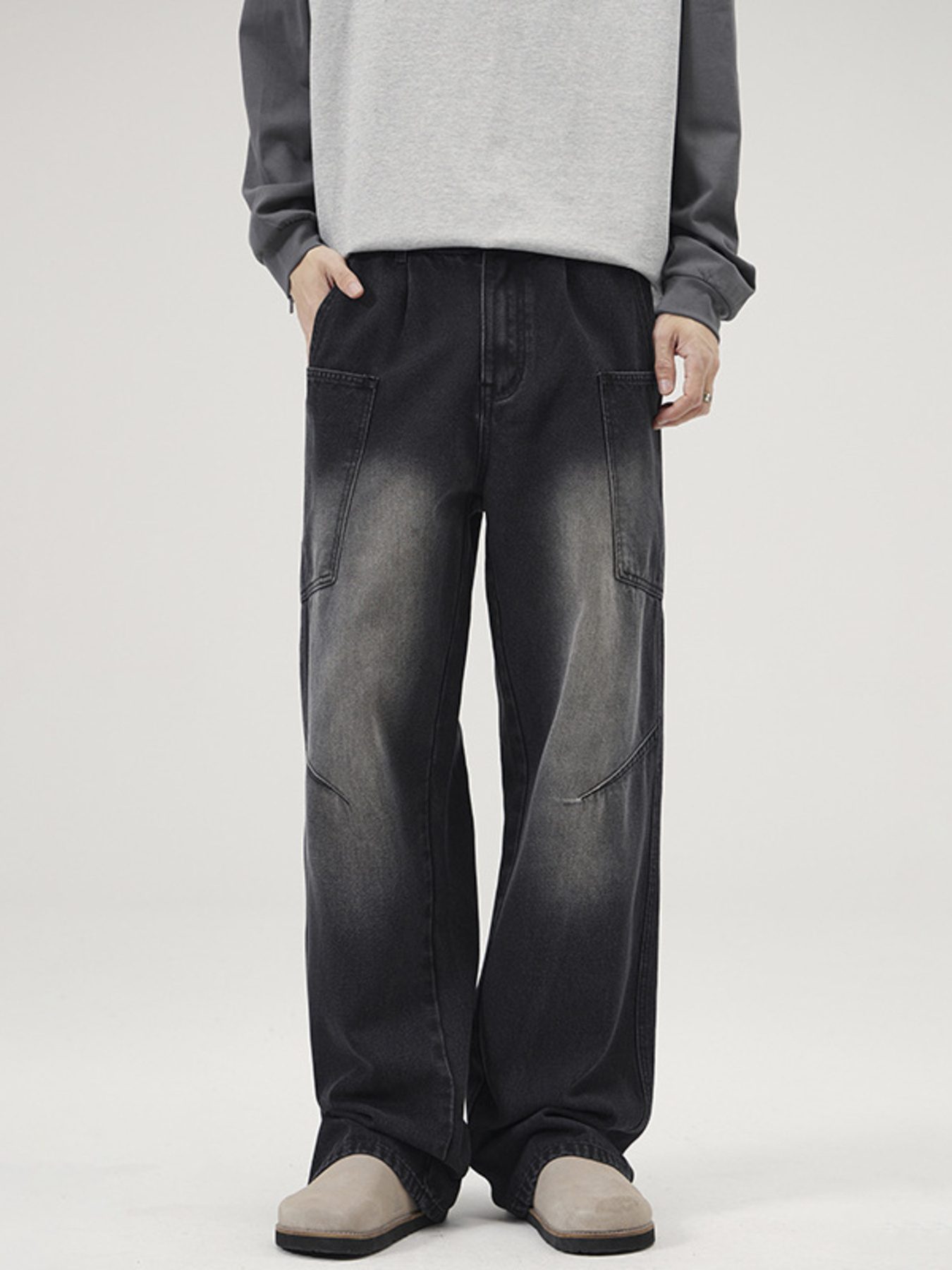 Men's Wide Leg Wash Jeans