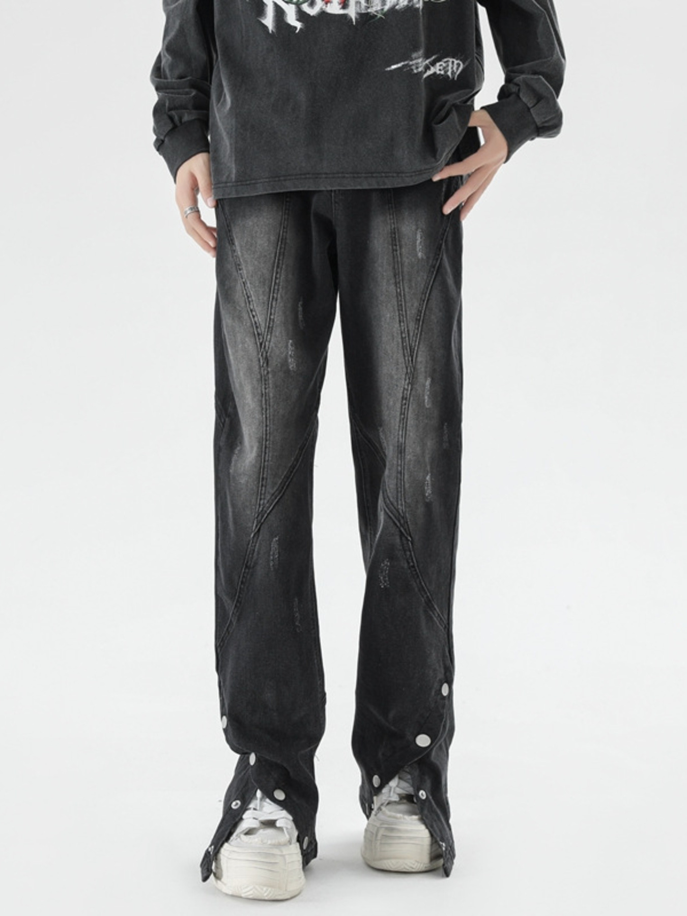 Men's Plus Size Washed Flare Jeans with Snap-Down Hem