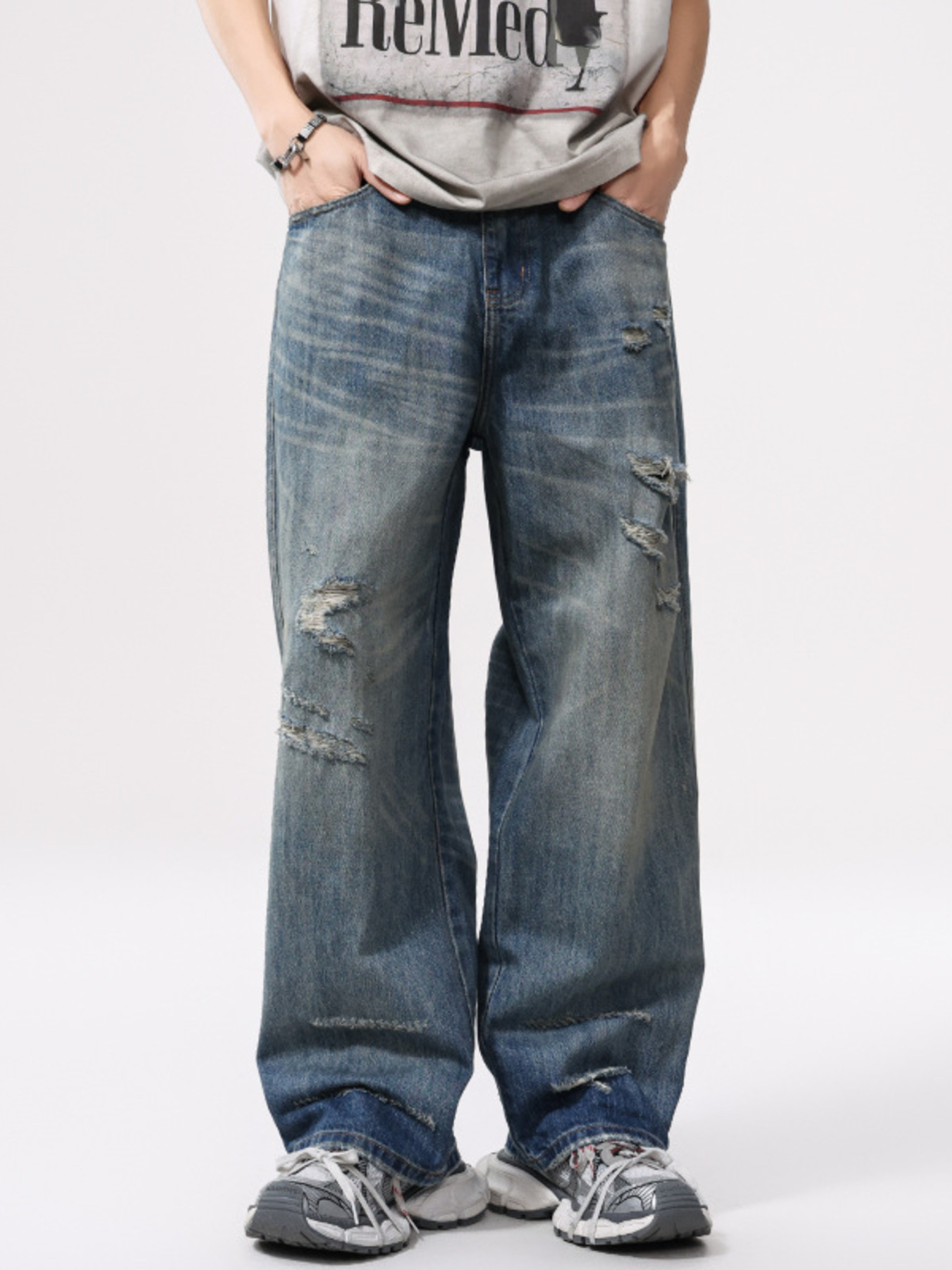 Men's Loose Fit Wash Jeans