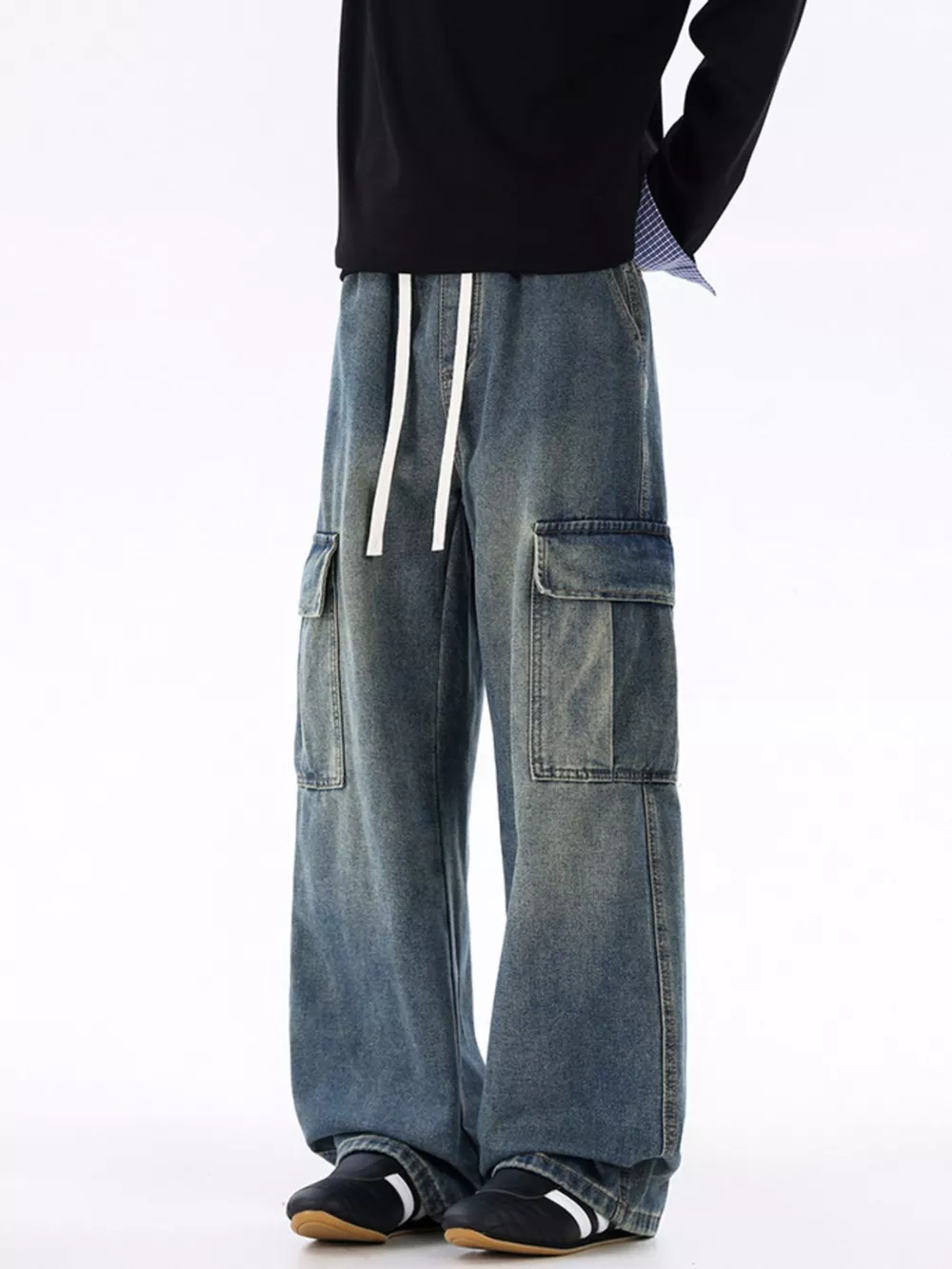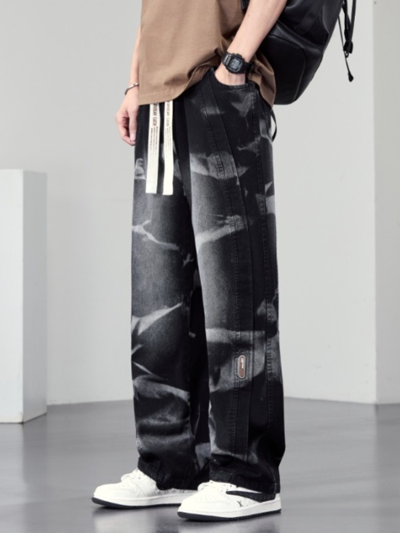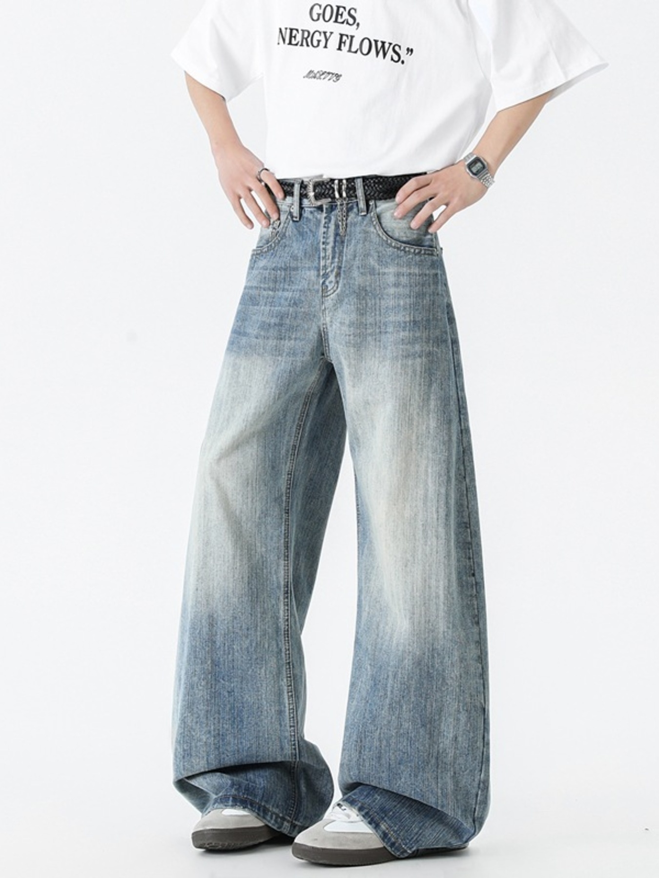 Men's Washed Relaxed Fit Wide Leg Jeans