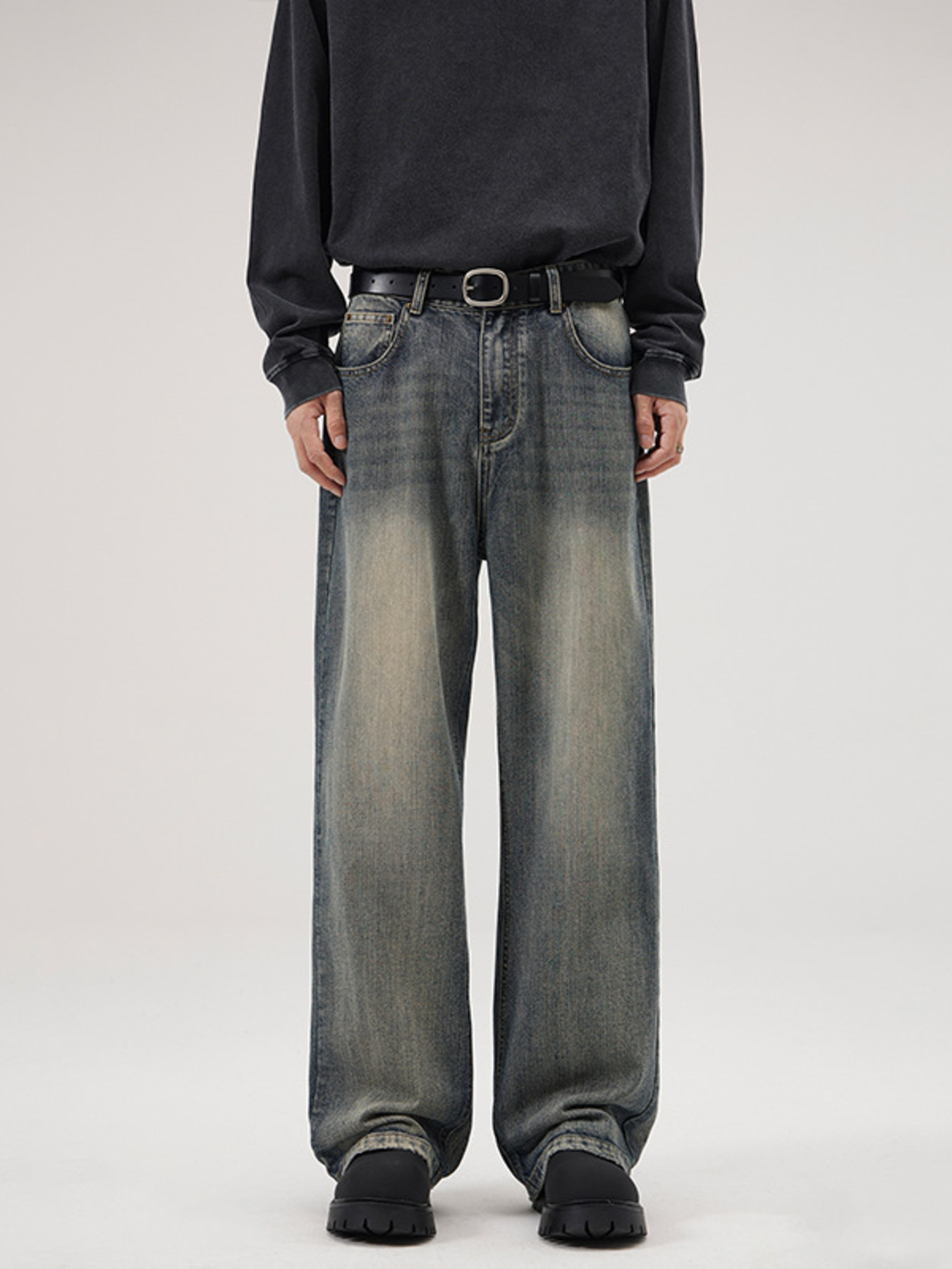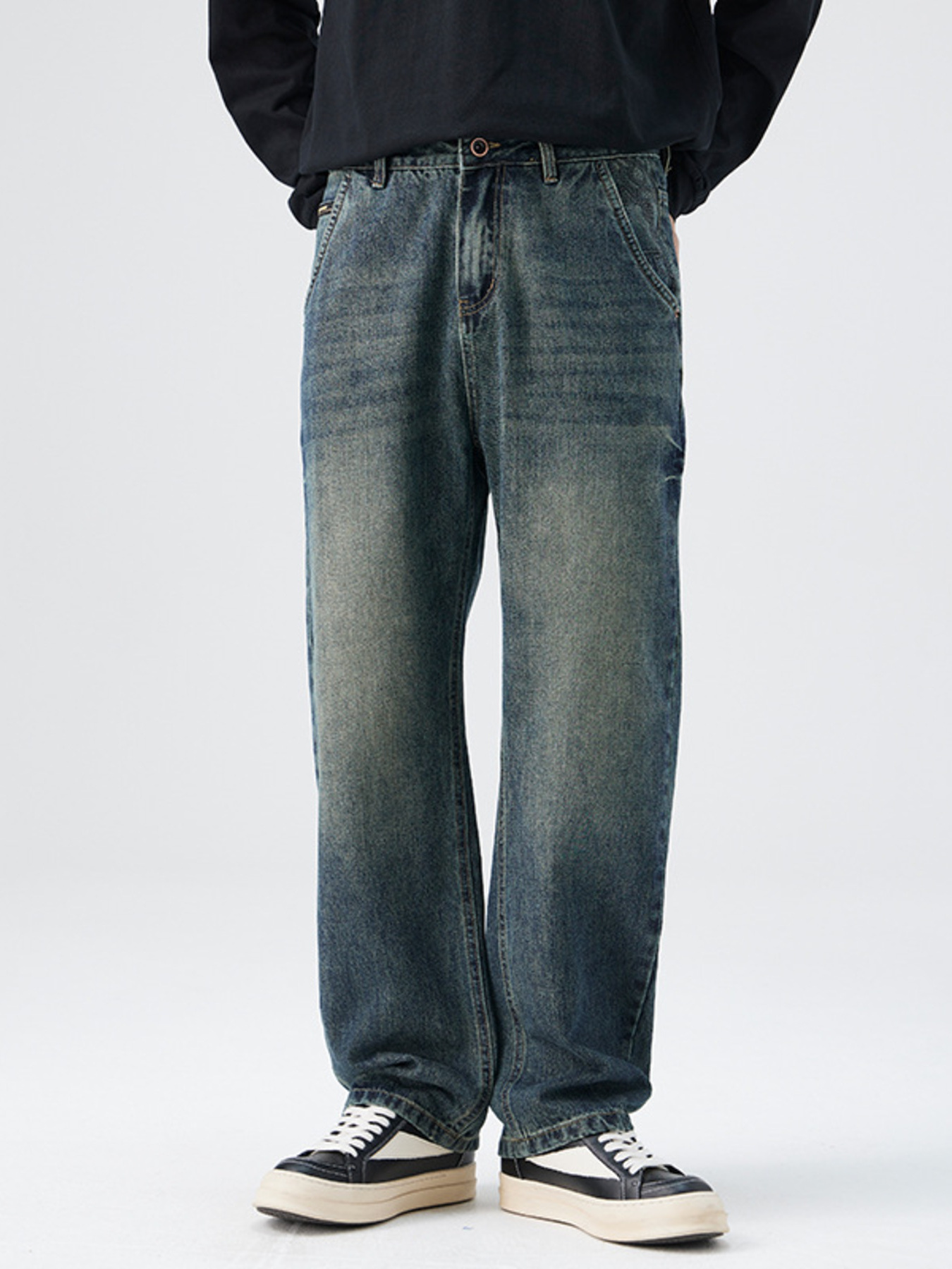 Men's Vintage Washed Relaxed Fit Straight Leg Jeans