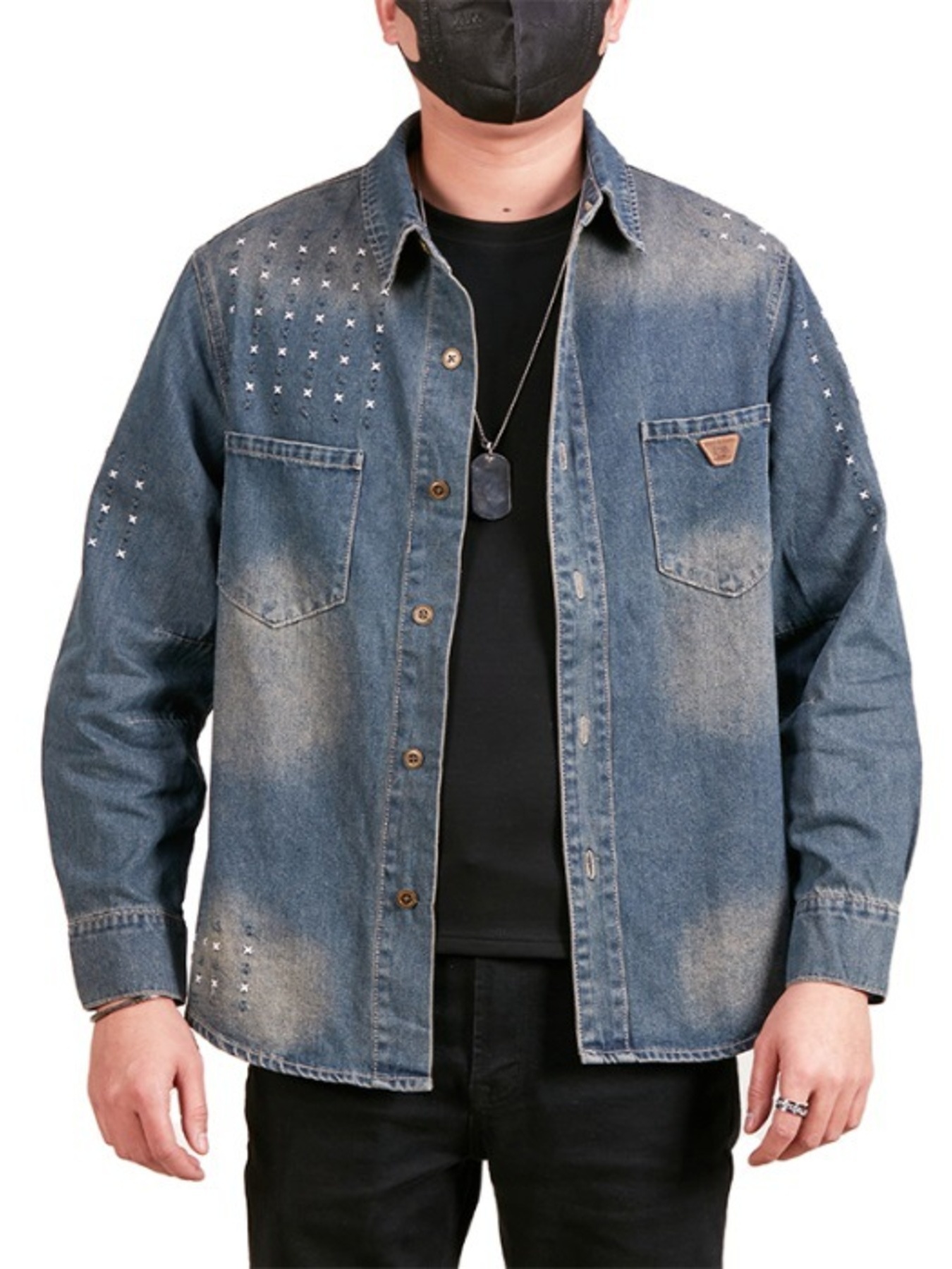 Men's Plus Size Button Up Long Sleeve Denim Shirt