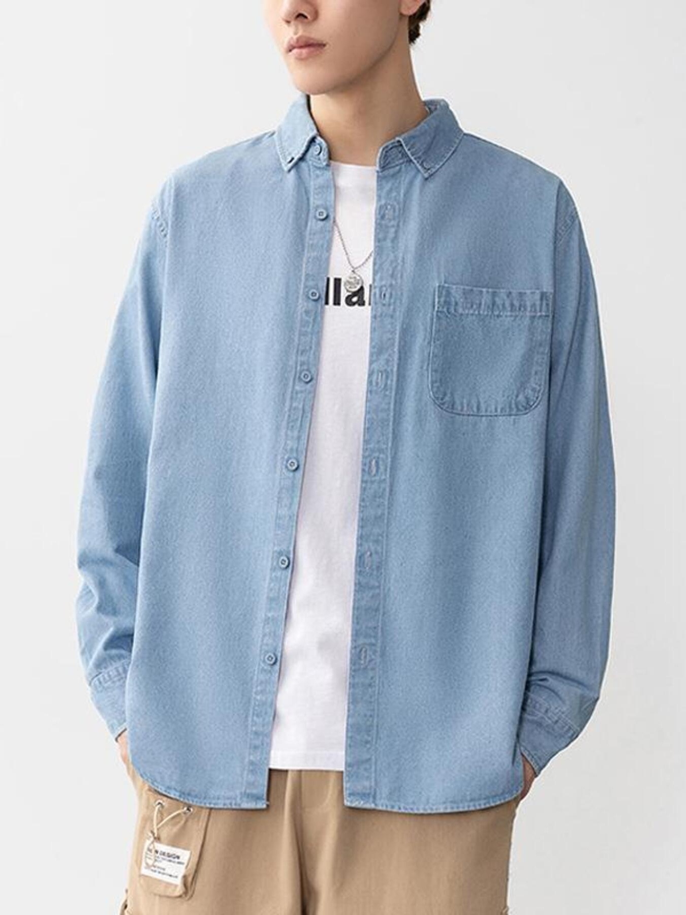 Men's Plus Size Button Up Long Sleeve Denim Shirt