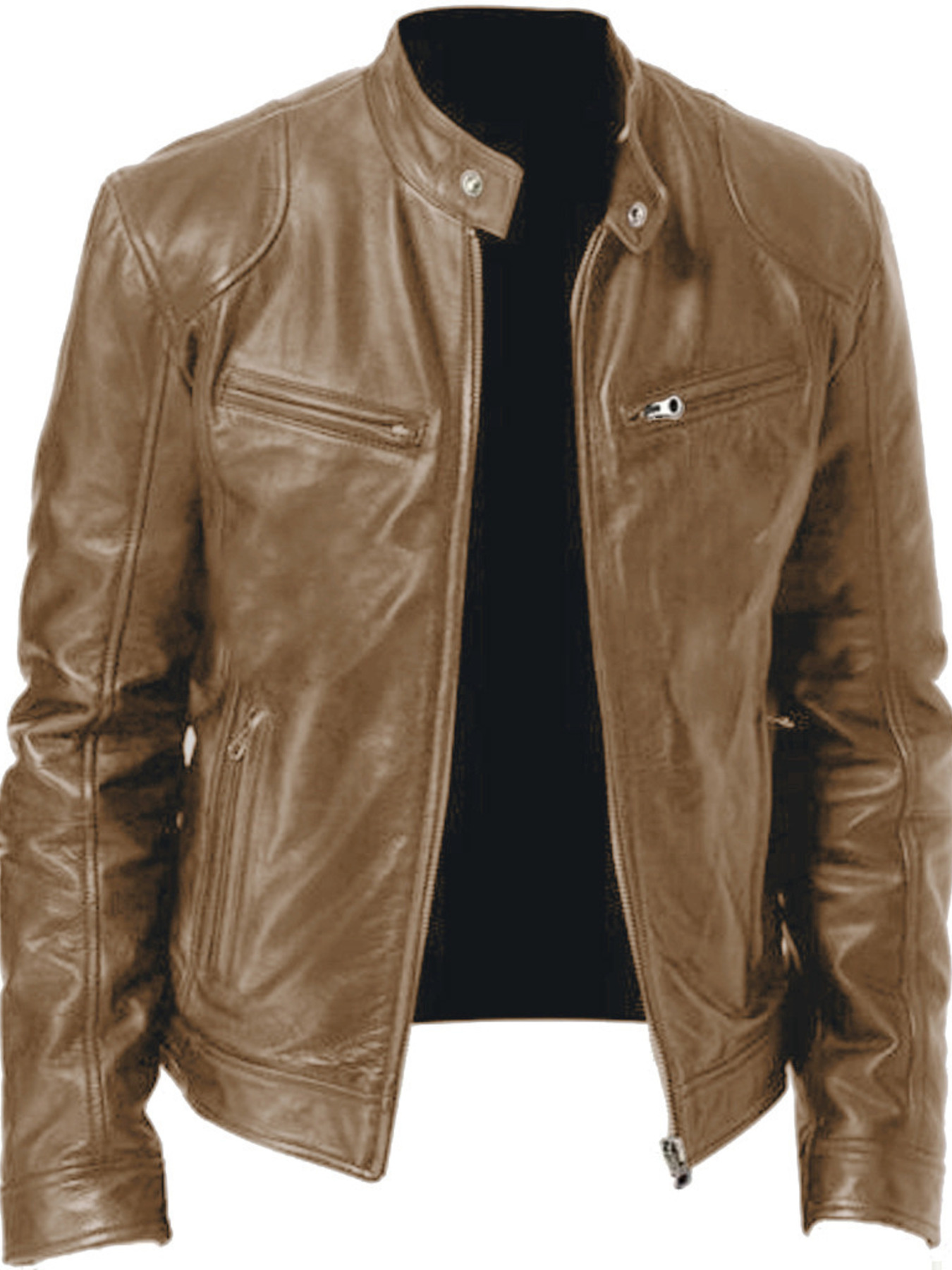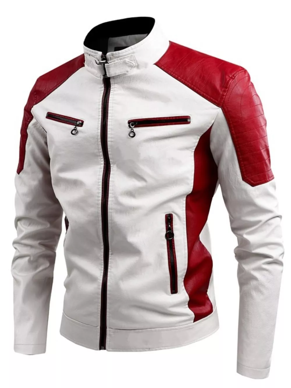 Men's Plus Size Two-Tone Slim Fit Motorcycle Leather Jacket