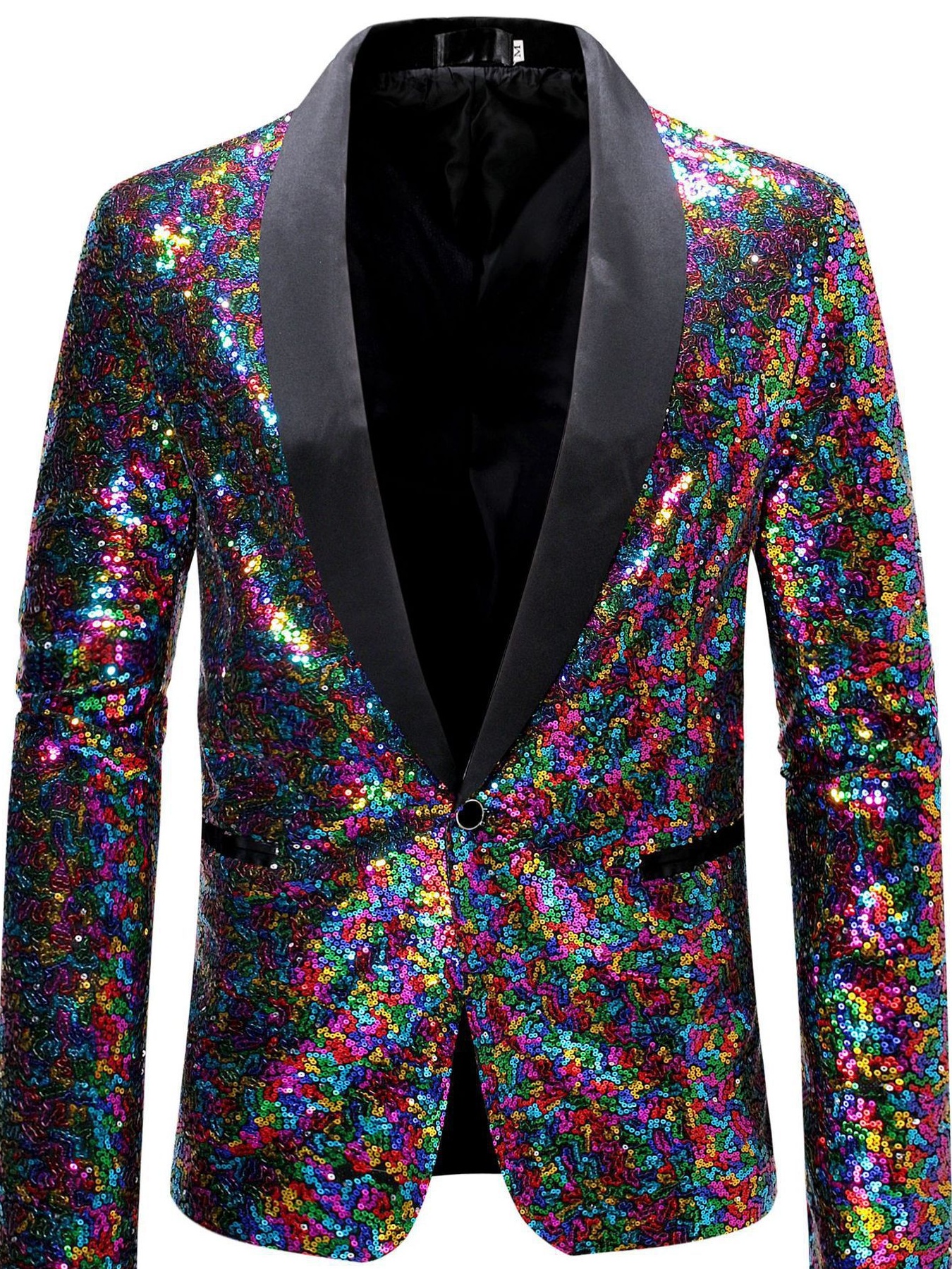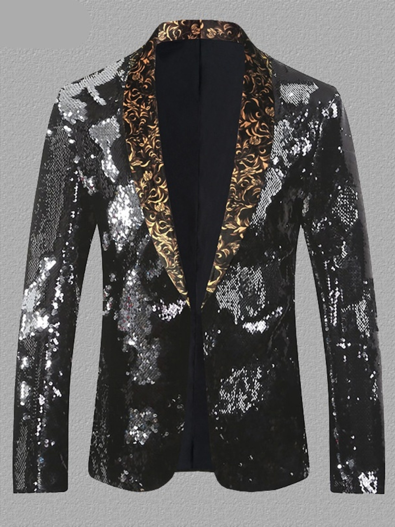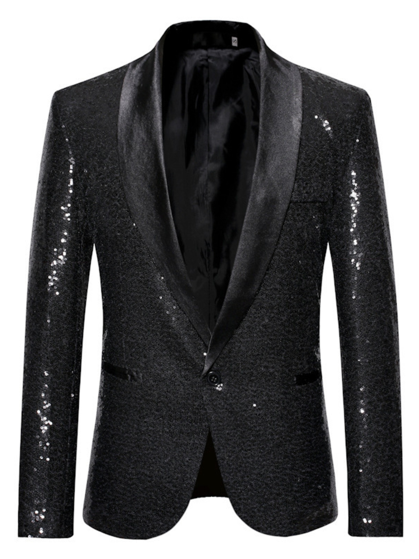 Men's Sequin Long Sleeve Tuxedo Blazer