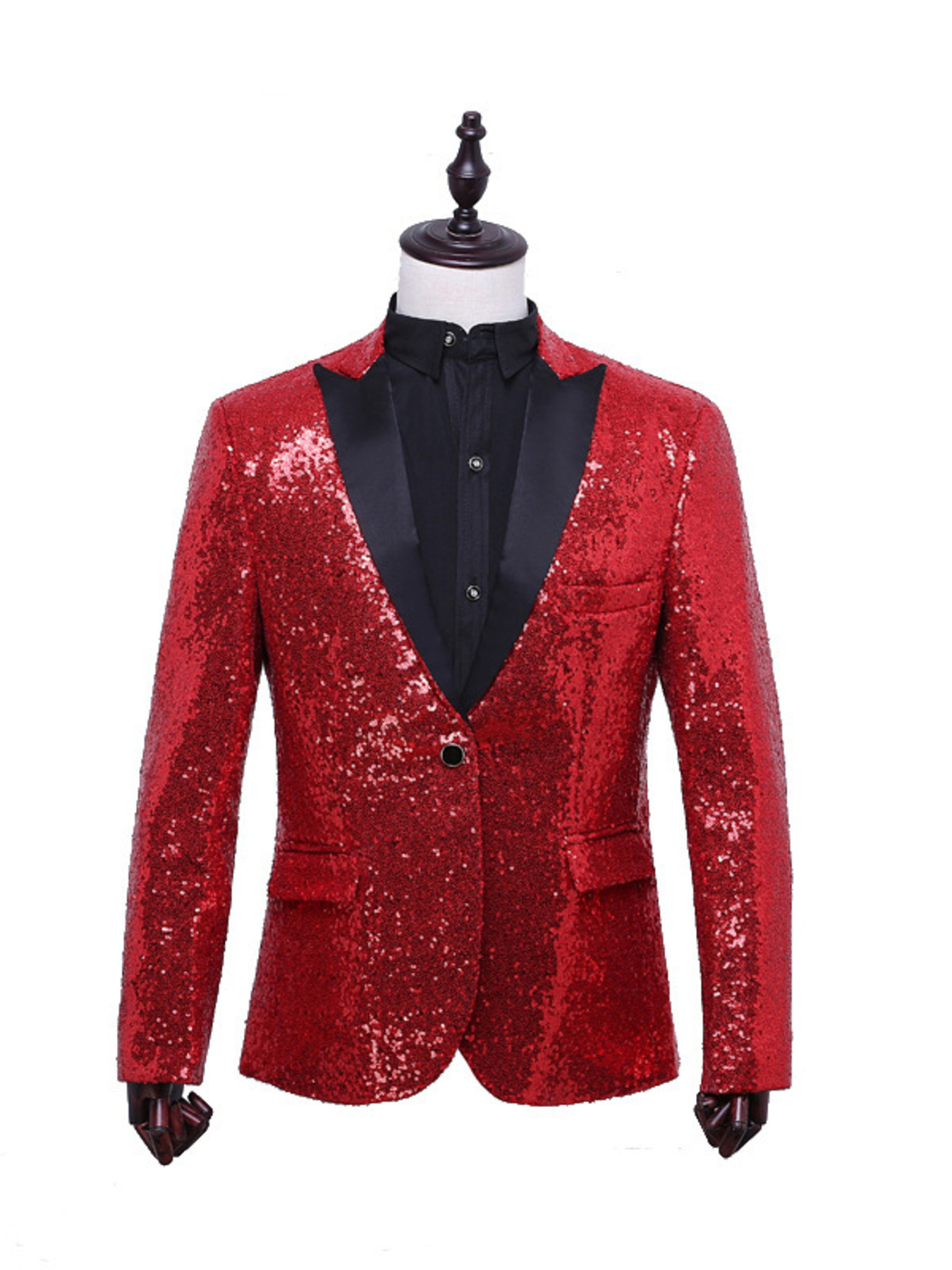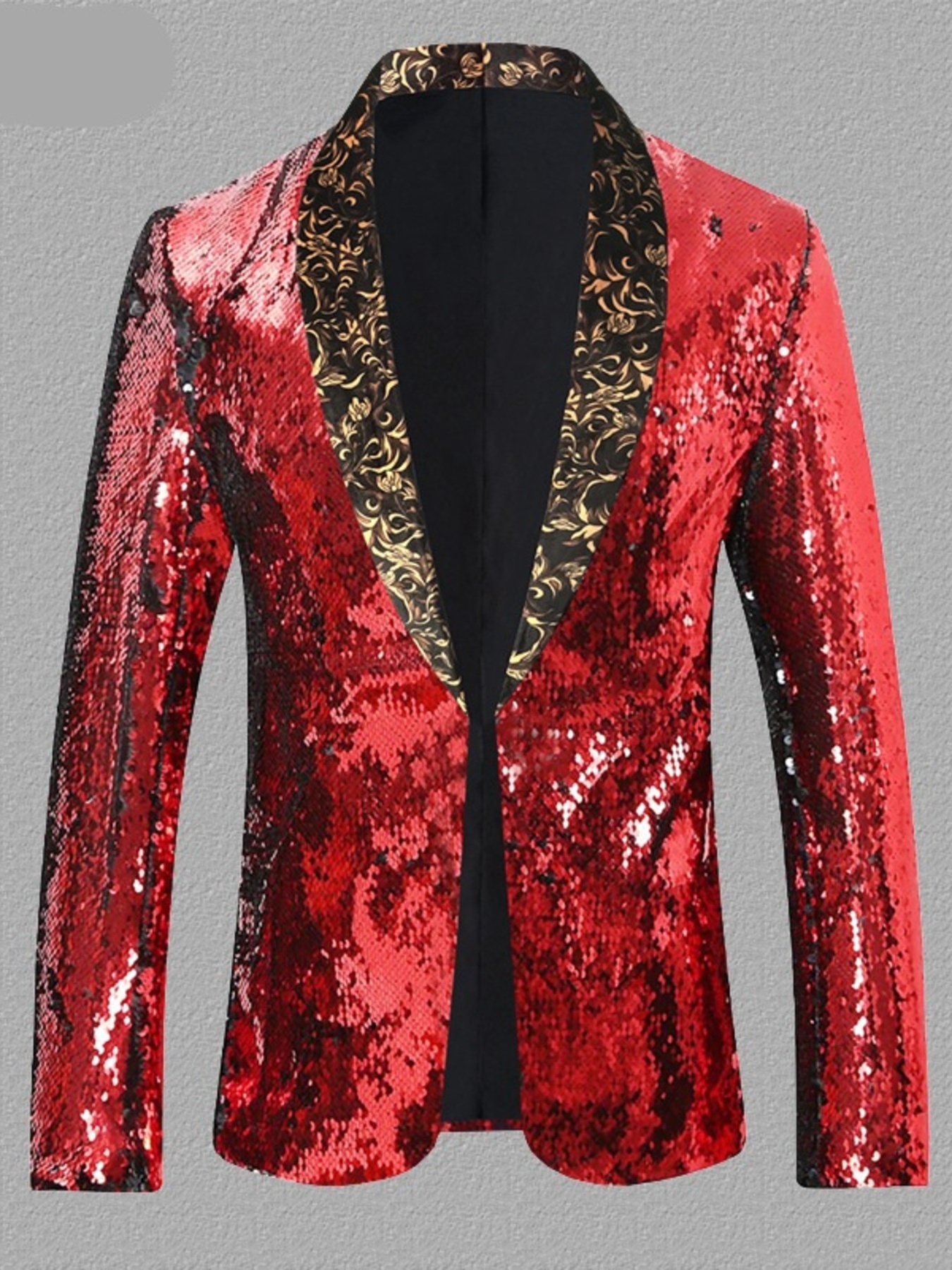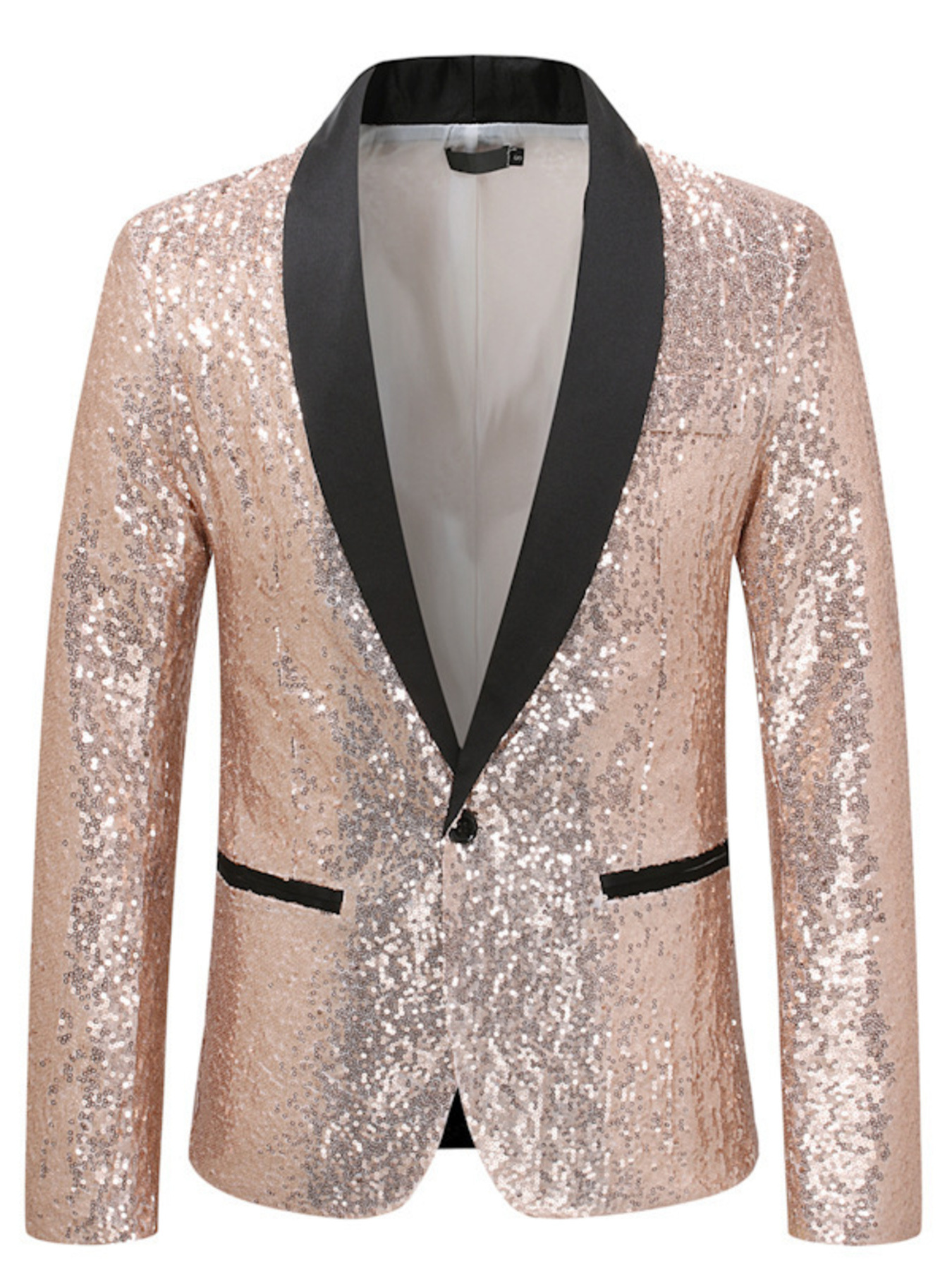 Men's Sequin Long Sleeve Tuxedo Blazer