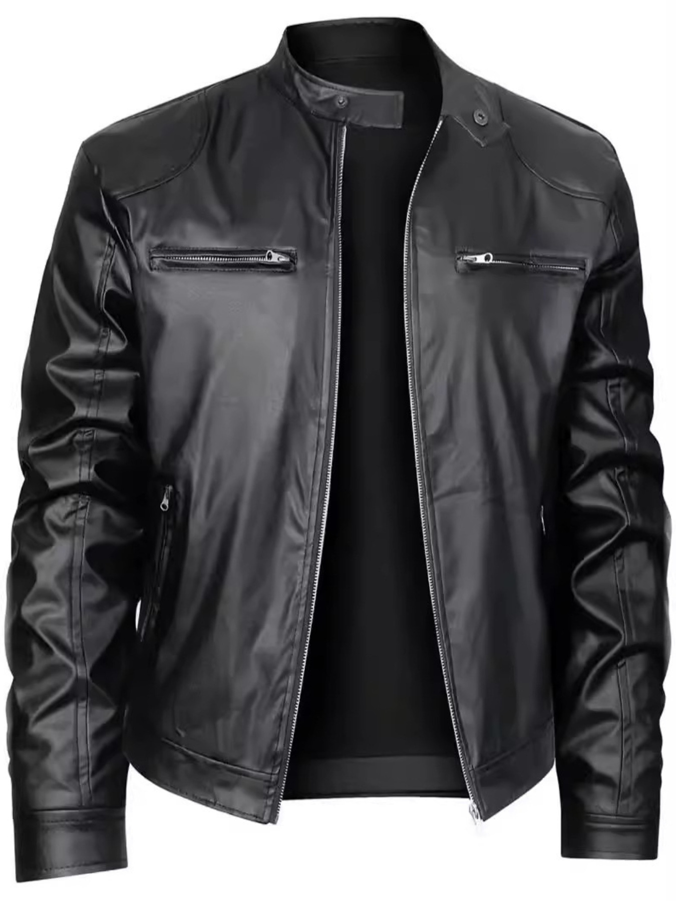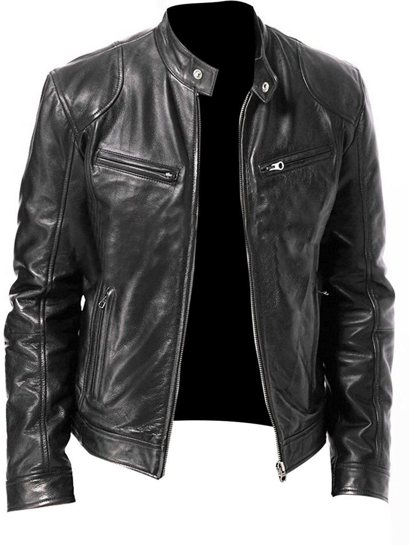 Men's Plus Size Zip Up Long Sleeve Motorcycle Jacket